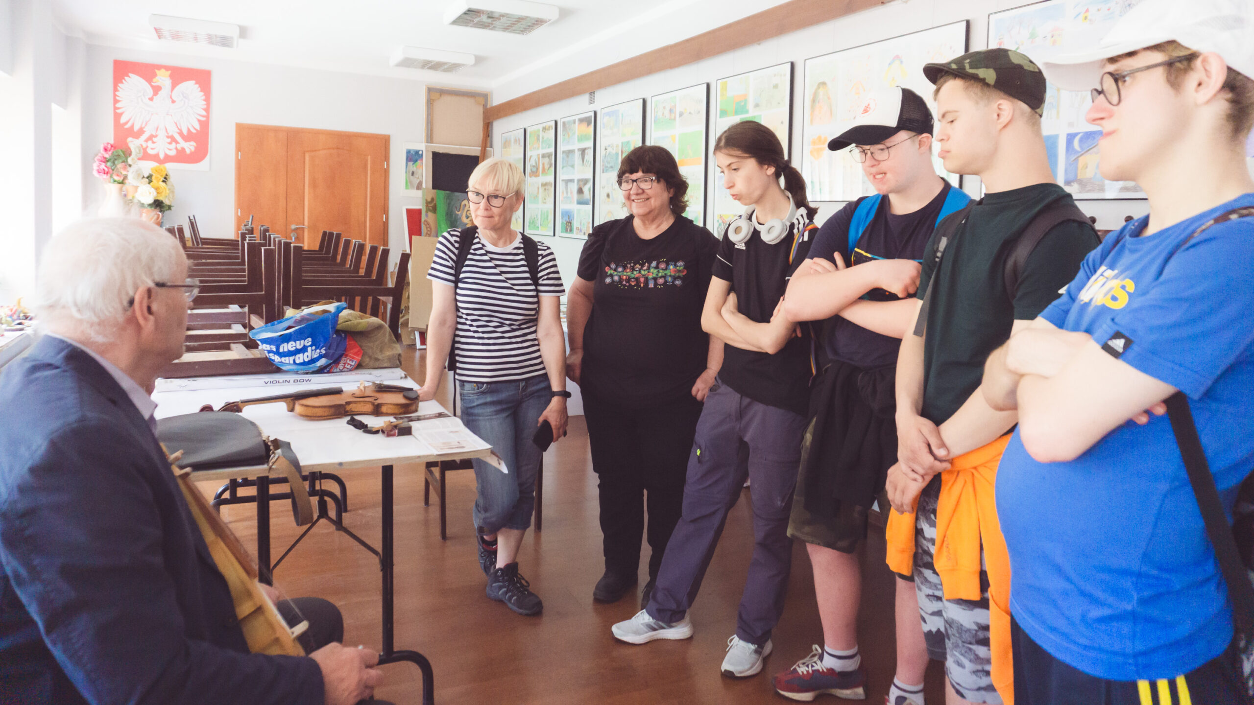 Naszą pierwszą wycieczkę rozpoczęliśmy wyprawą na Porytowe Wzgórze, gdzie w czerwcu 1944 r. rozegrała się największa bitwa partyzancka na ziemiach Polski. Stąd udaliśmy się do Szklarni zobaczyć koniki biłgorajskie. W tej wsi znajduje się również Szkoła suki biłgorajskiej – to stary, ludowy instrument muzyczny. Szkoła była niestety zamknięta. Nasz kolejny przystanek to Janów Lubelski, w którym odbywał się festiwal zespołów ludowych. Mieliśmy to szczęście, że spotkaliśmy tam pana Zbigniewa Butryna, założyciela szkoły w Szklarni, który zagrał dla nas na suce biłgorajskiej i opowiedział nam o tym ludowym instrumencie. Później zwiedziliśmy skansen kolejki wąskotorowej i wspaniałe Muzeum fotografii.