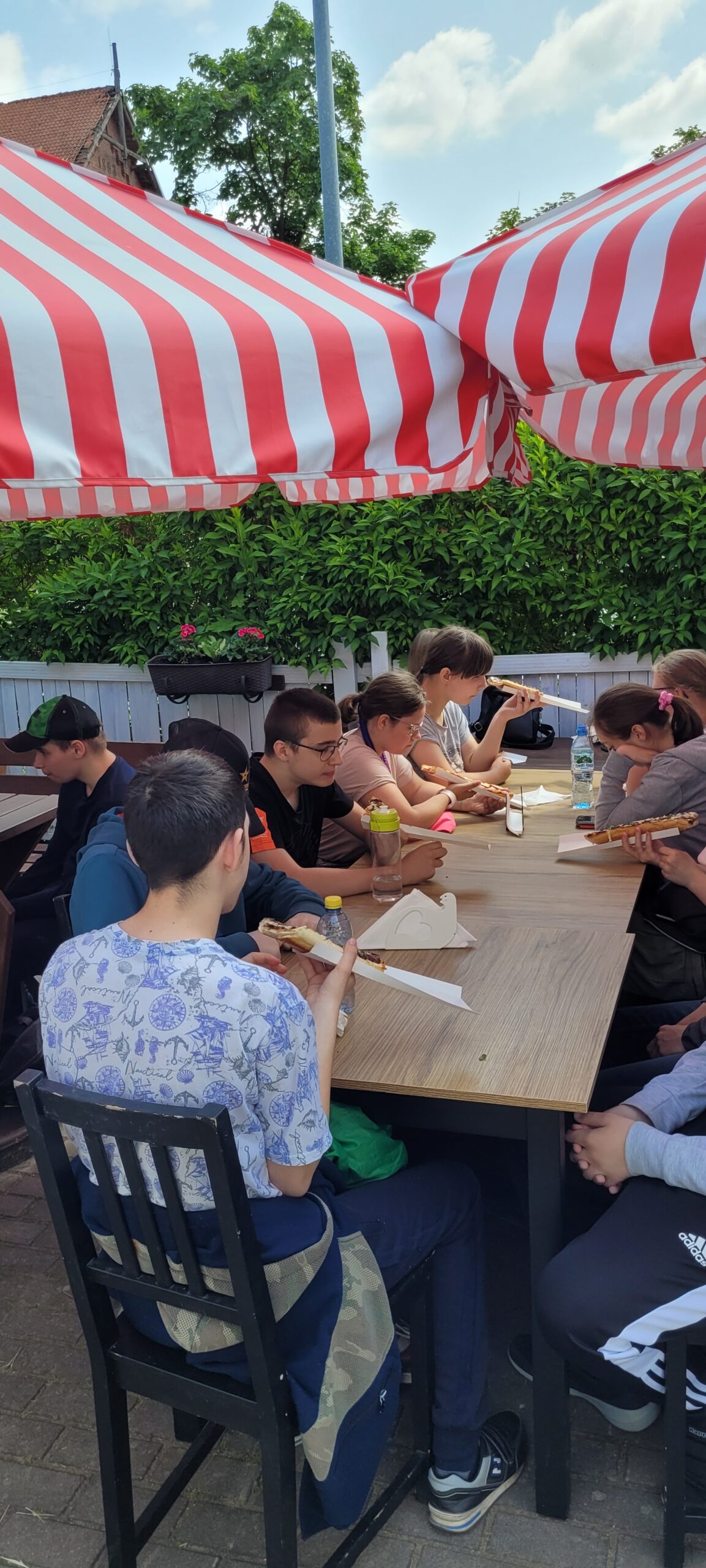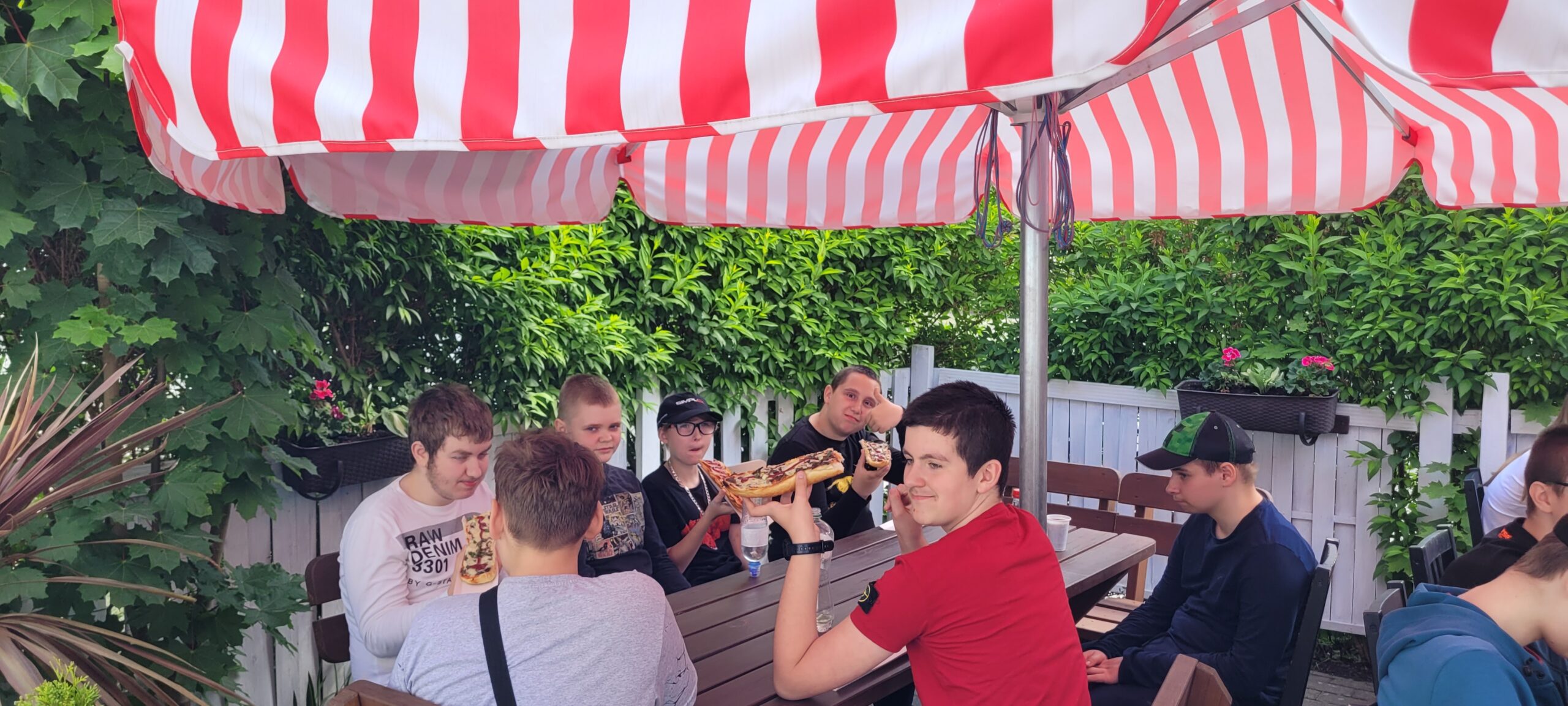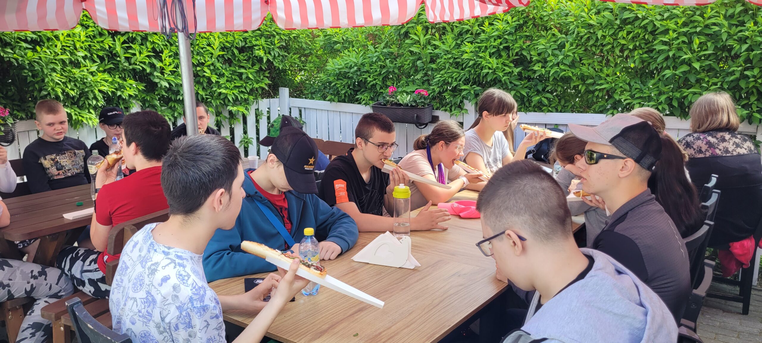 Tak uroczyście świętowaliśmy Dzień Dziecka. Nie zabrakło smakowitych zapiekanek, frytek i okazałej pizzy. Po sytym posiłku, przyszedł czas na spalenie przysłowiowych zbędnych kalorii. Dalsza część upłynęła na zajęciach sportowo- rekreacyjnych w parku „Dolinka”.