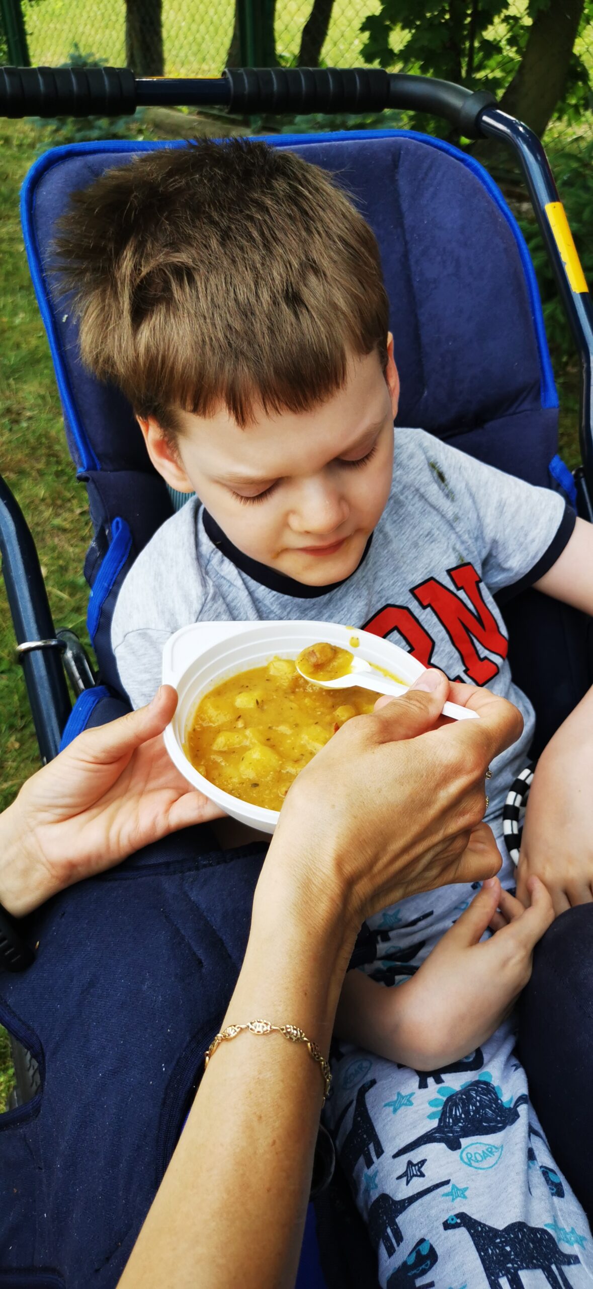 Kolejnym punktem było skorzystanie z miejscowej gastronomii. Uczniowie kosztowali grochówkę, słodkie gofry, ciasto.