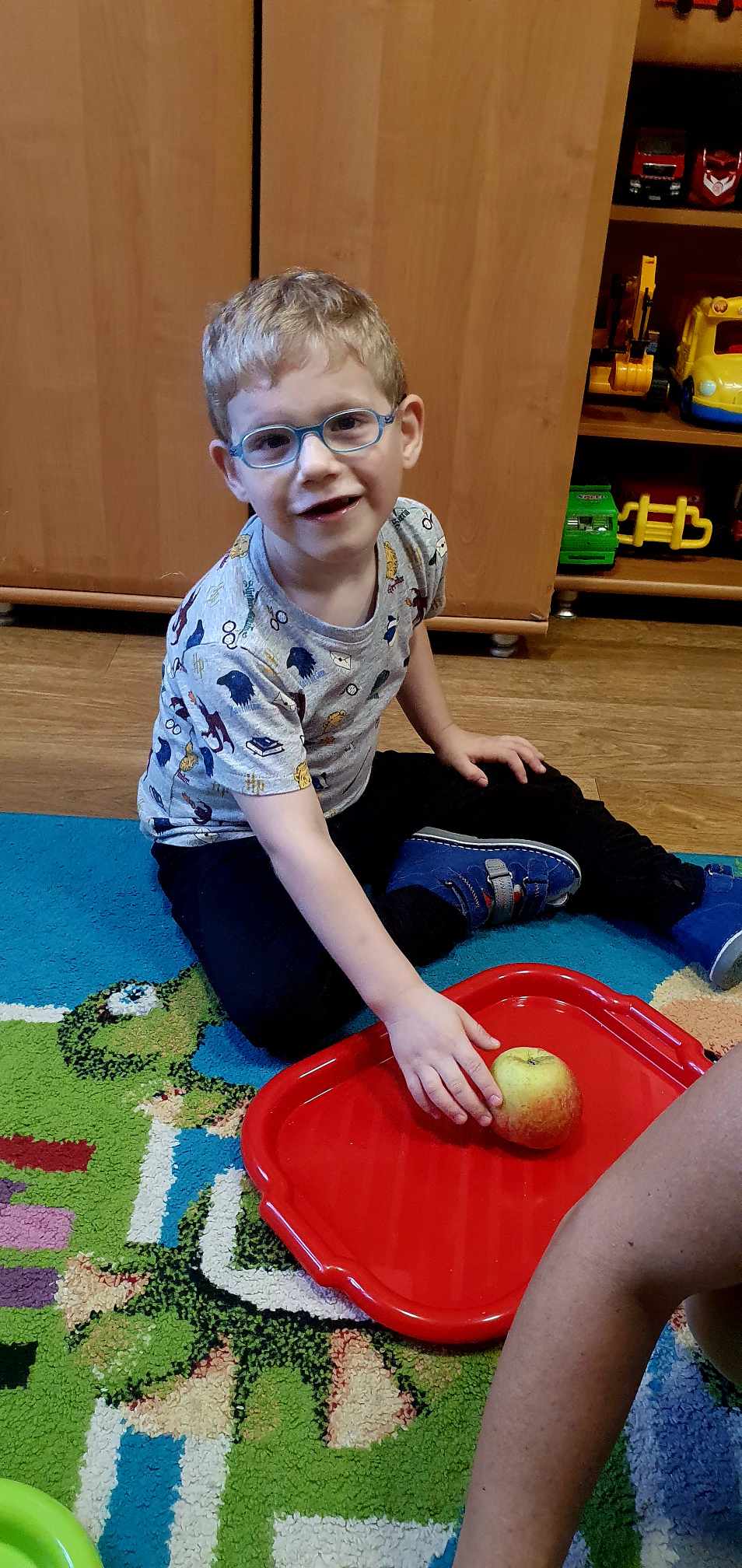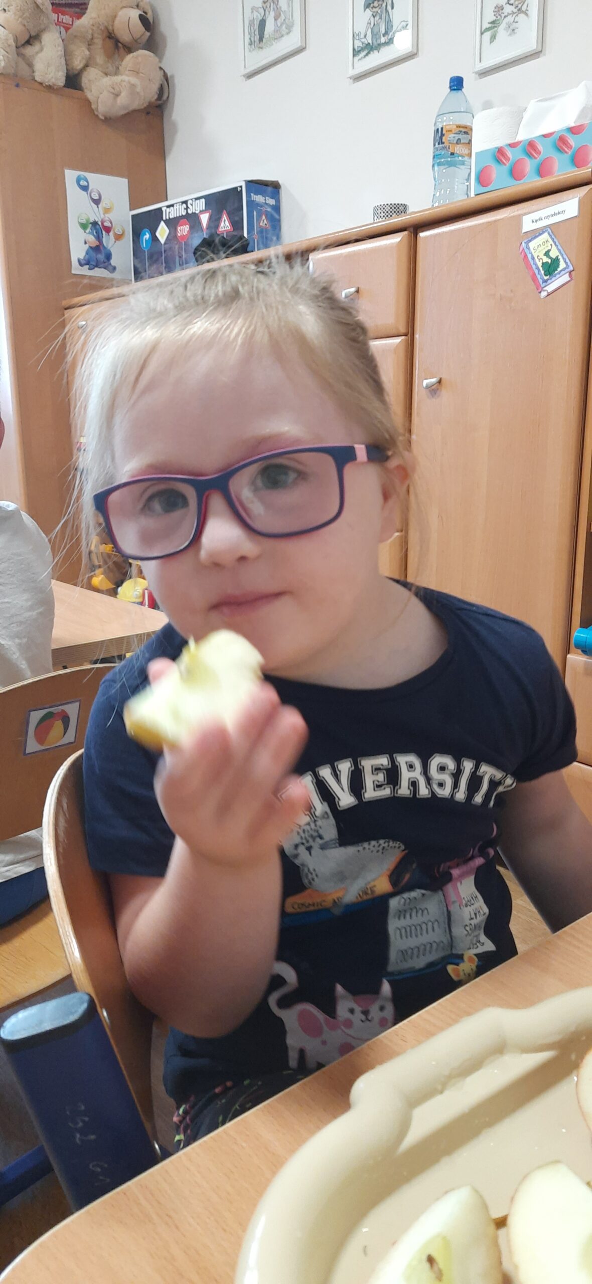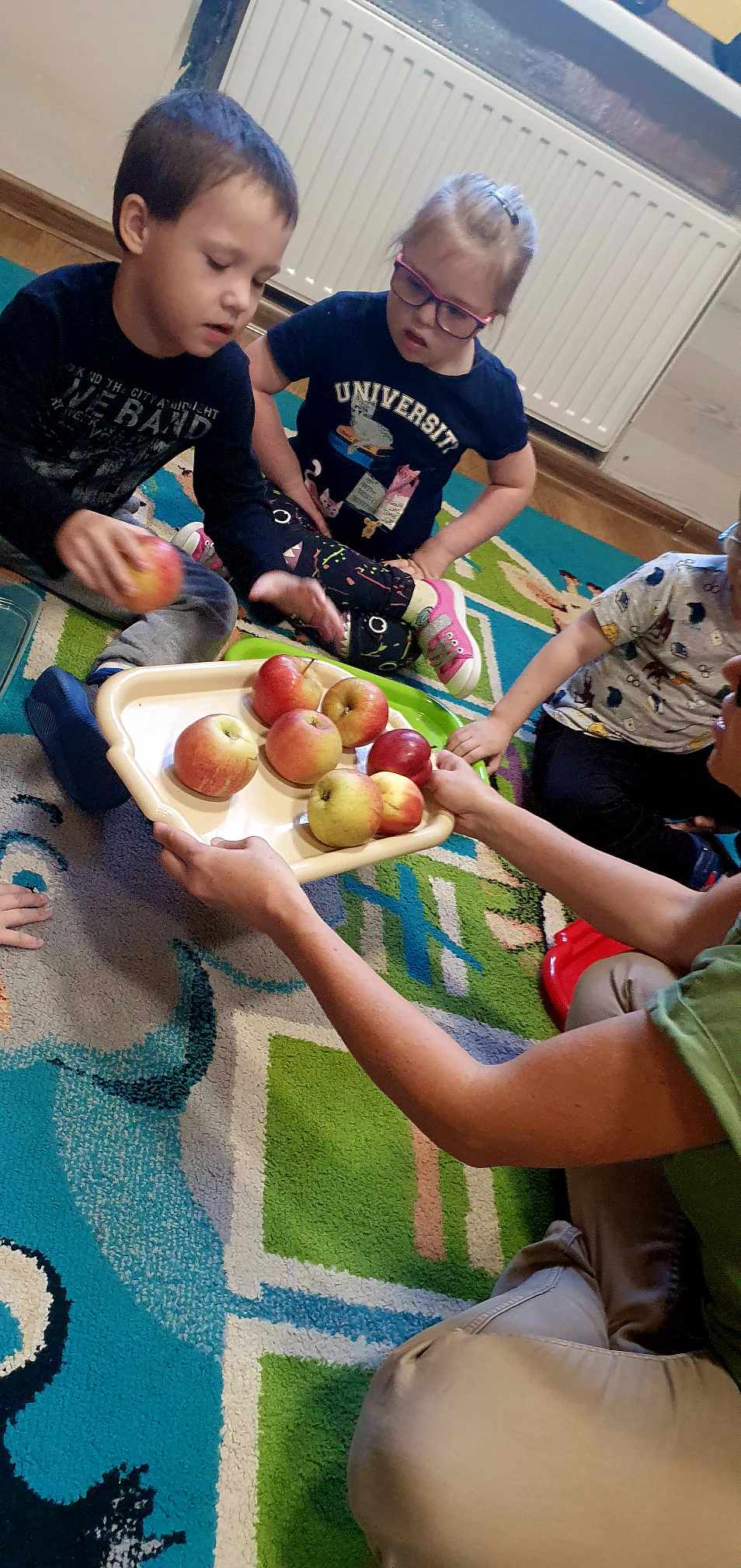 28 września obchodziliśmy w przedszkolu Dzień Jabłka. Był to trochę inny dzień niż zwykle. Rano „Tygryski -Urwiski” wybrały się do sklepu kupić pyszne, soczyste jabłka. Następnie dzieci poznawały jabłko od środka, określały zapach, kształt, smak. Wszystkie zabawy tego dnia dominowały pod znakiem jabłka, były piosenki, ćwiczenia z liczeniem, zabawy ruchowe. Podsumowaniem zajęć było wykonanie soku jabłkowego. Przedszkolaki poznały sokowirówkę i pomagały przygotować pyszny, zdrowy soczek, który później z wielką ochotą wypiły.