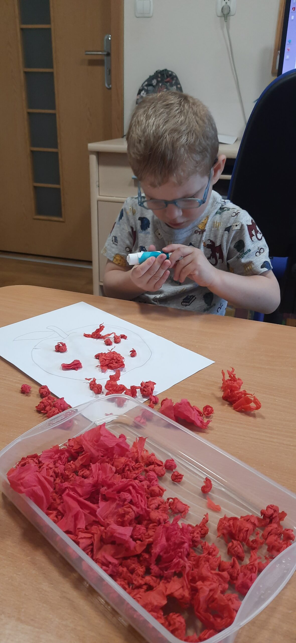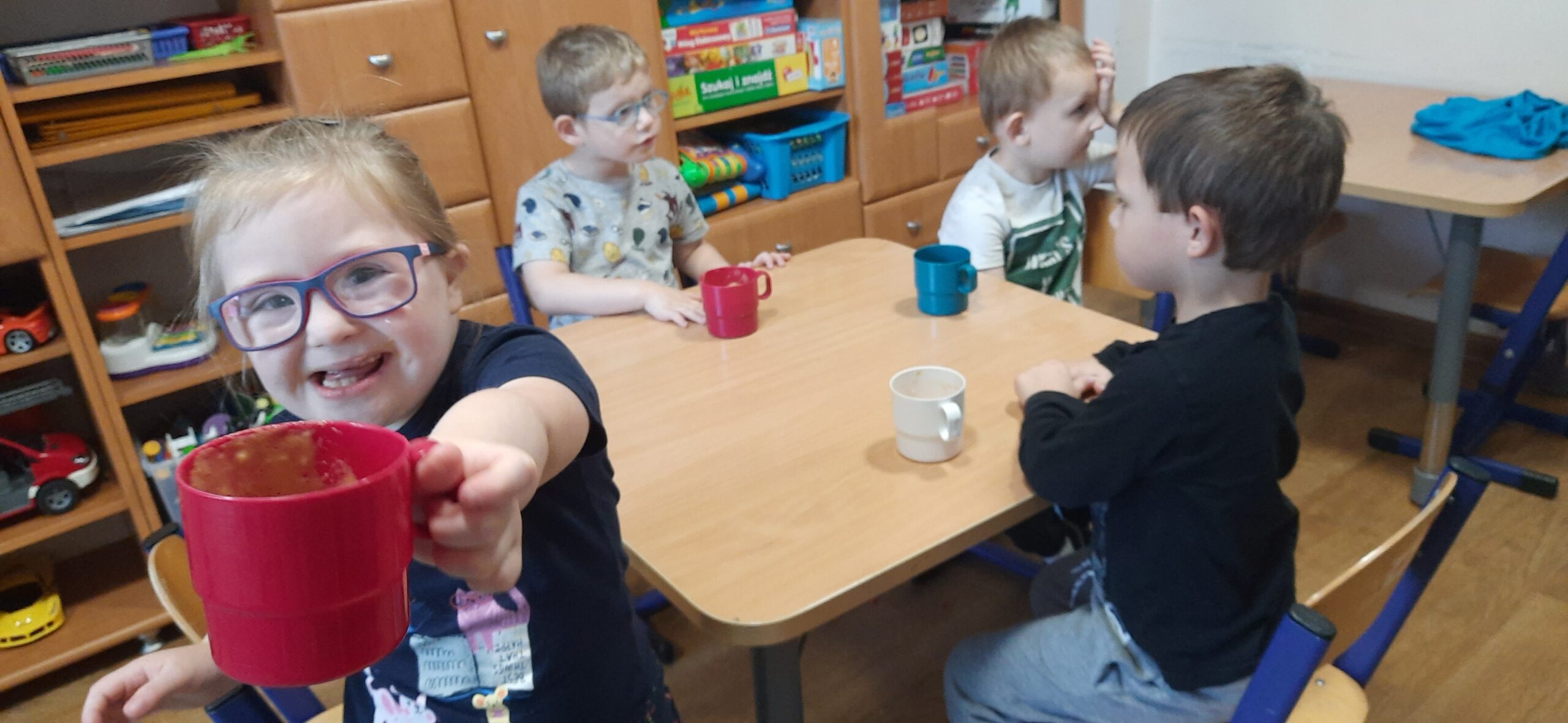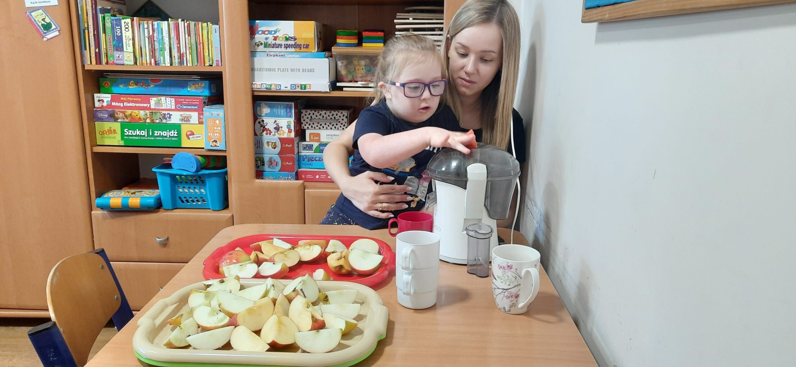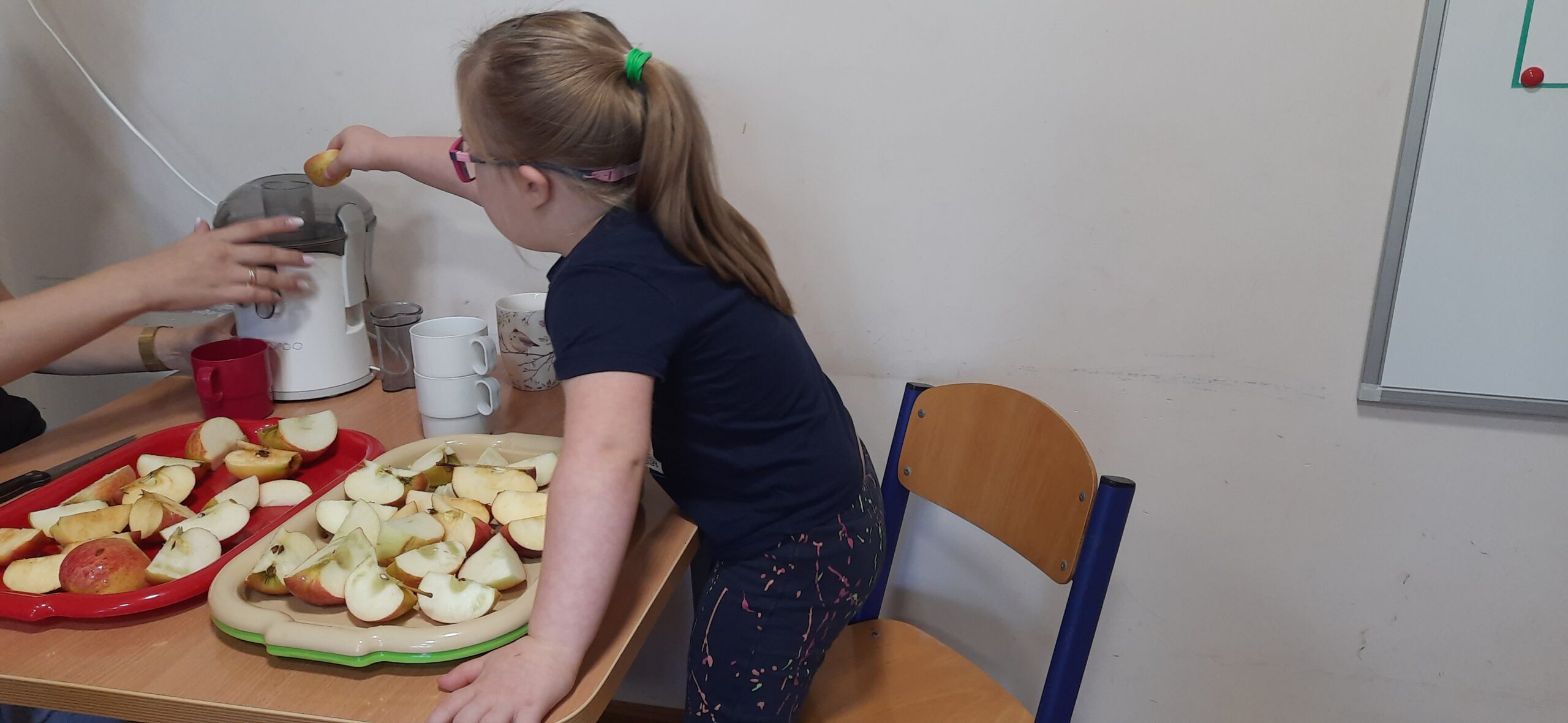 28 września obchodziliśmy w przedszkolu Dzień Jabłka. Był to trochę inny dzień niż zwykle. Rano „Tygryski -Urwiski” wybrały się do sklepu kupić pyszne, soczyste jabłka. Następnie dzieci poznawały jabłko od środka, określały zapach, kształt, smak. Wszystkie zabawy tego dnia dominowały pod znakiem jabłka, były piosenki, ćwiczenia z liczeniem, zabawy ruchowe. Podsumowaniem zajęć było wykonanie soku jabłkowego. Przedszkolaki poznały sokowirówkę i pomagały przygotować pyszny, zdrowy soczek, który później z wielką ochotą wypiły.