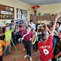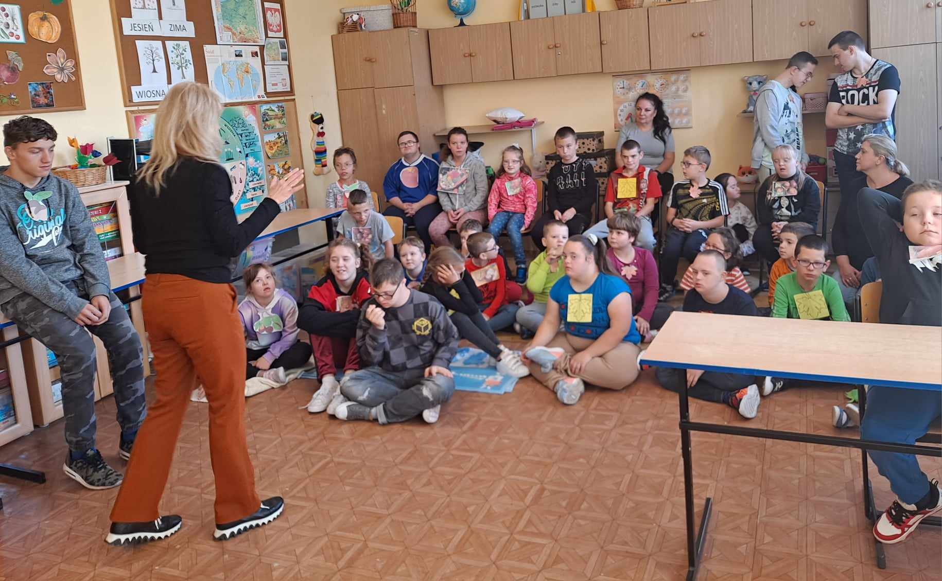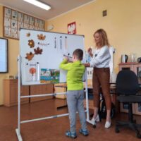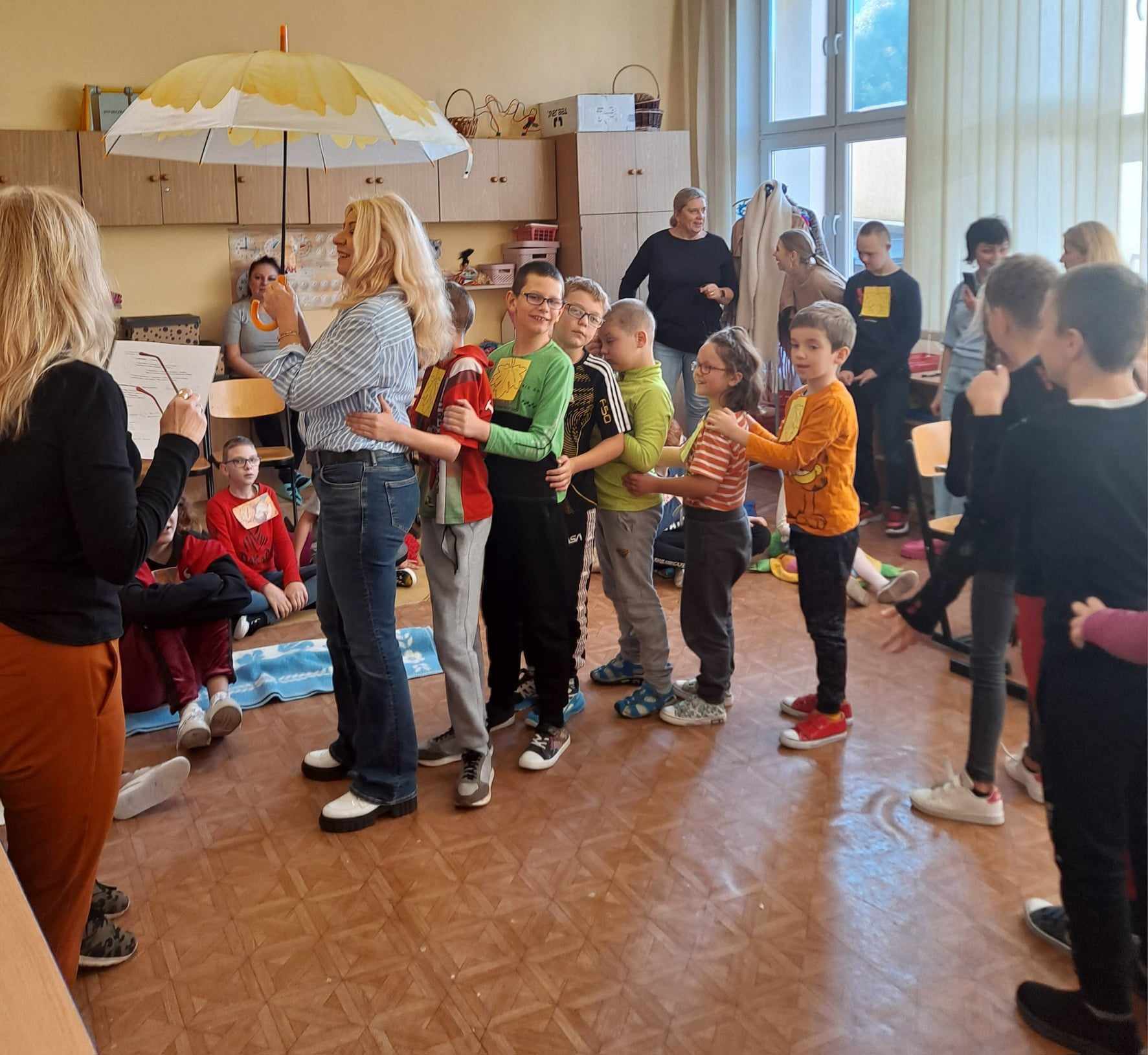 Taki tytuł miało pierwsze w tym roku szkolnym spotkanie dla klas SP w ramach kampanii Cała Polska czyta dzieciom. Głośne czytanie wierszy przez nauczycieli i zaproszonych gości wpisało się również w obchody Europejskiego Tygodnia Świadomości Dysleksji. Tematykę jesiennych wierszy utrwalaliśmy poprzez radosne inscenizacje i zabawy, w których uczestniczyli sami słuchacze. Jesienny pociąg z warzyw i owoców zawiózł nas w sam środek tej kolorowej pory roku. Nie zabrakło również fryzur czesanych wiatrem.