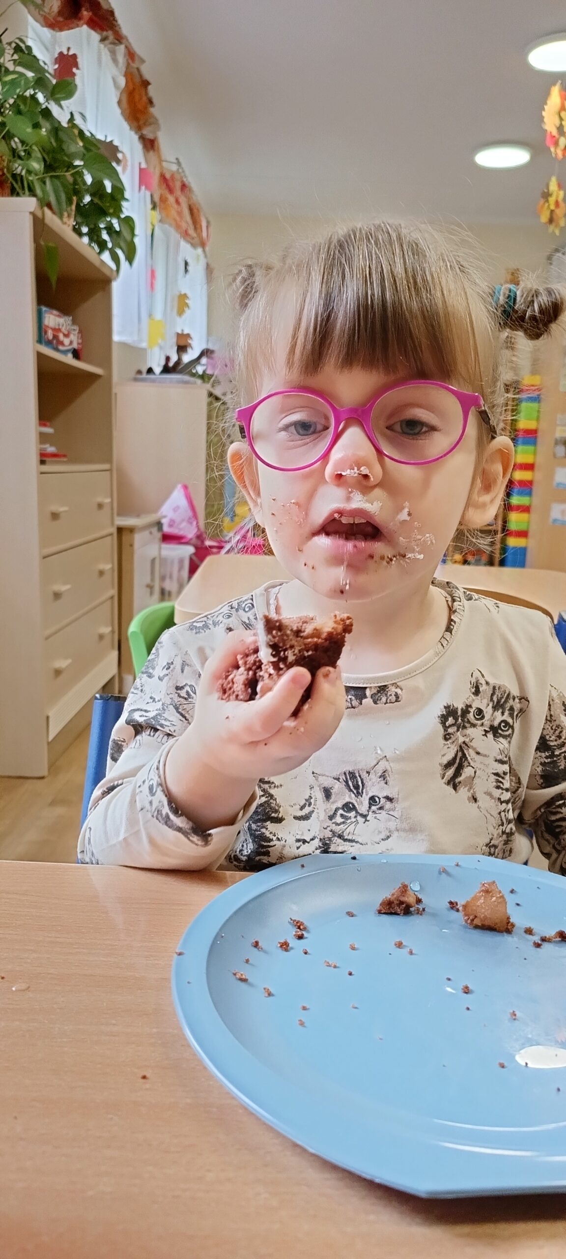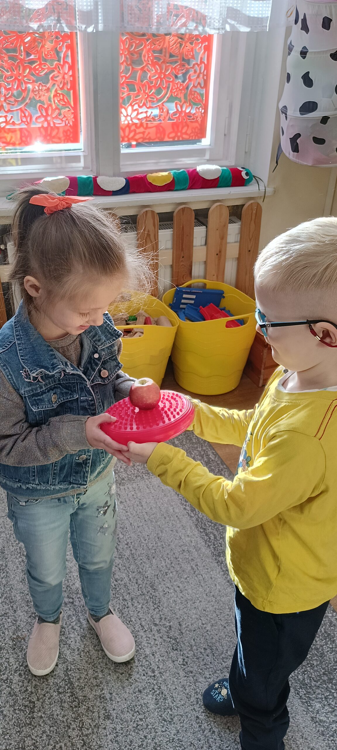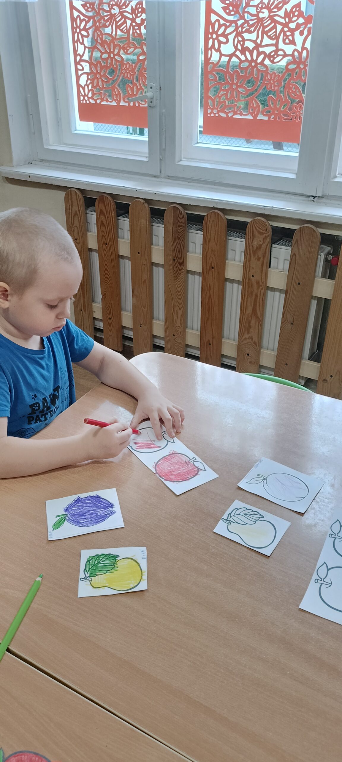 W minionym tygodniu rozmawialiśmy o owocach – poznaliśmy ich nazwy, smak, kształt. Z jabłek zrobiliśmy pyszne ciasto. Nauczyliśmy się wiersza Wpadła gruszka do fartuszka. Wykonaliśmy pracę plastyczną – kompot z jabłek.