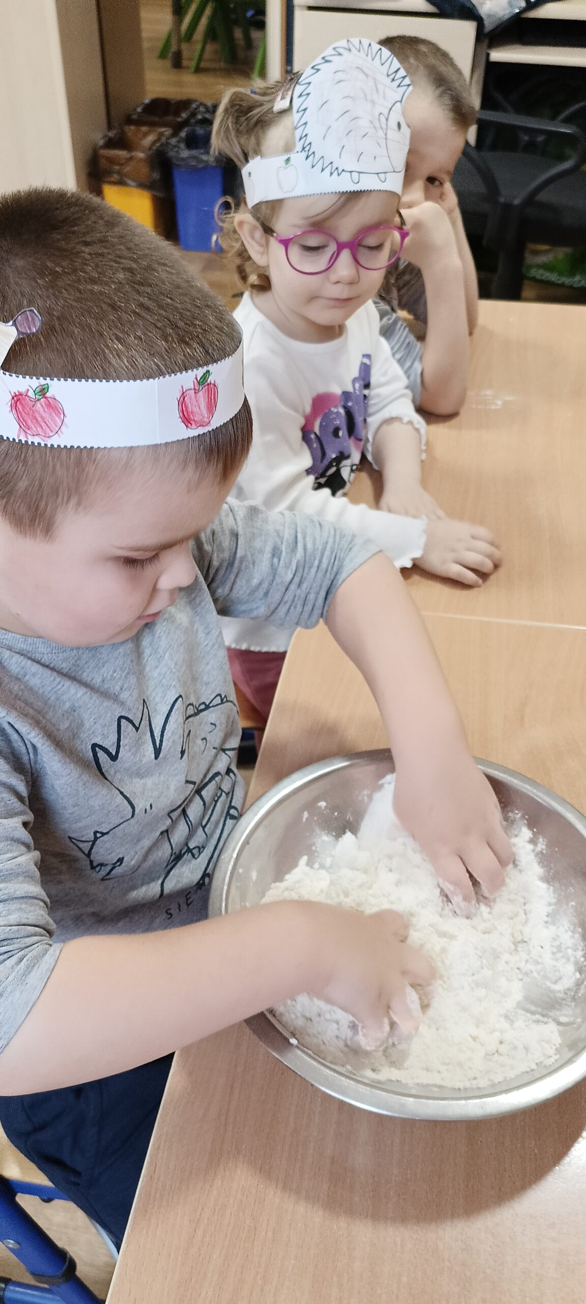 13.10 obchodziliśmy w naszej grupie Dzień jeża. Dzieci  poznały ciekawostki o jeżach, ich wyglądzie, sposobie poruszania się. Na początku zajęć wykonały opaski. Później wysłuchały , krótkiej bajki o jeżyku Heniu, który bał się igieł i lubił zasypiać pod liśćmi. Ozdobiły jeża kolcami oraz ułożyły mu kołderkę  z kolorowych liści. Z masy solnej wykonały swojego jeża.