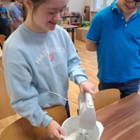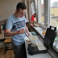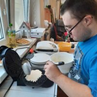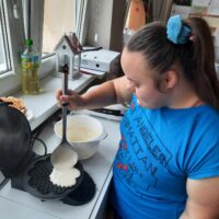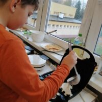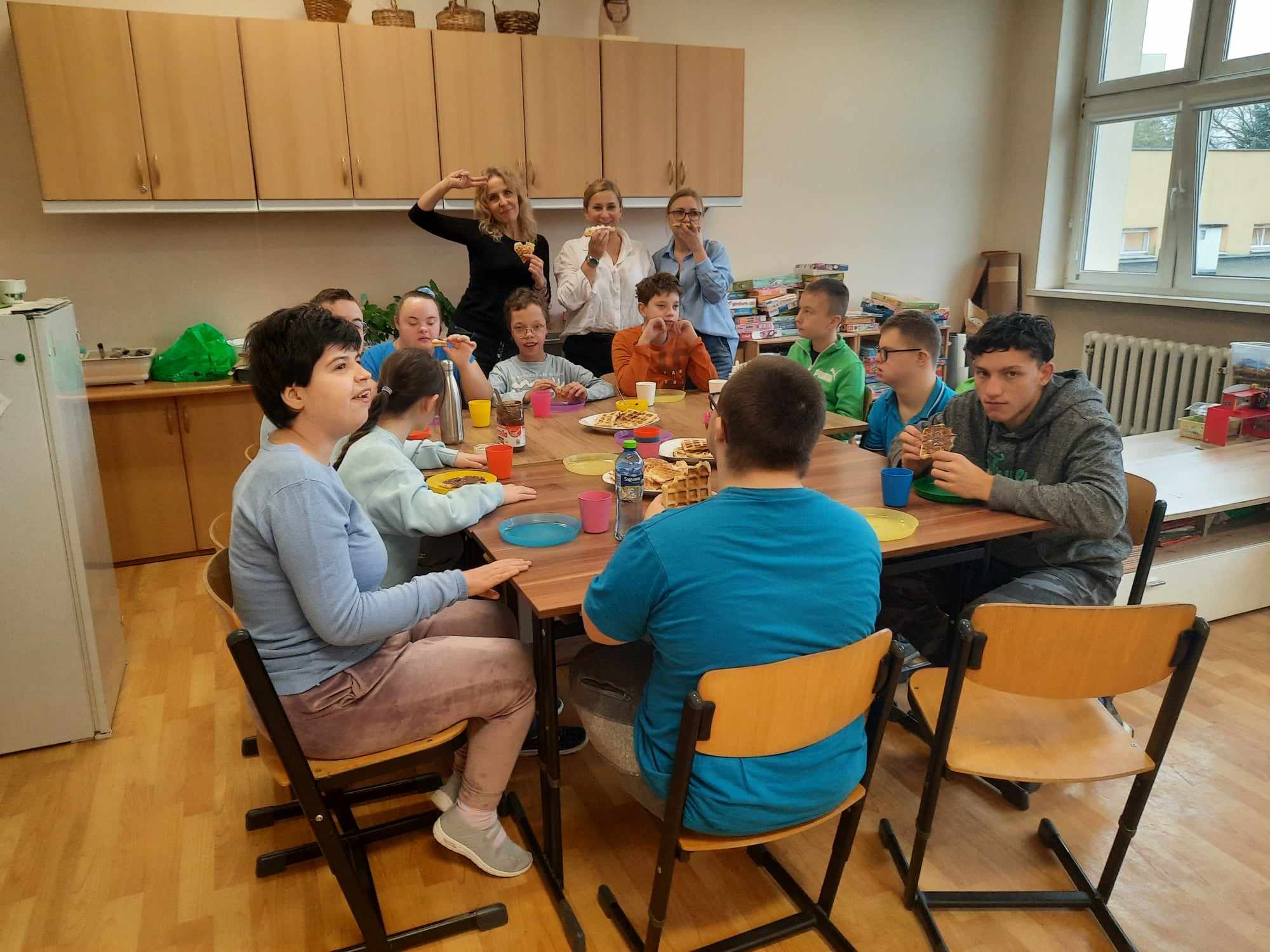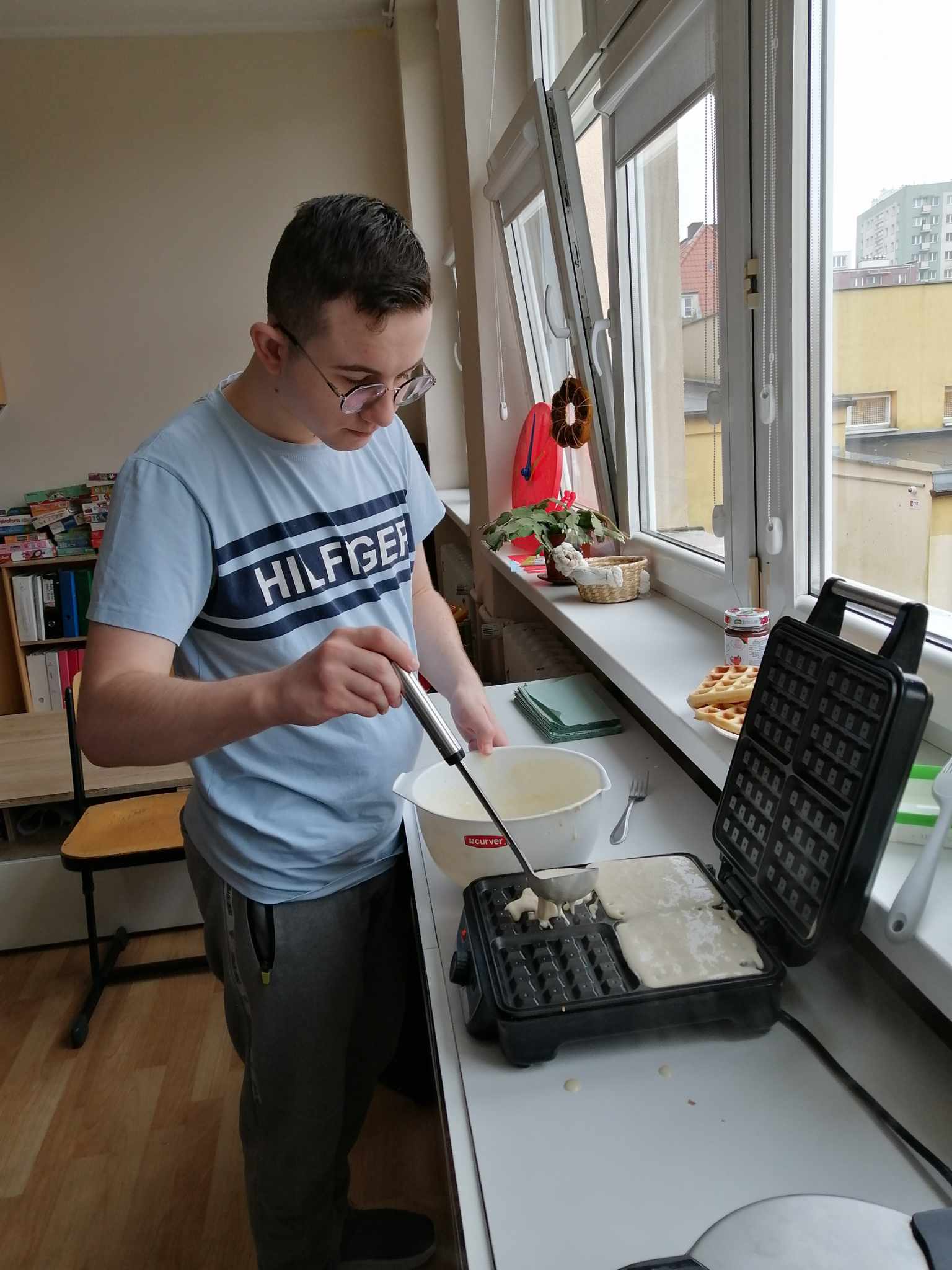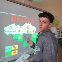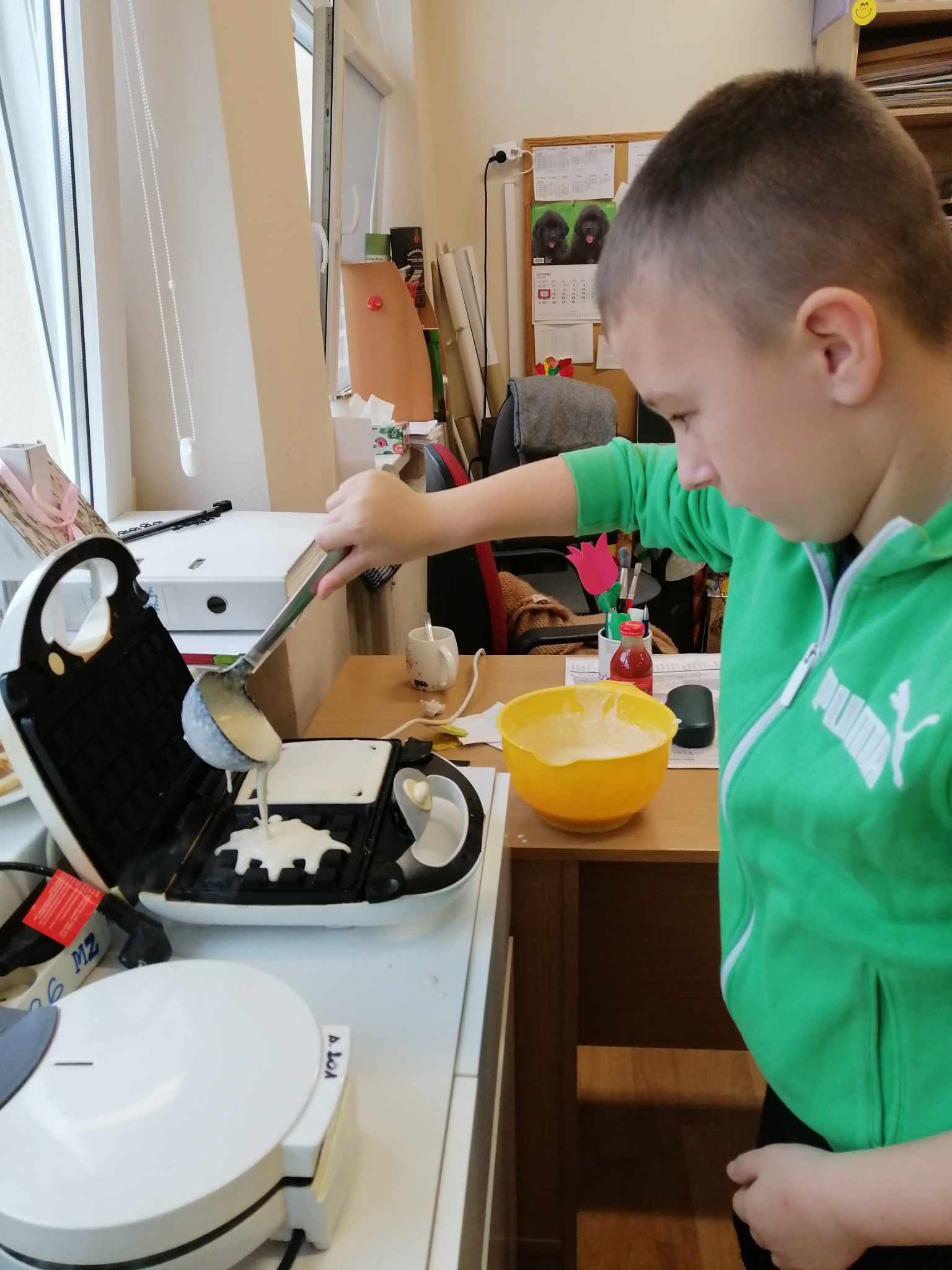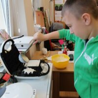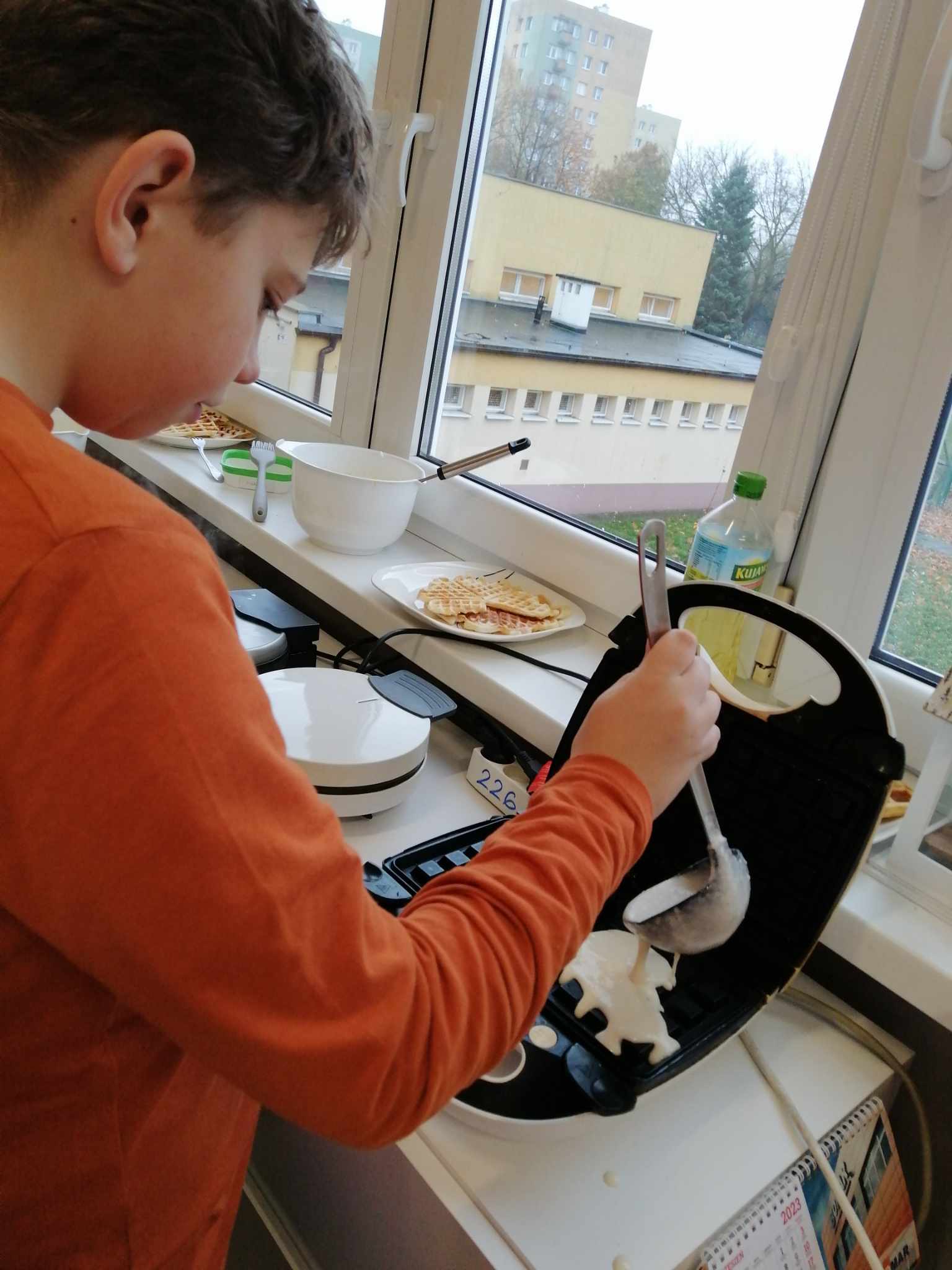 logo z kultura mi do twarzyKolejne spotkanie w ramach  Międzynarodowego Projektu Edukacyjnego „Z kulturą mi do twarzy” poświęcone było jednemu z europejskich państw – Belgii. Specjalnie  w tym dniu uczniowie przyszli ubrani na niebiesko, chcąc utożsamić się z bohaterami belgijskiej bajki „Smerfy”. Największą atrakcją zajęć było samodzielne przygotowanie przez uczniów gofrów, których kolebką jest Belgia. Jak przystało na prawdziwych szefów kuchni, z przygotowaniem słodkości uczniowie poradzili sobie znakomicie. Po upieczeniu w gofrownicach  i udekorowaniu wybranymi dodatkami, gofry zostały zjedzone z apetytem. Na zakończenie wszyscy obejrzeliśmy wesołe przygody niebieskich postaci – Smerfów.