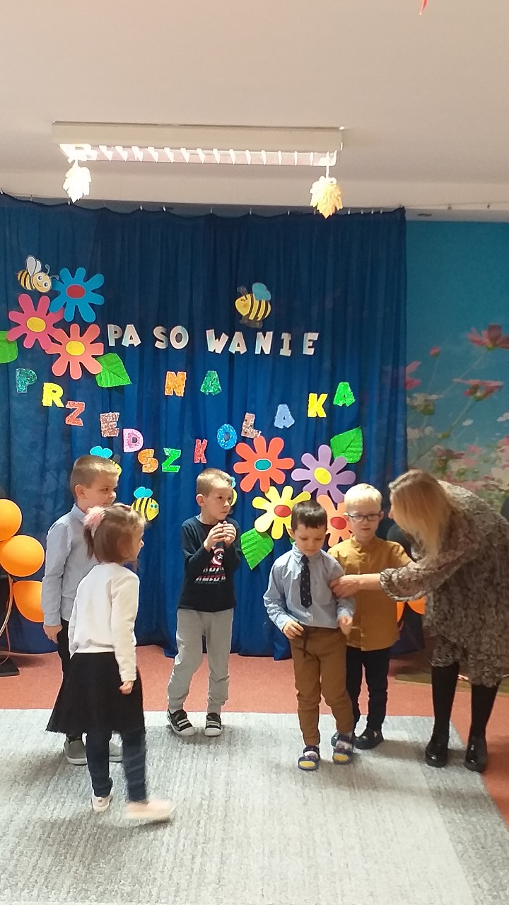 14.10 w przedszkolu w grupie Waleczne pszczółki odbyła się uroczystość Pasowania na przedszkolaka. Mali artyści zaprezentowali przygotowane piosenki, wiersze i tańce. Po części artystycznej nastąpił akt pasowania przez panią kierownik Joanna Leśkiewicz. Wszystkie dzieci otrzymały pamiątkowe dyplomy i medale. Odpowiedzialne K. Kłos, M. Zajączkowska