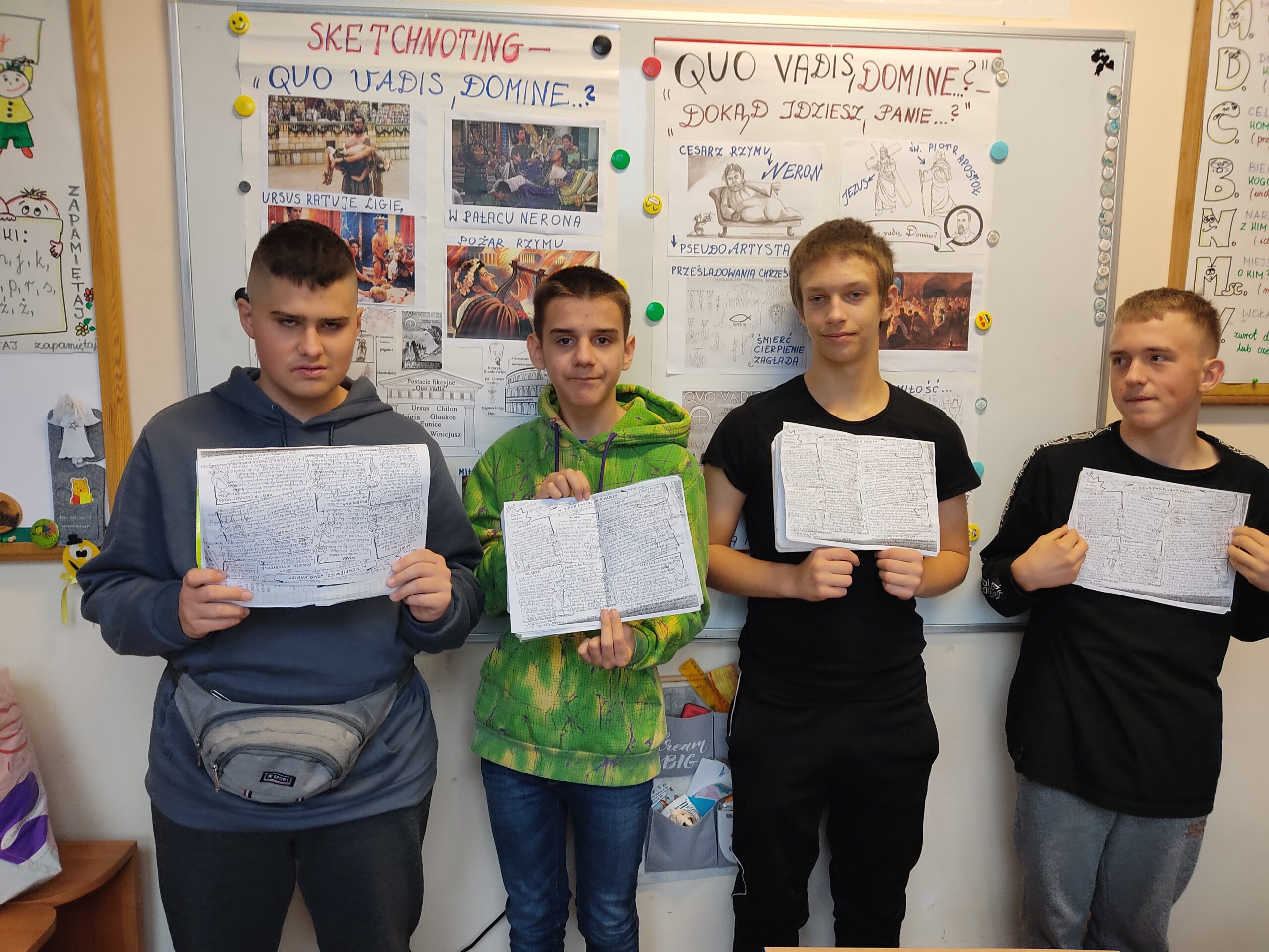 Dzięki innowacji pedagogicznej, w której obraz niejednokrotnie zastępuje myśl tradycyjnie wyrażoną słowem, lektura „Quo vadis, Domine?”, co znaczy „Dokąd idziesz, Panie?” rozbudziła wśród młodzieży ciekawość poznawczą, czego potwierdzeniem była empatia, jako przejaw autentycznego utożsamiania się z losami bohaterów. Wszystko to świadczy o atrakcyjności zajęć w pełni angażujących sferę poznawczo-emocjonalną uczniów.