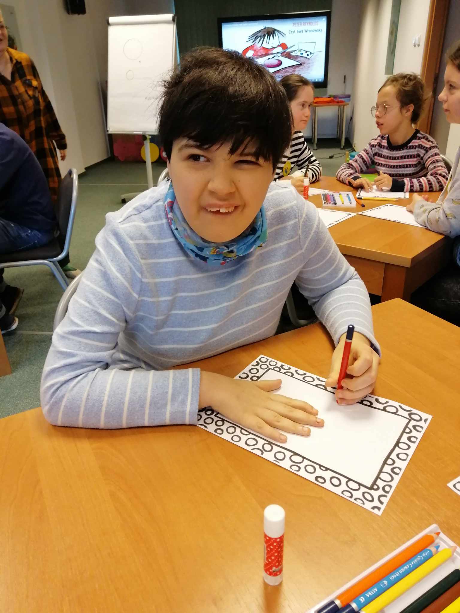 Każda emocja jest ważna i potrzebna. Niektórym osobom rozpoznawanie emocji, nazywanie ich sprawia trudność. A jak spisali się uczniowie klas: IIIG. VIIID oraz VIIIE podczas zajęć w W-M Bibliotece Pedagogicznej? Oczywiście jak zawsze byli zaangażowani i dali z siebie wszystko- odpowiadali na pytania prawie bezbłędnie, a przy tym świetnie się bawili. Poprzez rysunek wyrazili jaka emocja jest im najbliższa. Określali, jakie emocje mogą im towarzyszyć odnosząc się do poszczególnych sytuacji. Uczestniczyli także w zabawie ” Gra na emocjach „.