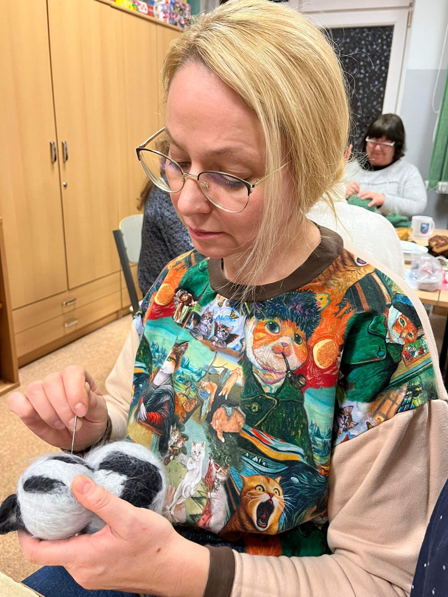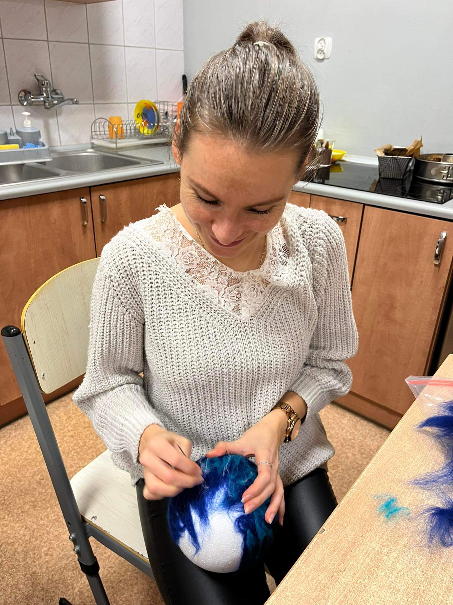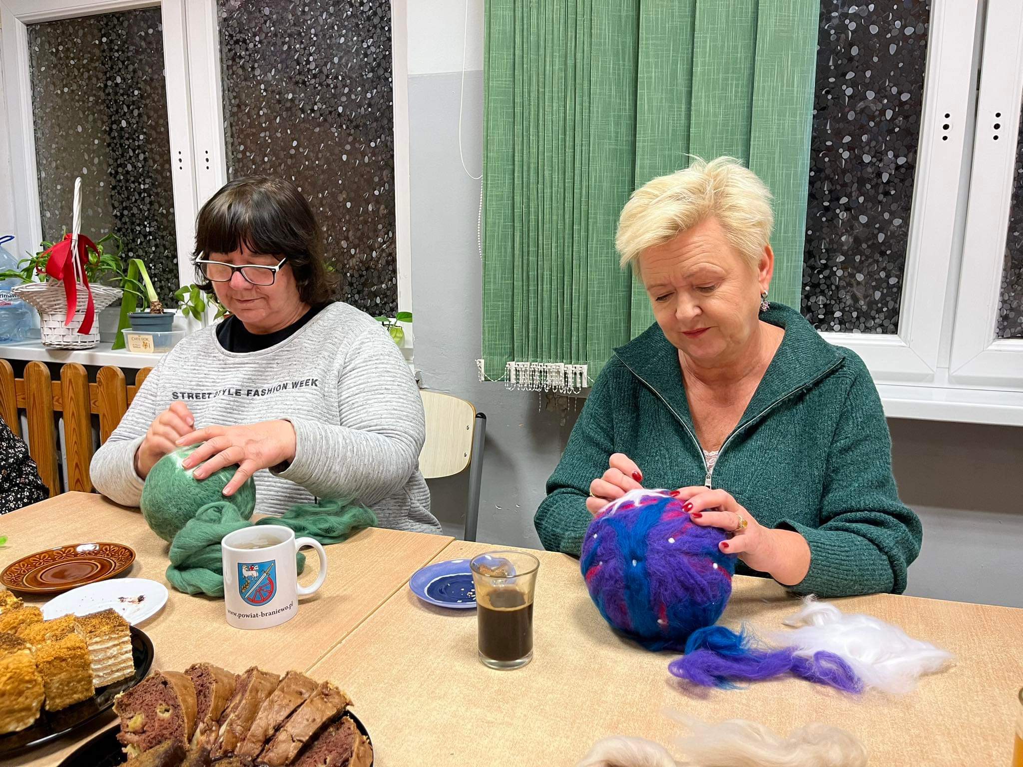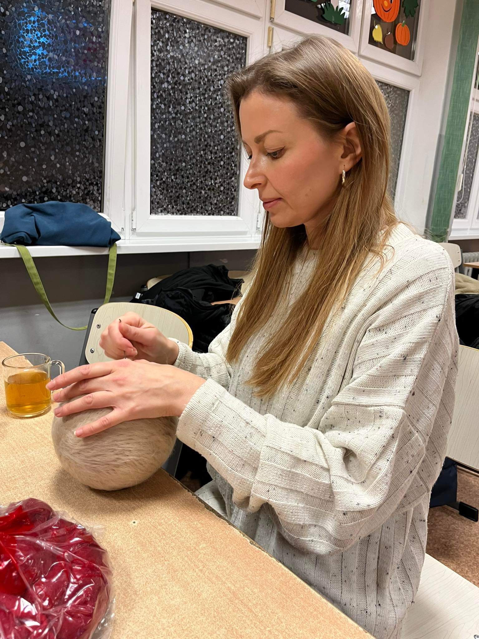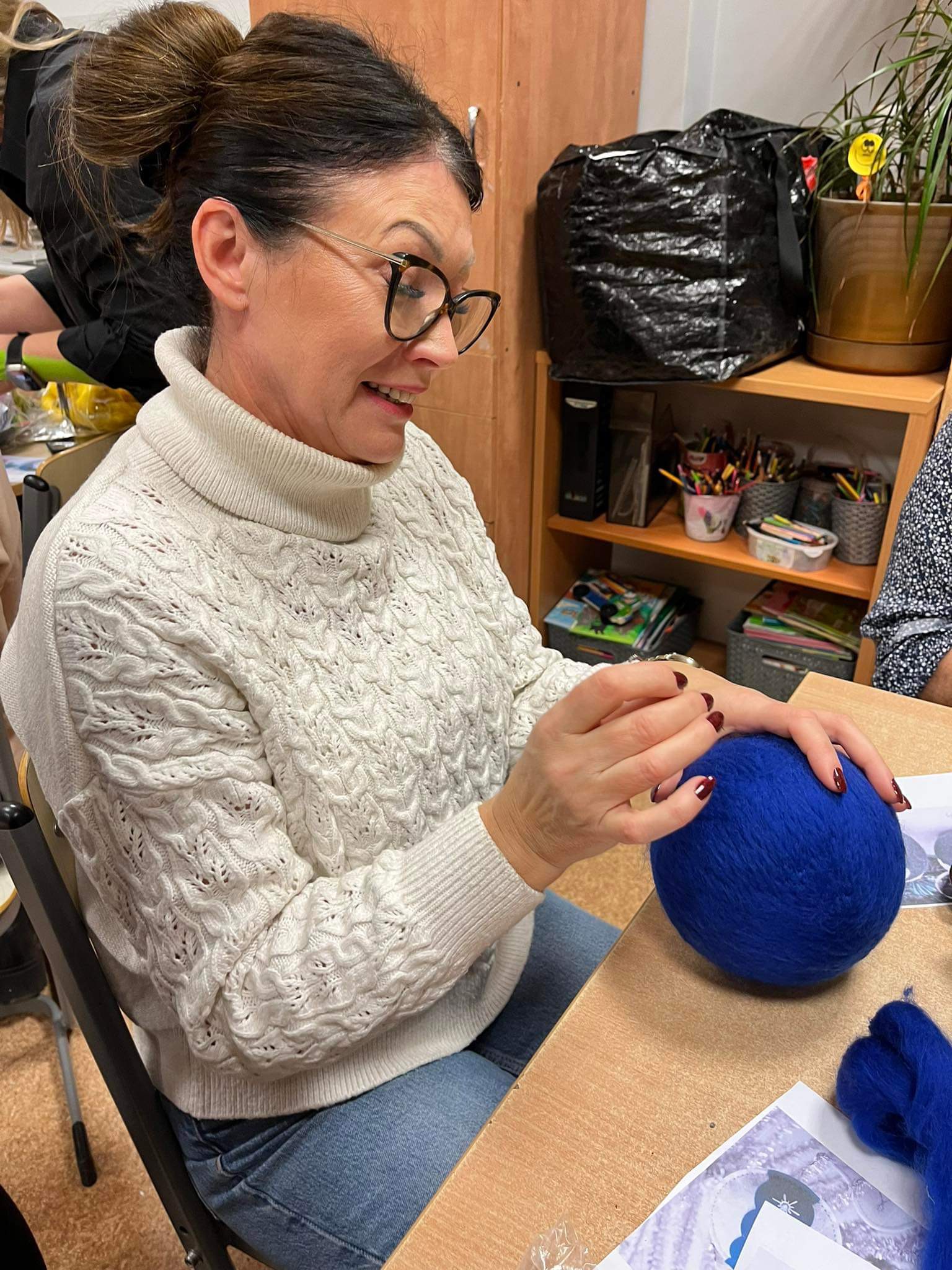 Po raz kolejny w świetlicy szkolnej odbyły się warsztaty w ramach WDN dla nauczycieli i nie tylko. Tym razem poznawaliśmy technikę filcowania na sucho. Spośród kolorowych czesanek, pasmanteryjnych aplikacji i sznureczków trudno było wybrać te konkretne. Czasami ilość materiałów nie ułatwia zadania. Jednak, gdy już te decyzje zostały podjęte, natychmiast w sali zapadła cisza i słychać było tylko ciche dźwięki wbijanej w „filcowankę” igiełki. Efektem były przepiękne, bajecznie kolorowe prace. Każda uczestniczka podczas spotkania wykonała bombkę według własnego projektu. Choć technika i materiały były takie same, to szybko okazało się, że filcować na sucho można na różne sposoby, co daje nieograniczone możliwości w twórczej pracy nie tylko własnej, ale również z uczniami. To był dobrze spędzony czas w miłej atmosferze i doskonałym towarzystwie.