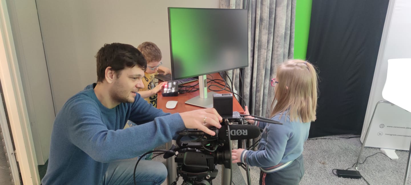 28.XI.23r. Tygryski – Urwiski udały się z wizytą do Centrum Spotkań Europejskich „Światowid” w Elblągu na warsztaty, pt. „Z wizytą w studio TV”. Przedszkolaki poznały studio nagrań od kulis. Największym zainteresowaniem wśród dzieci cieszył się sprzęt, z którego na co dzień korzysta studio. Tygryski – Urwiski wypróbowały również swoich sił jako dziennikarze oraz poznały magiczne sztuczki i przeniosły się do zimowej krainy.