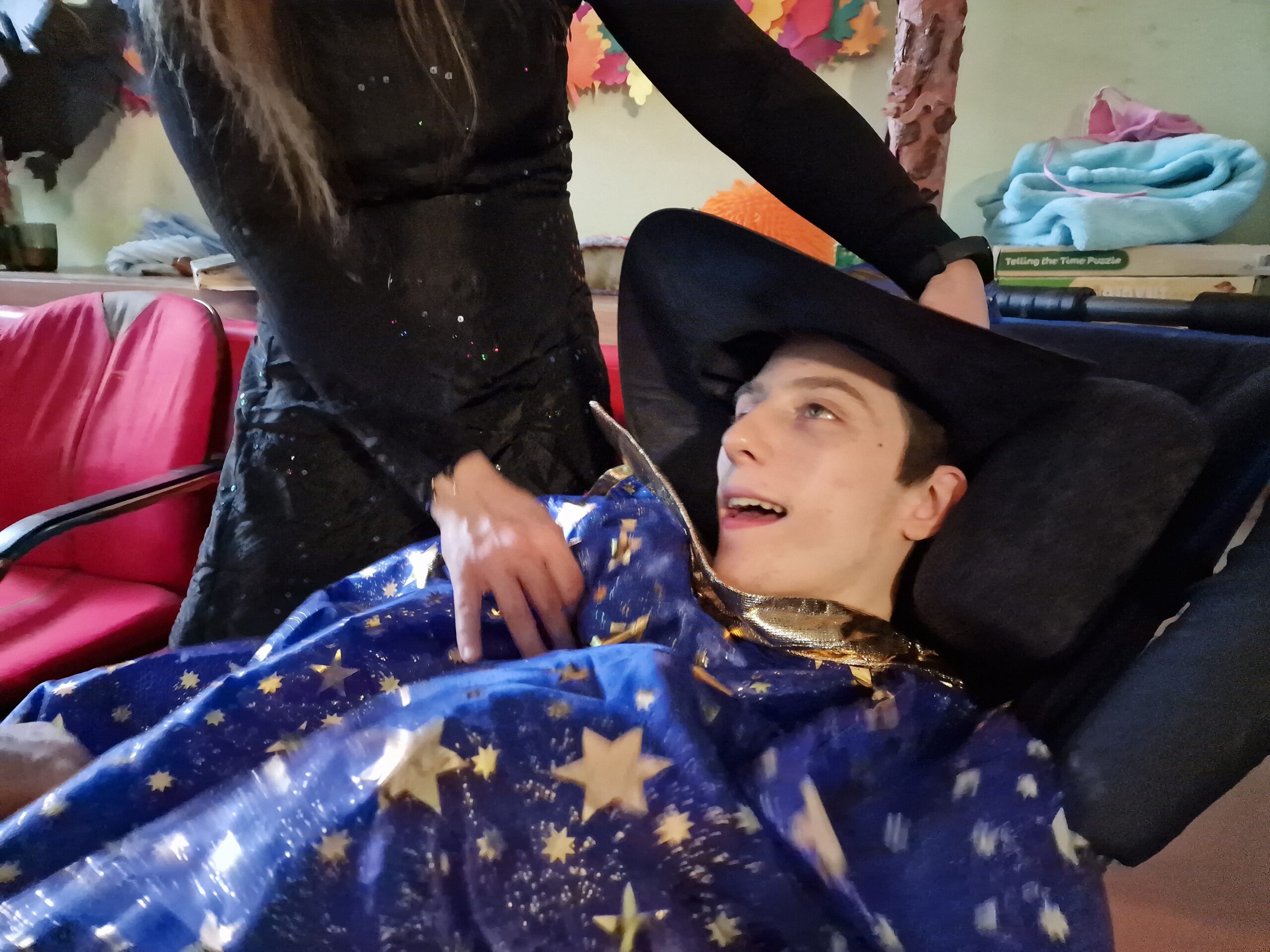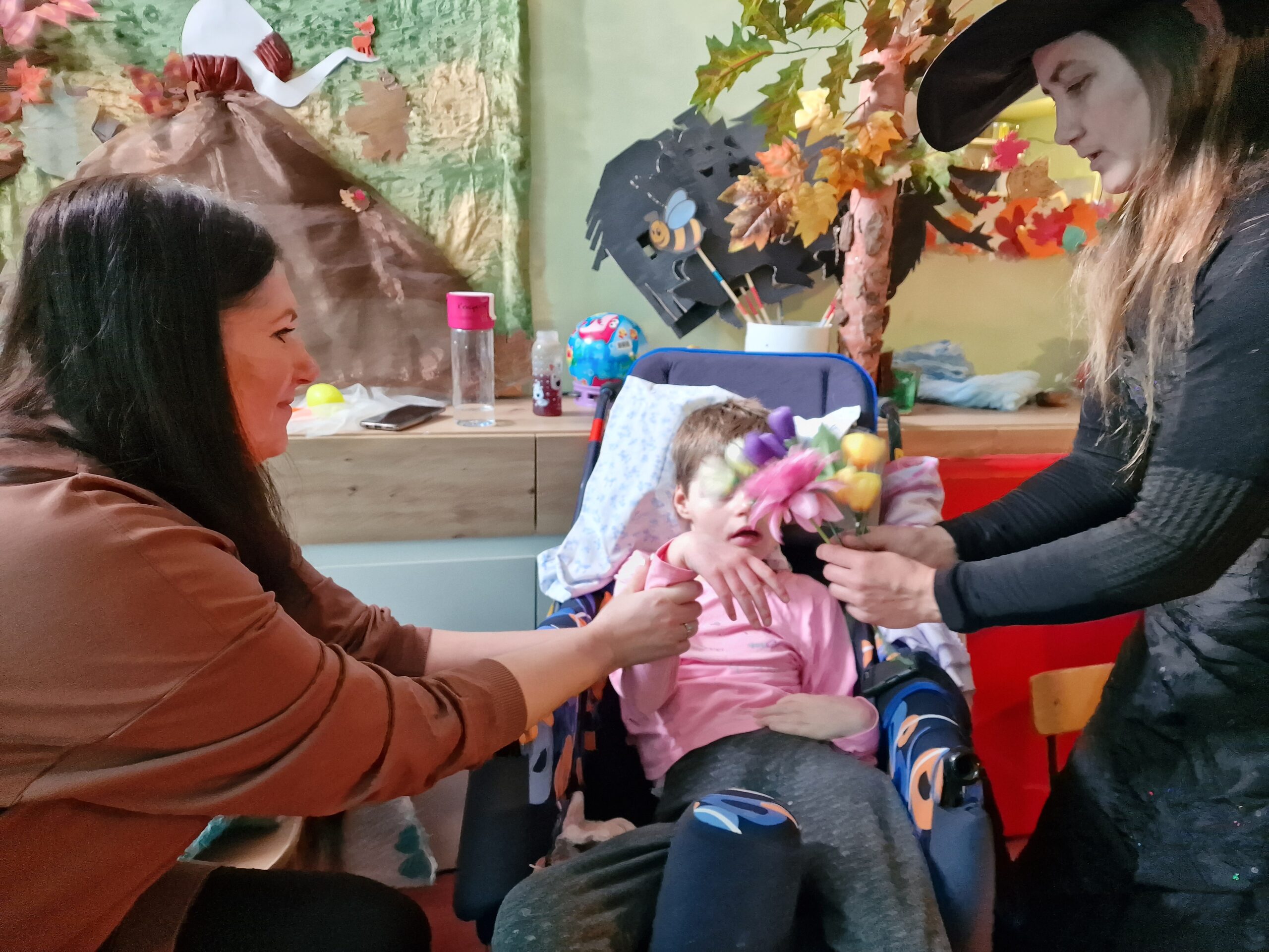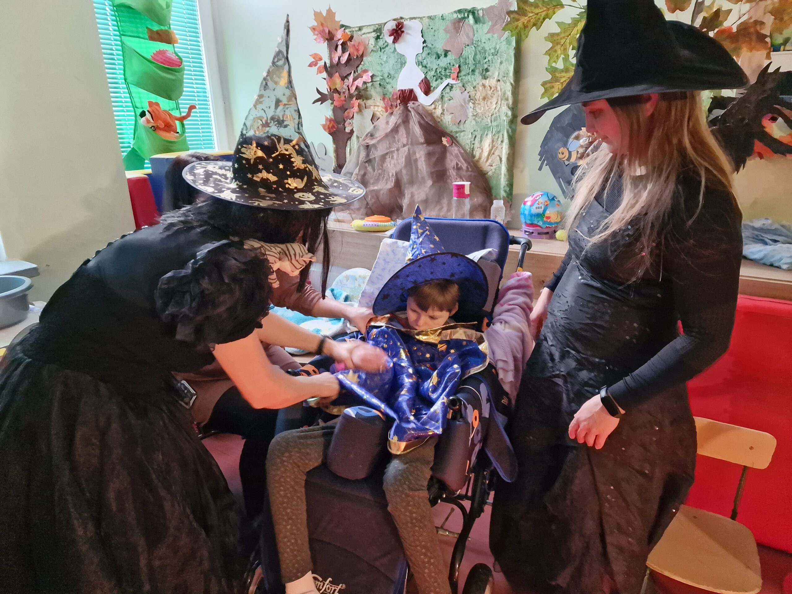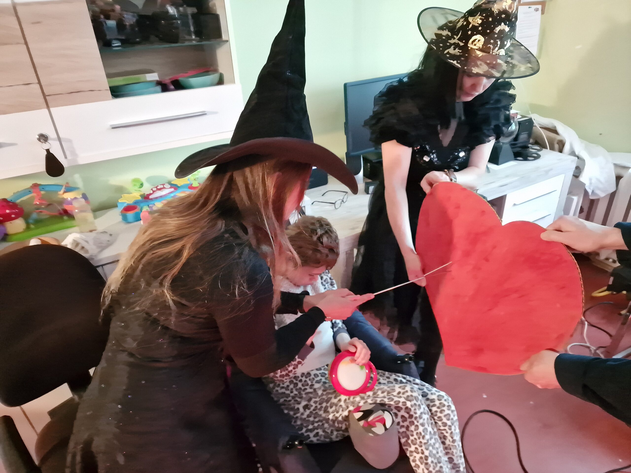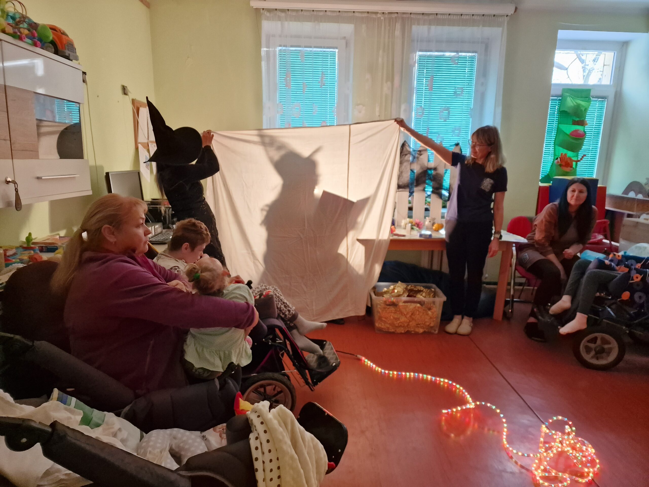 Taką piosenką, takimi słowami rozpoczęło się spotkanie z dwoma uroczymi czarownicami w Domu Pomocy Społecznej. Przeniosły nas w magiczny świat wróżb i zabaw andrzejkowych. Każdy mógł spróbować wywróżyć sobie bliższą i dalszą przyszłość dzięki magicznym kartom, laniu wosku, wybieraniu czarodziejskiego kwiatka. Czarownice otworzyły także magiczną szkatułkę w której ukryte były przepowiednie naszych cech charakteru, z kolorów wywróżyły nam przestrogi na przyszłość, a z przekutego serca dowiedzieć się można było kto jest naszym przeznaczeniem miłosnym. Całości przyświecały świece, lampki a w powietrzu unosił się zapach pomarańczy i goździków.