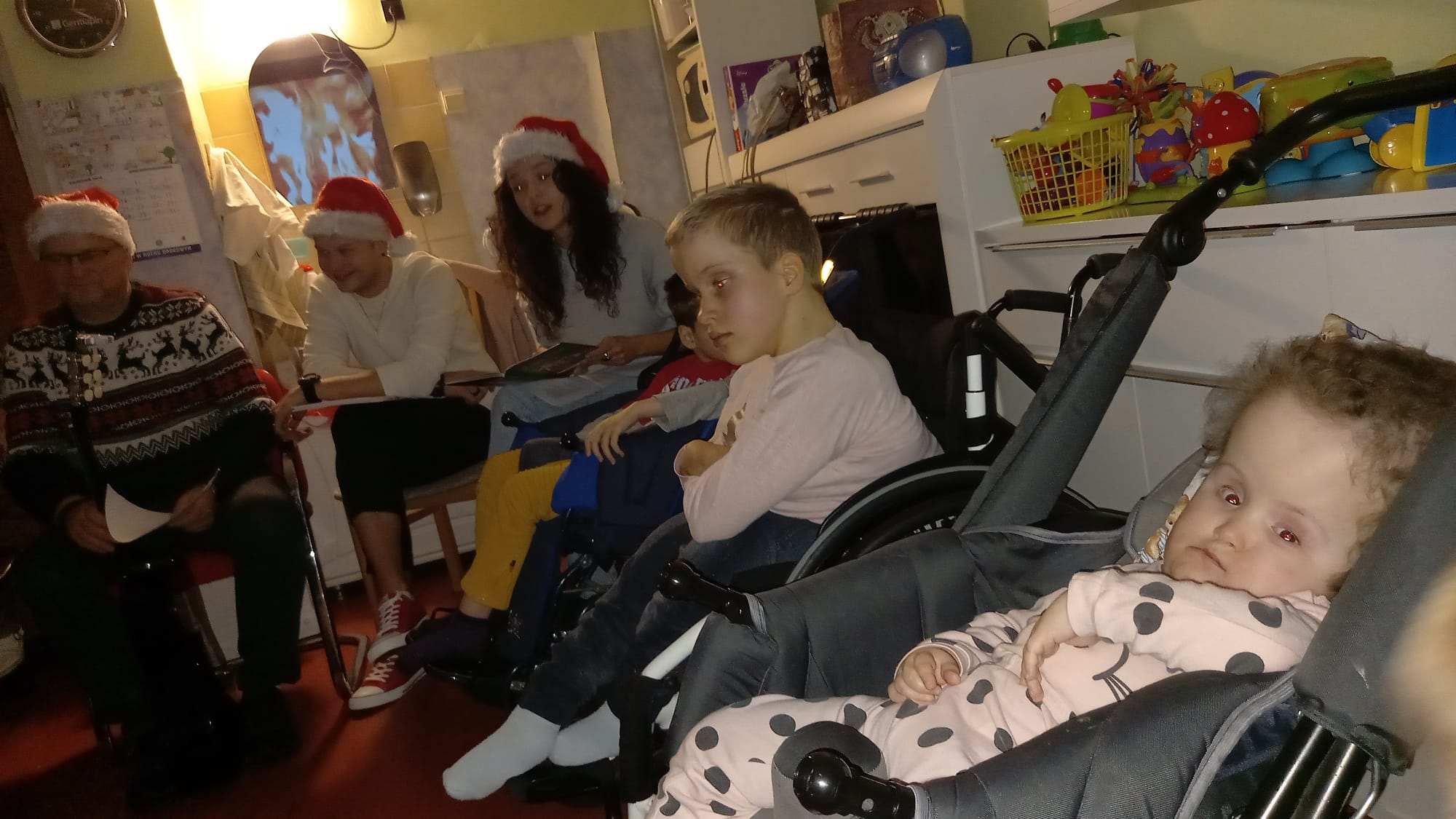 Dnia 05 grudnia z okazji Mikołajek dzieci w DPS odwiedzili aktorzy z Elbląskiego Teatru im. A. Sewruka. Pani Karina przedstawiła dzieciom historię Świętego Mikołaja, dzieci dowiedziały się jak nazywany jest Mikołaj w różnych krajach oraz poznali jego najbliższe otoczenie. Wszyscy wspólnie śpiewali przy akompaniamencie  gitary znane polskie kolędy.