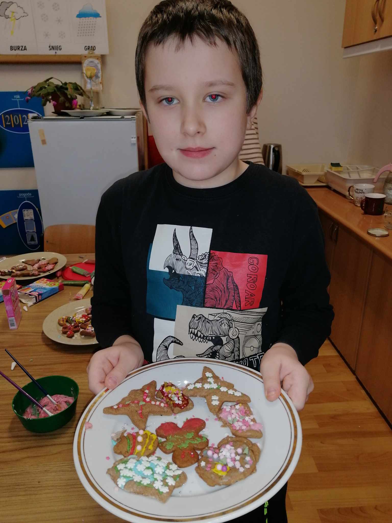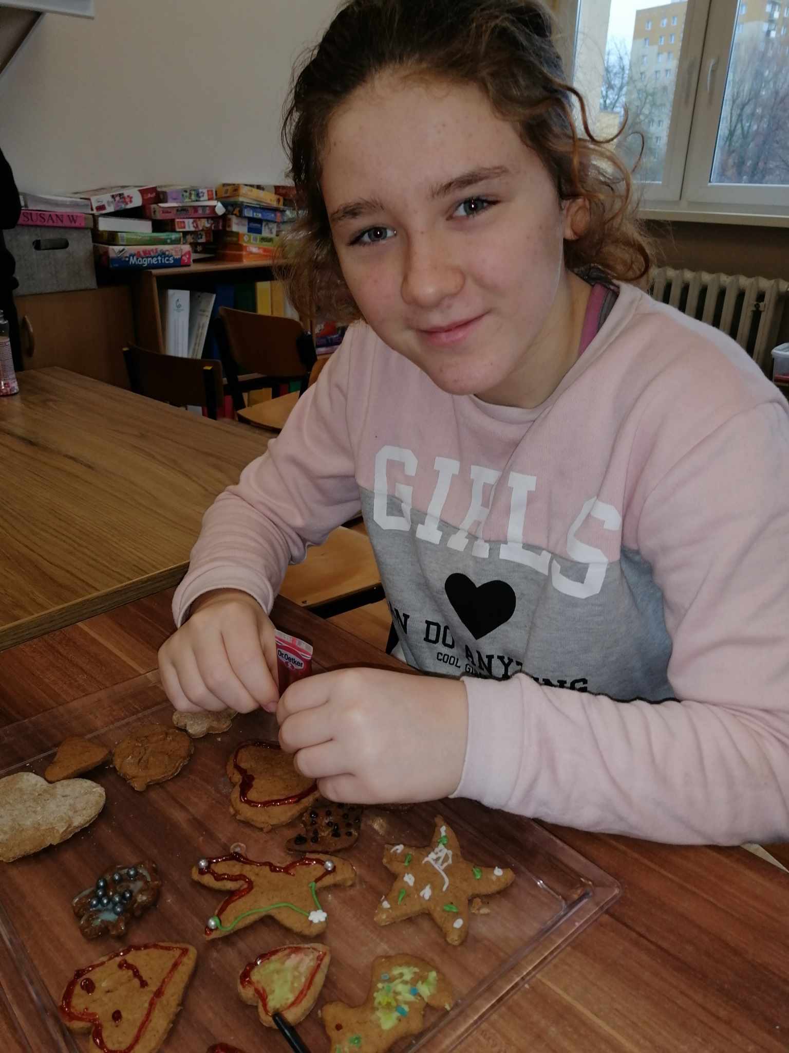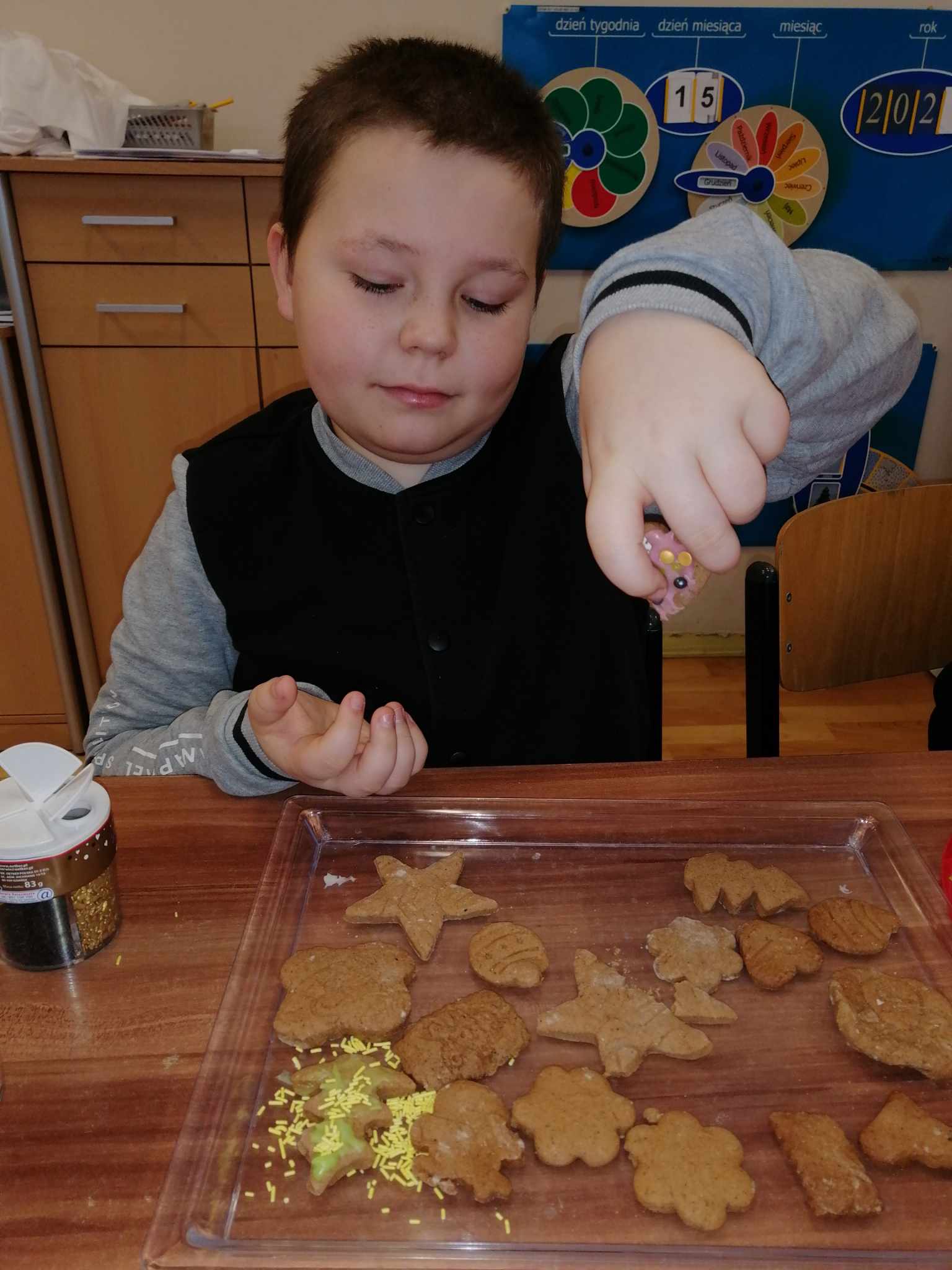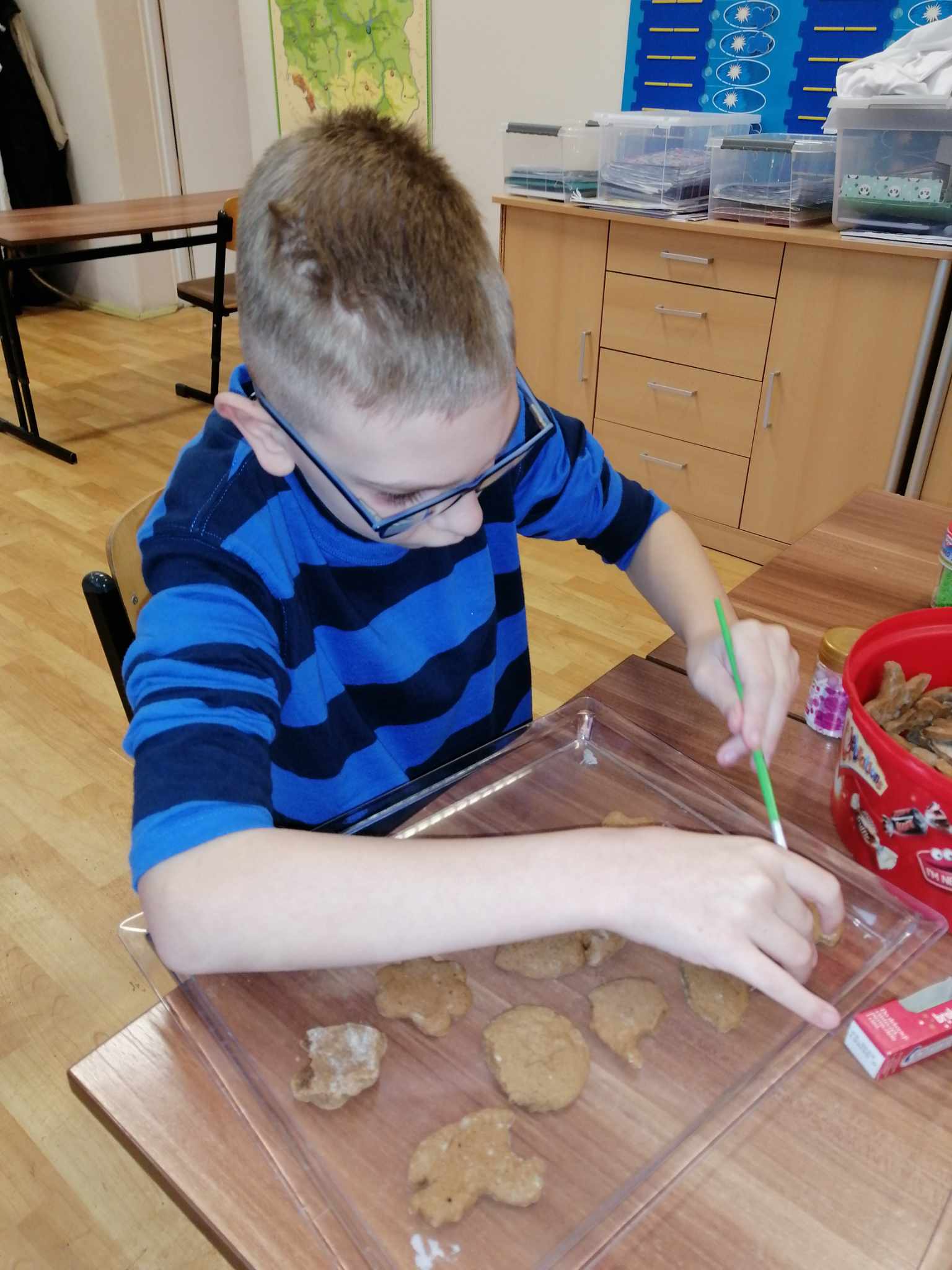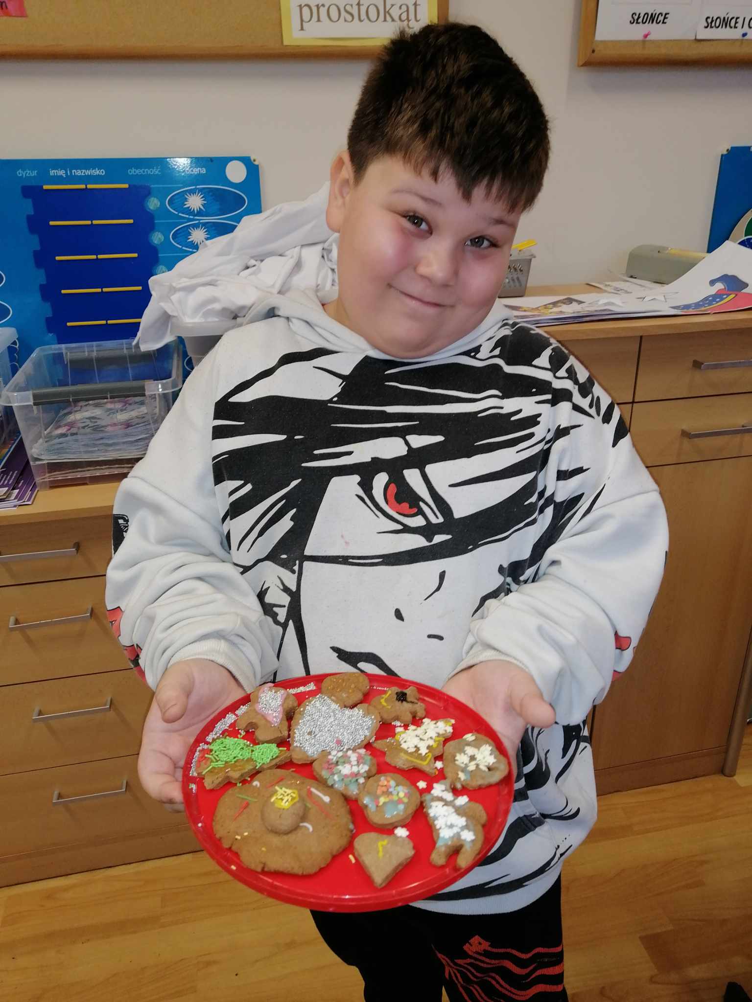 Na piątkowym spotkaniu klas SP powstały prawdziwe dzieła sztuki. Nasi młodzi cukiernicy, wykorzystując kolorowe ozdoby i lukry, dekorowali samodzielnie upieczone pierniczki, wykazując się pomysłowością i kreatywnością.  Pięknie udekorowane pierniki, czekają już na Jasełka i Wigilię.