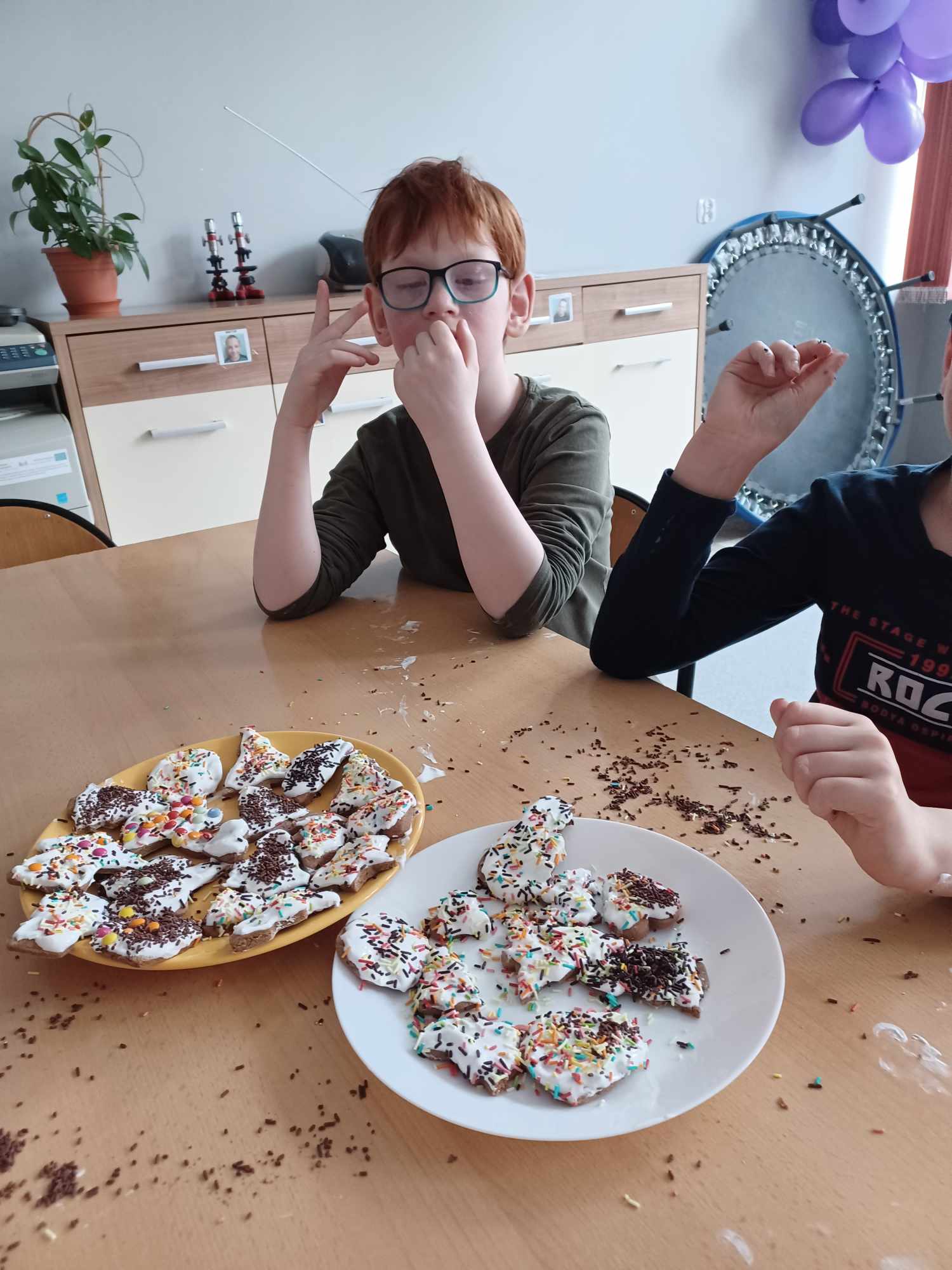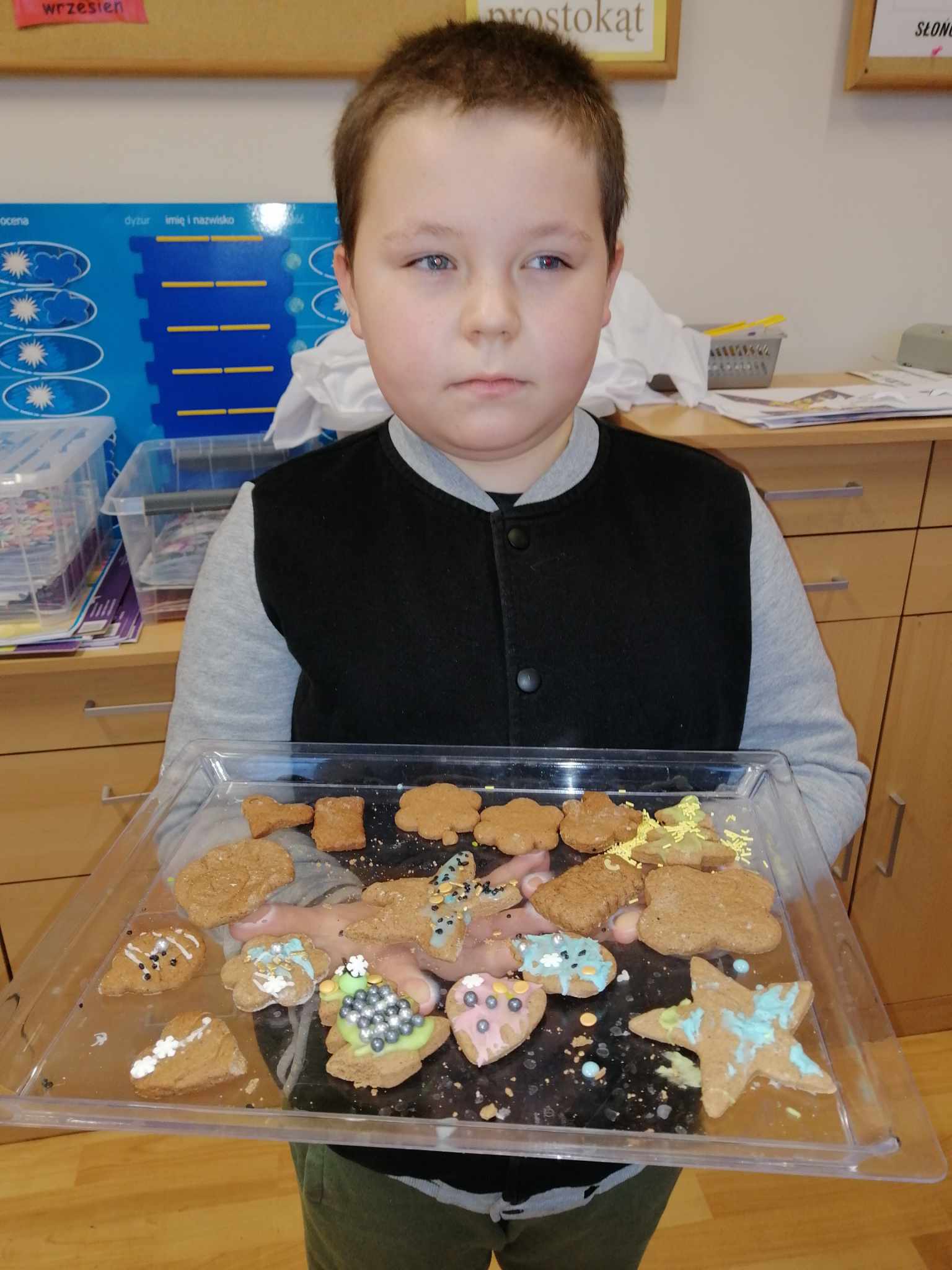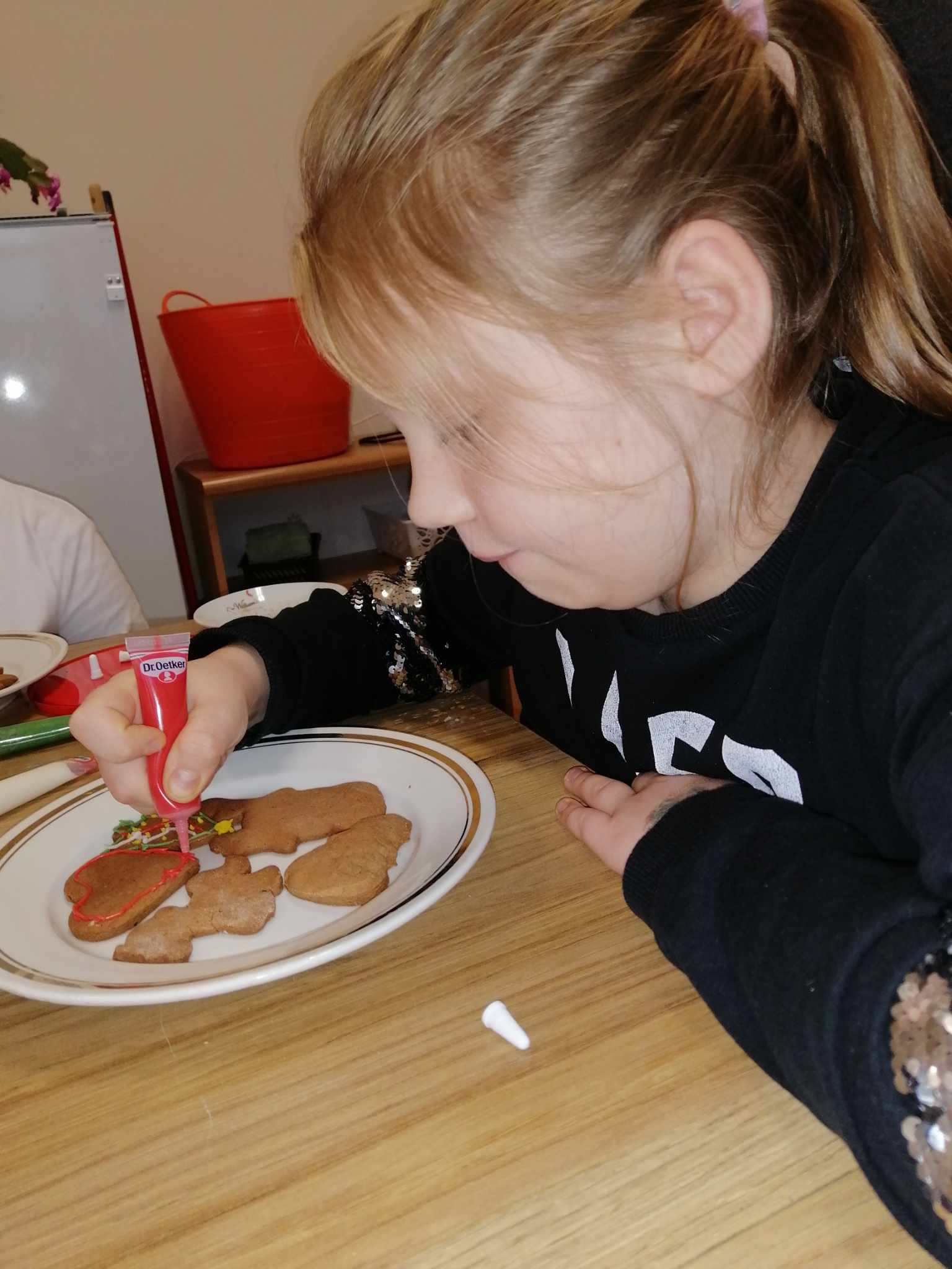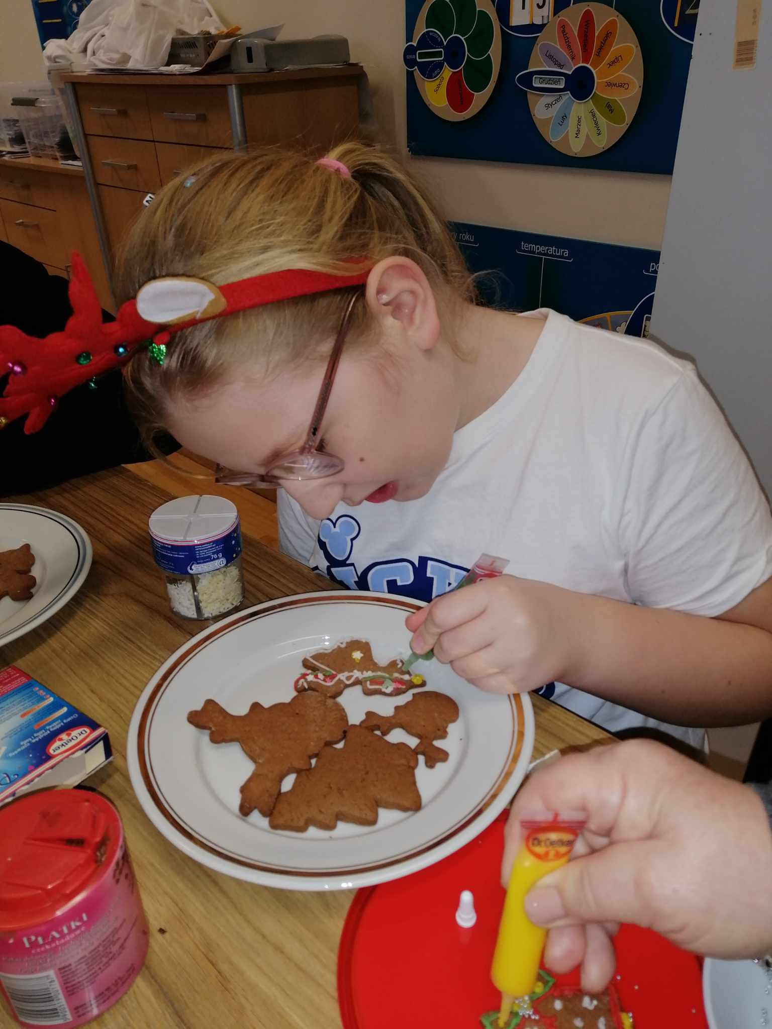 Na piątkowym spotkaniu klas SP powstały prawdziwe dzieła sztuki. Nasi młodzi cukiernicy, wykorzystując kolorowe ozdoby i lukry, dekorowali samodzielnie upieczone pierniczki, wykazując się pomysłowością i kreatywnością.  Pięknie udekorowane pierniki, czekają już na Jasełka i Wigilię.
