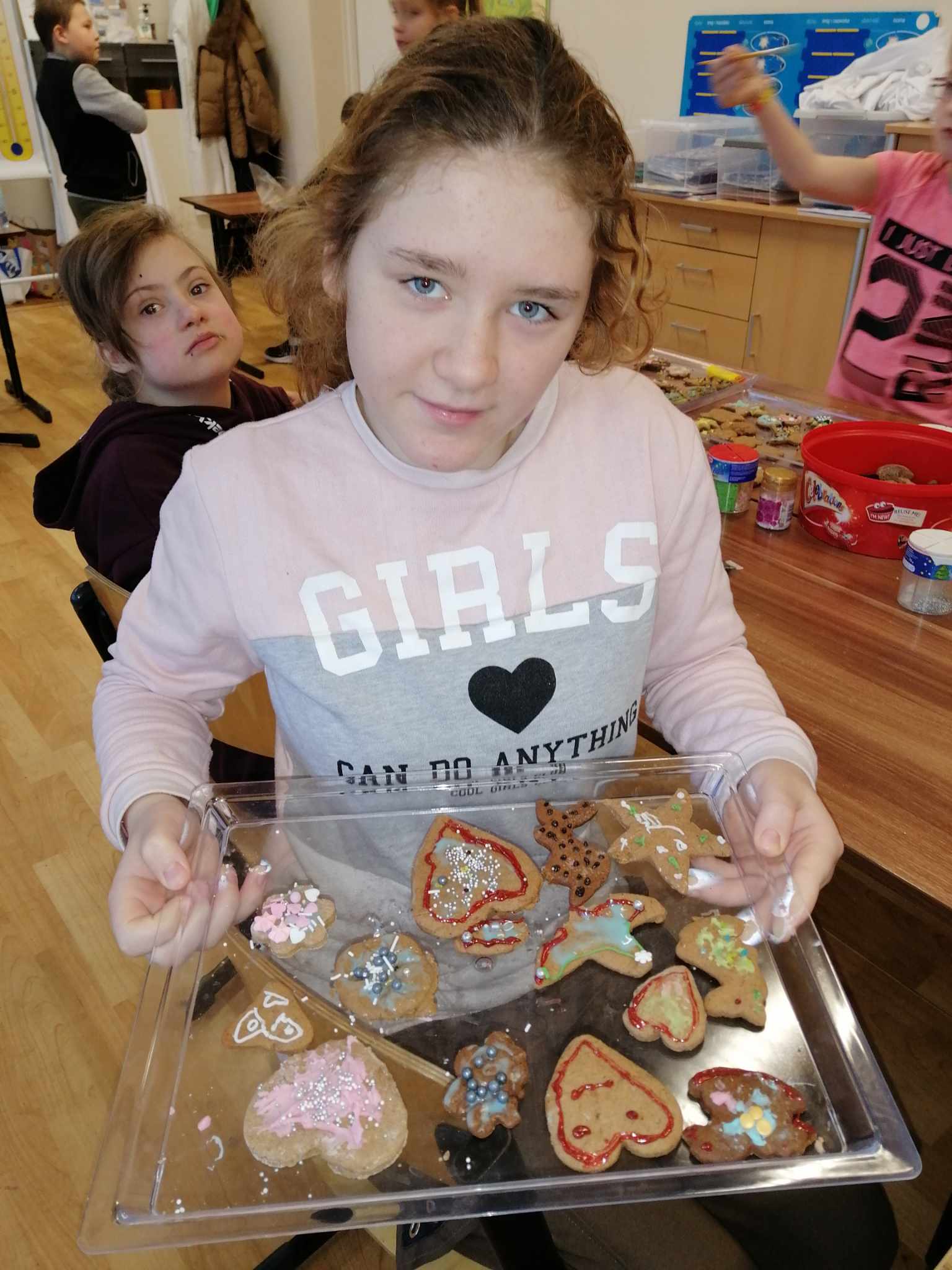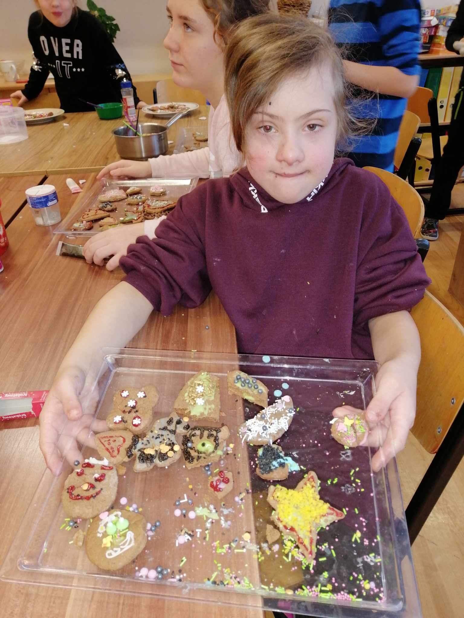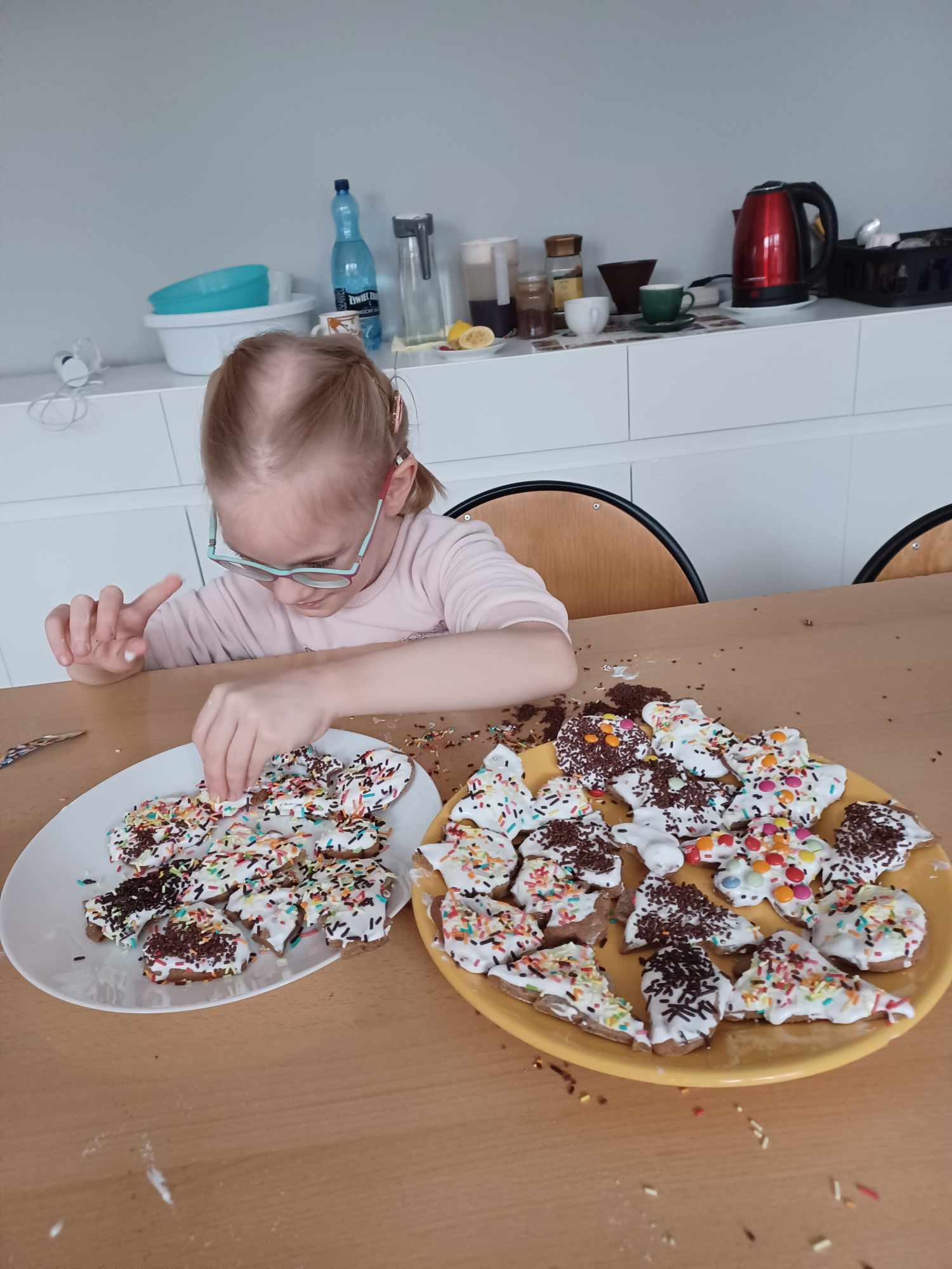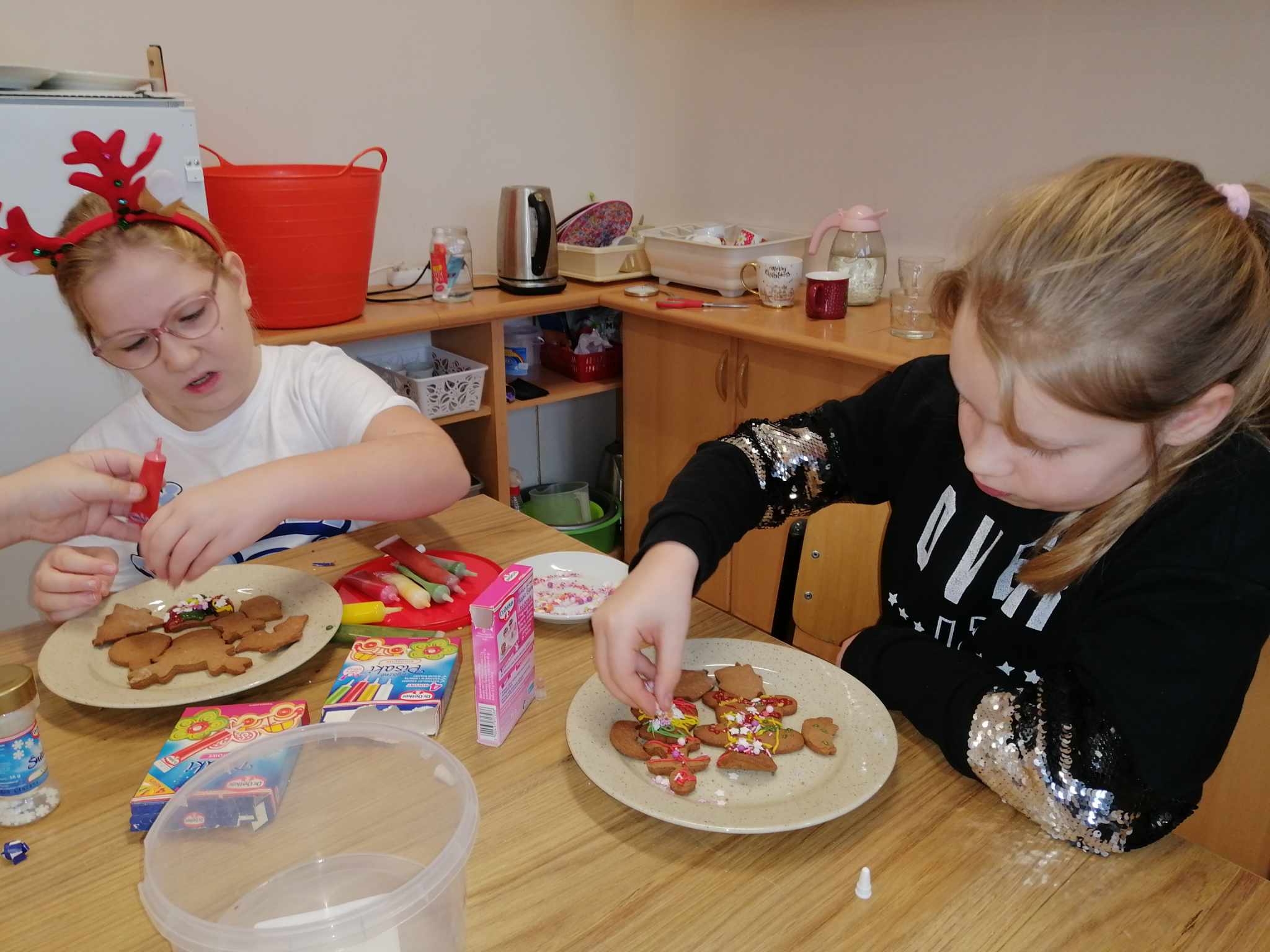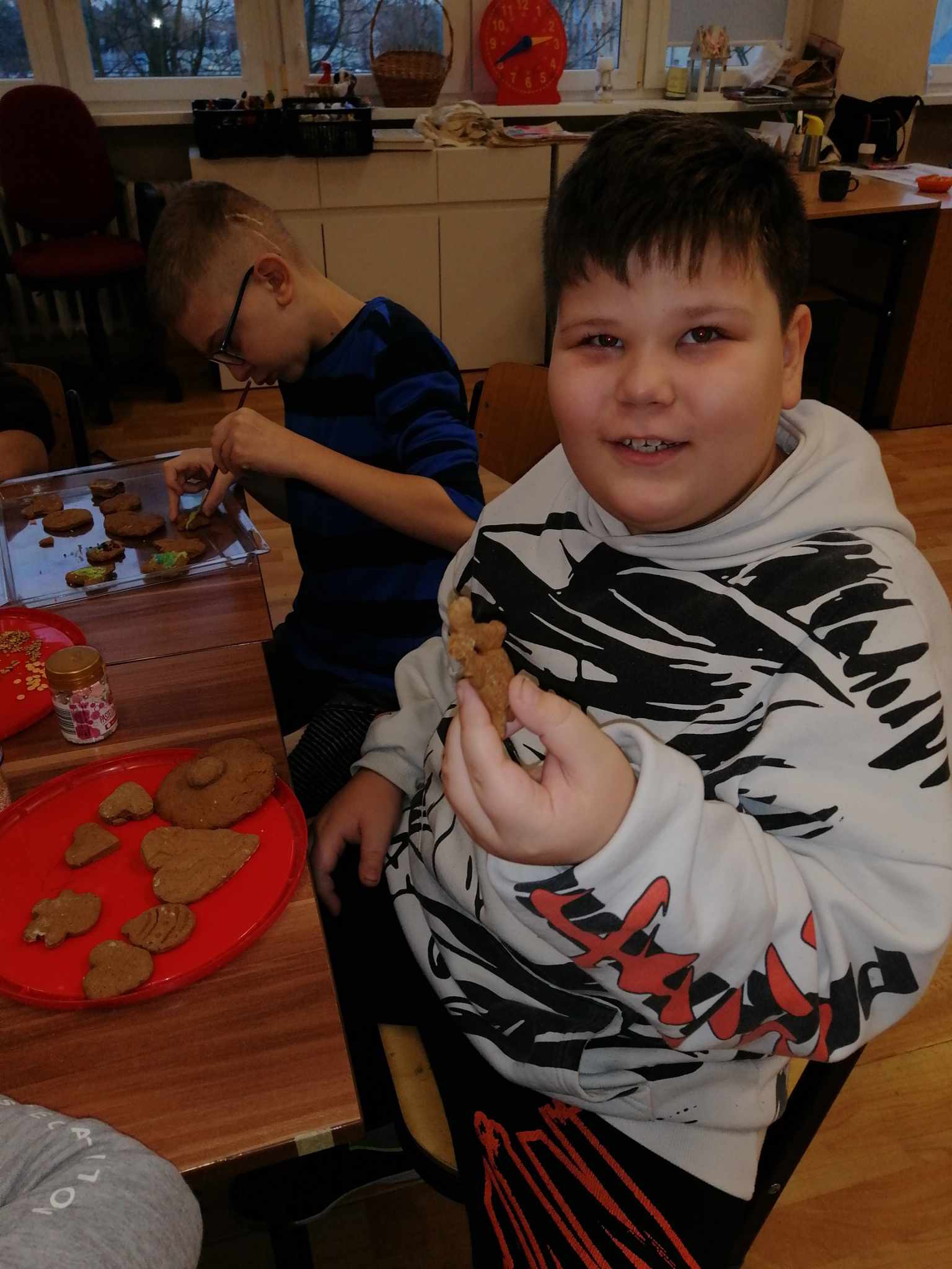 Na piątkowym spotkaniu klas SP powstały prawdziwe dzieła sztuki. Nasi młodzi cukiernicy, wykorzystując kolorowe ozdoby i lukry, dekorowali samodzielnie upieczone pierniczki, wykazując się pomysłowością i kreatywnością.  Pięknie udekorowane pierniki, czekają już na Jasełka i Wigilię.