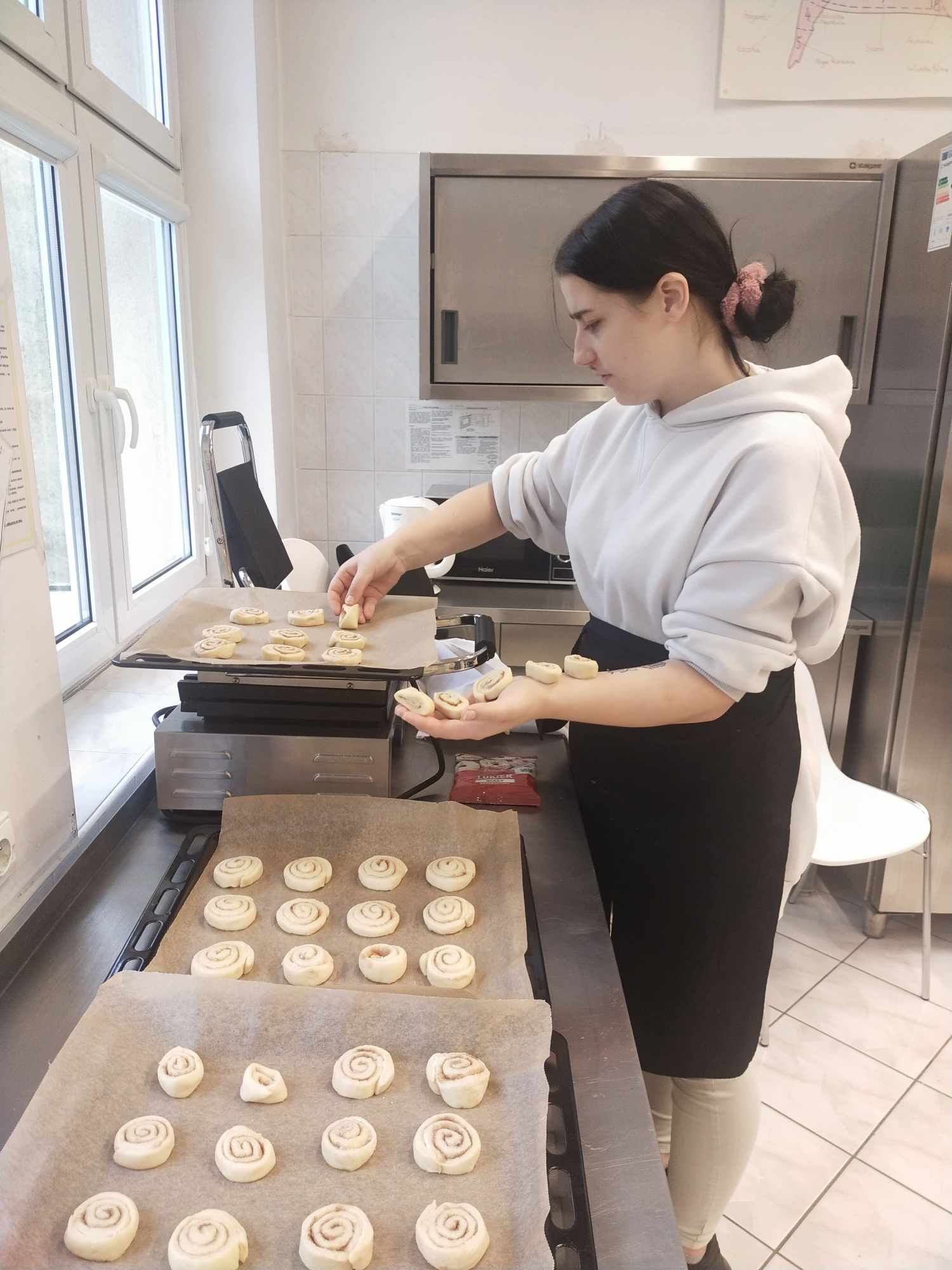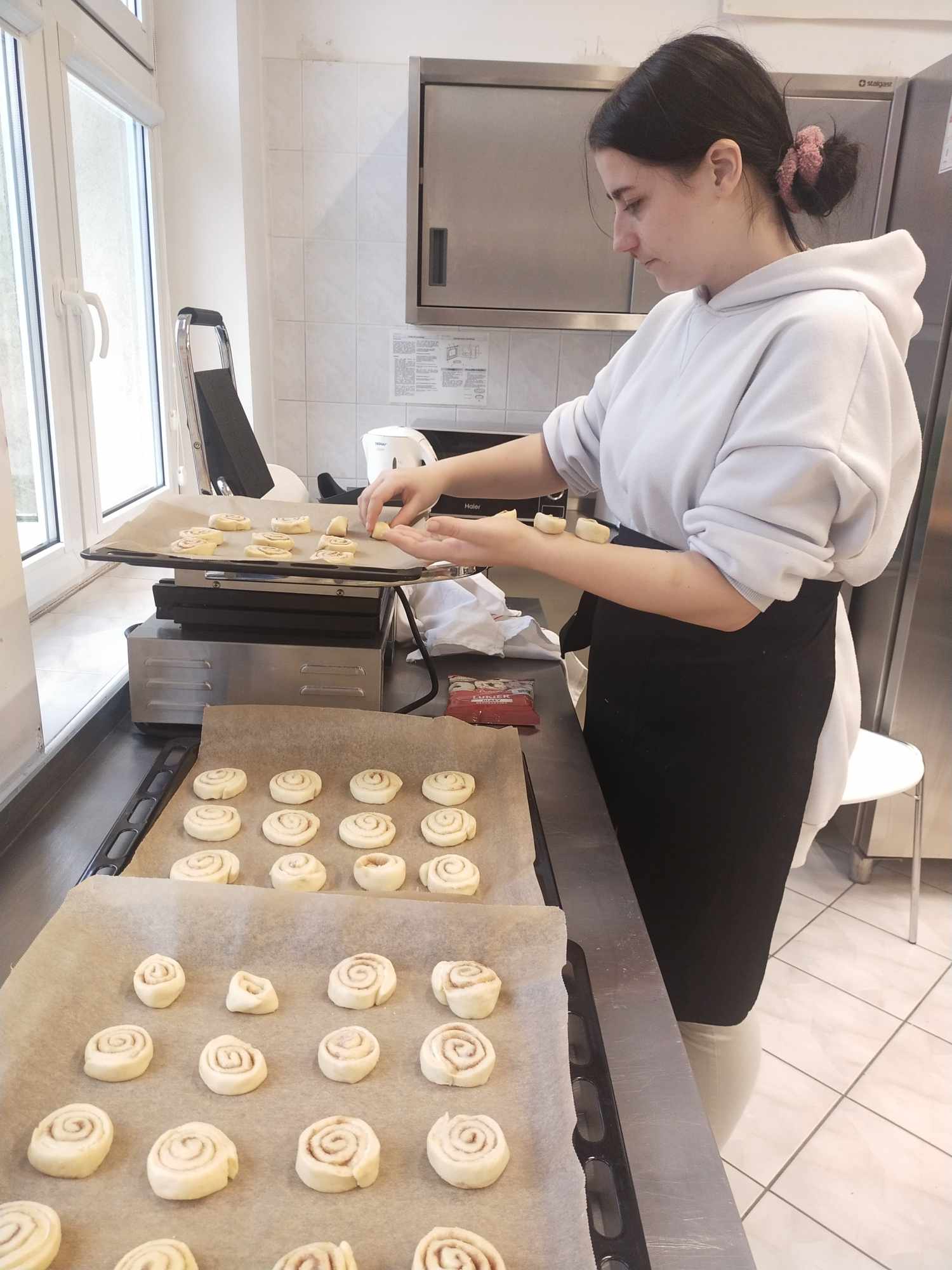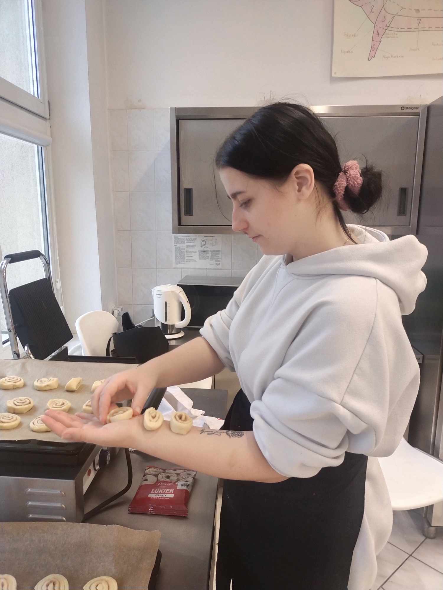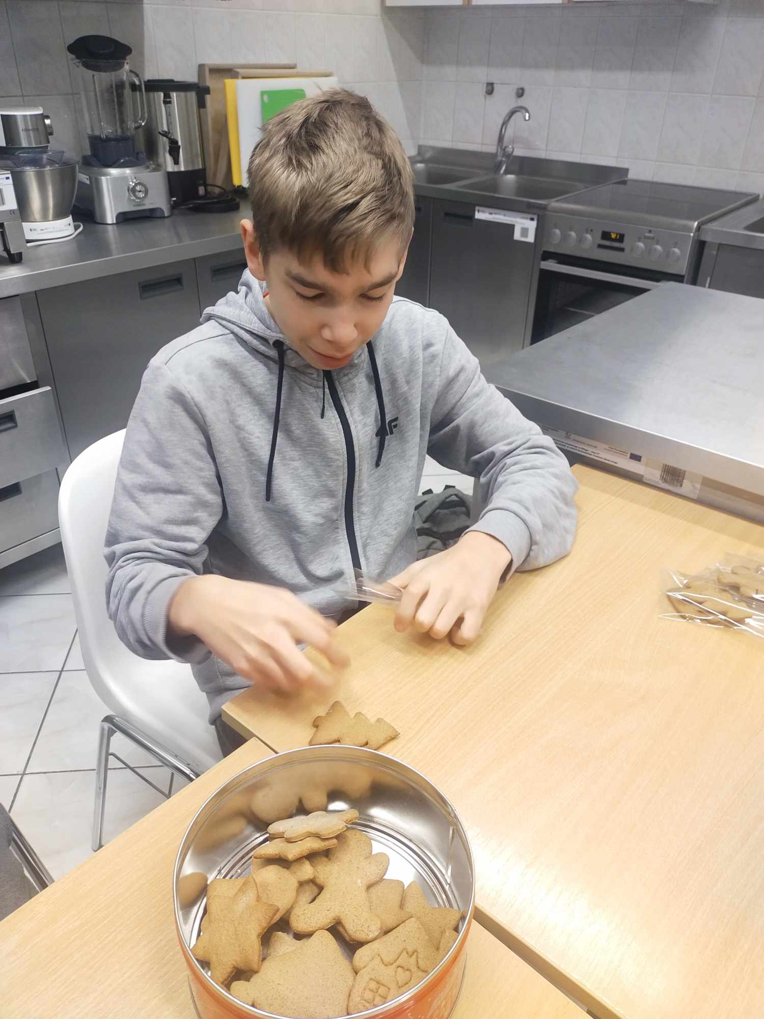 W ramach kontynuacji przygotowań pierniczkowych na jasełka szkolne, uczniowie klas 2a BSI i 3b BSI z wielkim zapałem przystąpili do pakowania pierniczków. Podczas tych zajęć pełnych entuzjazmu, przyszli kucharze przygotowali również wyjątkowe cynamonki, które z wielkim apetytem degustowali po zakończeniu prac.