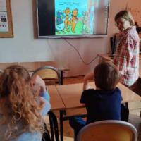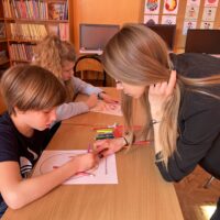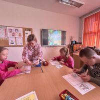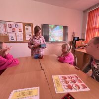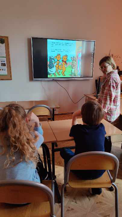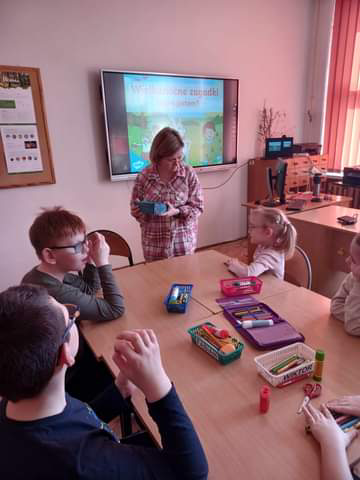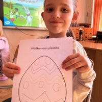 Na początku lekcji  zajęć uczniowie poznali historię zajączka wielkanocnego, który nagle znalazł się w opałach. Nie mógł bowiem przygotować tradycyjnych świątecznych pisanek, co mogło zagrozić uroczystościom. Przyjaciele zajączka nie mogli mu pomóc, ale na szczęście inne zwierzęta z lasu, w tym lisy, gęsi i borsuki, zjednoczyły się, aby wspomóc naszego małego bohatera. Dzięki wspólnym wysiłkom udało się uratować Wielkanoc, a zajączek zyskał nowych przyjaciół. Po przyswojeniu tej pouczającej historii, Małych Agentów czekało kolejne wyzwanie. Zajączek ukrył w bibliotece szereg zadań w świątecznych jajkach. Zadania te wymagały od uczniów sprytu, spostrzegawczości oraz logicznego myślenia. Musieli kreślić po śladzie, układać elementy według wzoru, a nawet ułożyć obrazek z puzzli. Na zakończenie, zajączek przygotował dla Małych Agentów kilka zagadek. Były one nie lada wyzwaniem, ale dzielni uczniowie nie dali za wygraną. Z determinacją rozwiązali wszystkie zagadki, odgadując, kim jest bohater każdej z nich. Ich poprawne odpowiedzi umożliwiły otwarcie magicznego pudełka, w którym ukrywały się małe czekoladowe zajączki – słodka nagroda za ich wysiłek i odwagę.