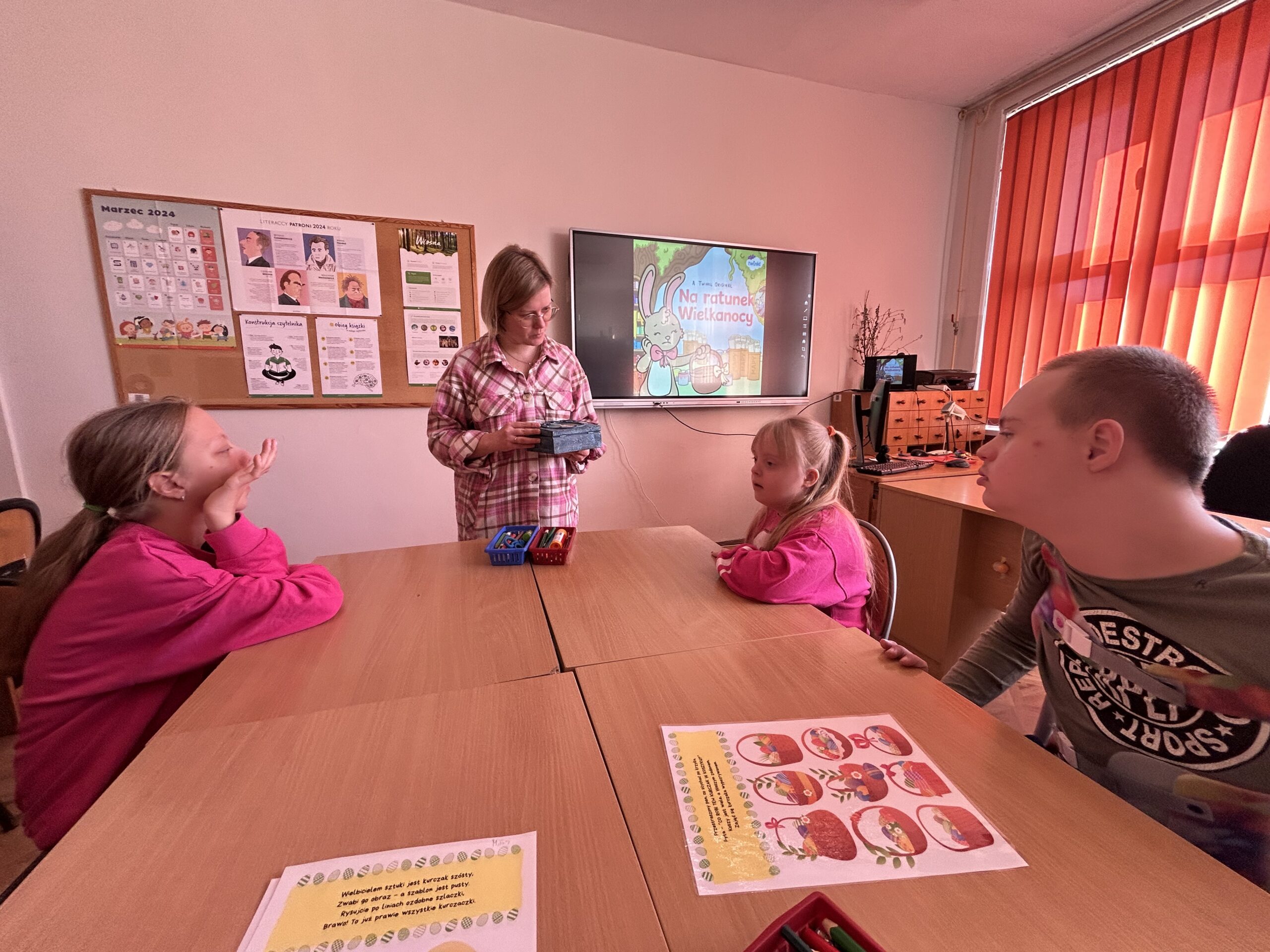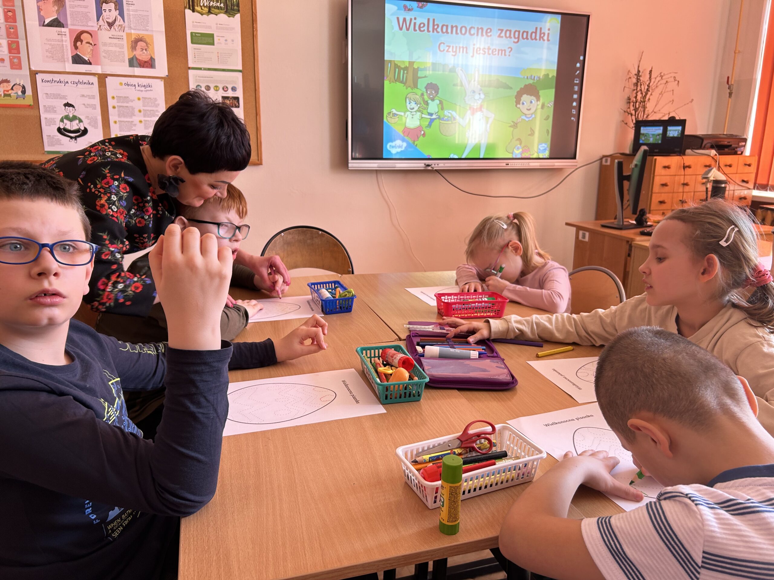 W szkolnej bibliotece zapanowało poruszenie, gdy uczniowie klas 1-3 przystąpili do kolejnych zadań z cyklu „Tajna Misja Małych Agentów”. Tym razem ich celem było uratowanie Świąt Wielkanocnych.