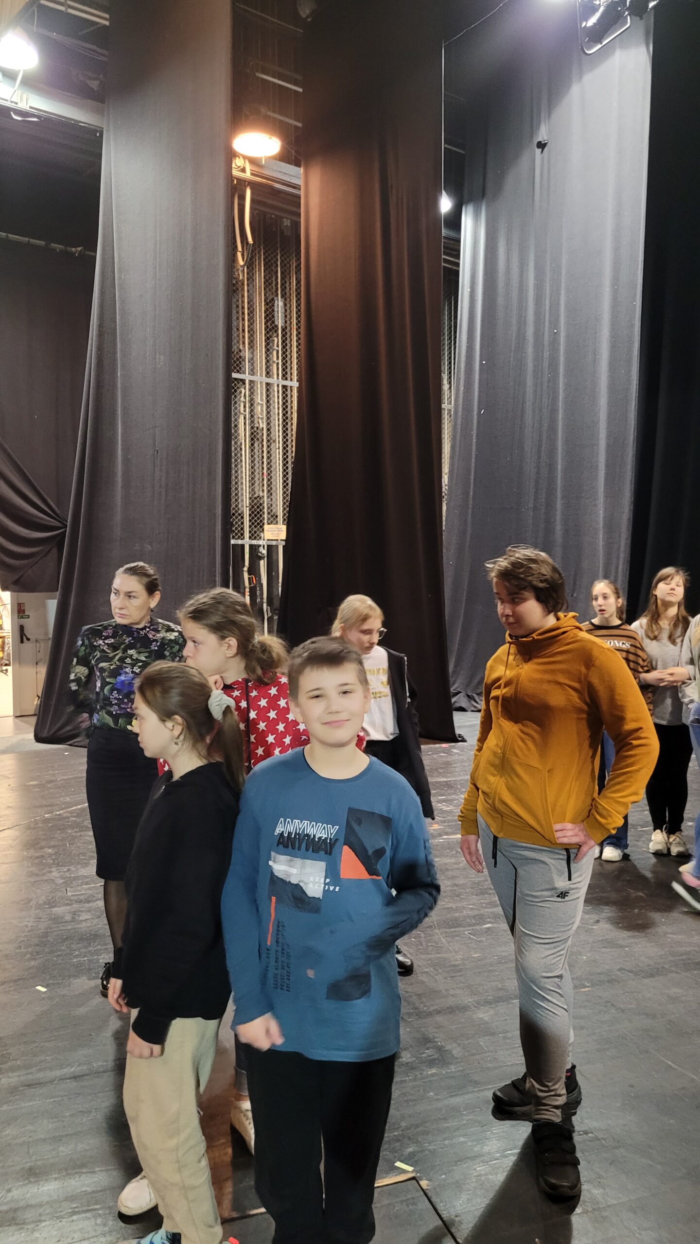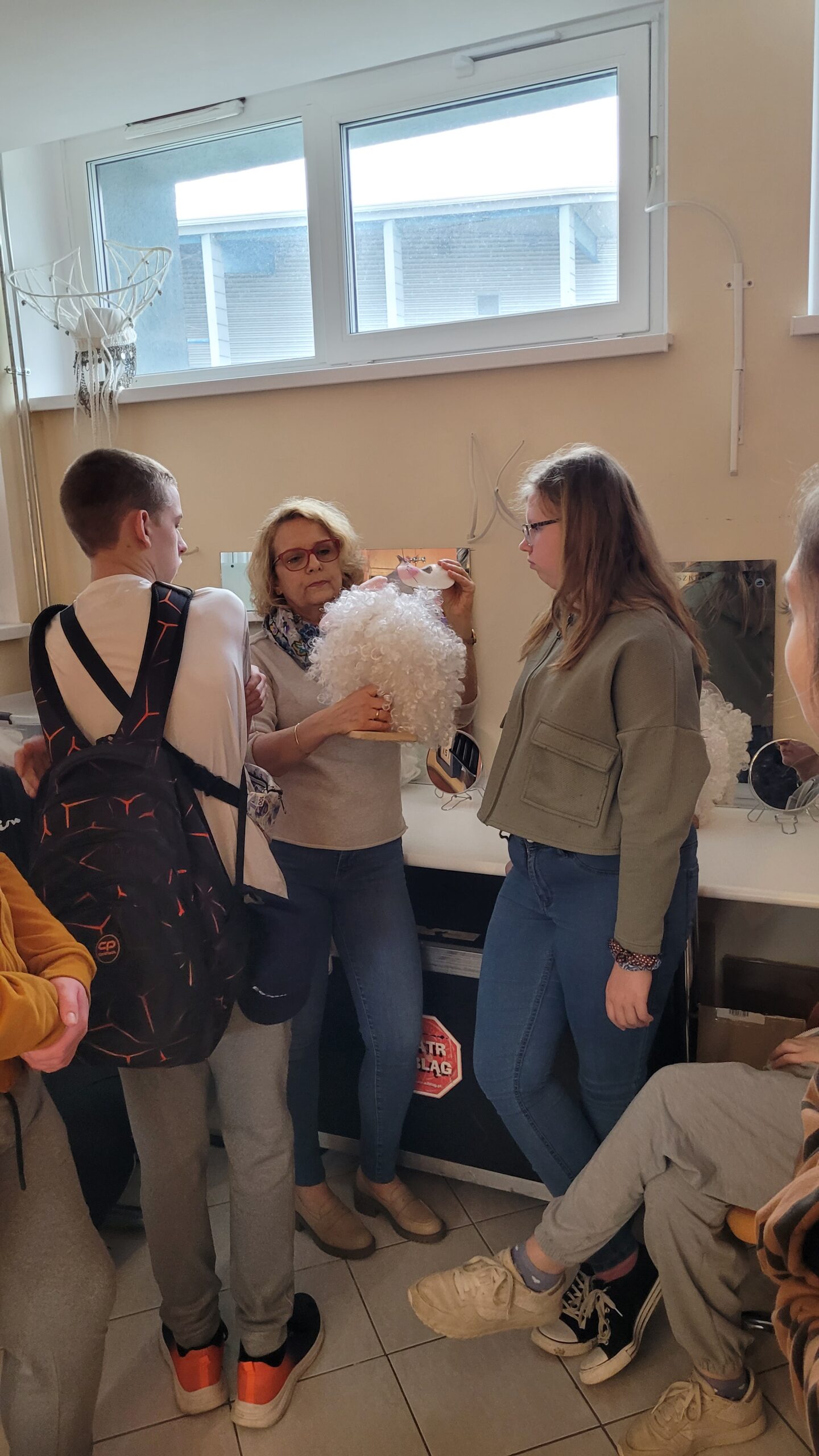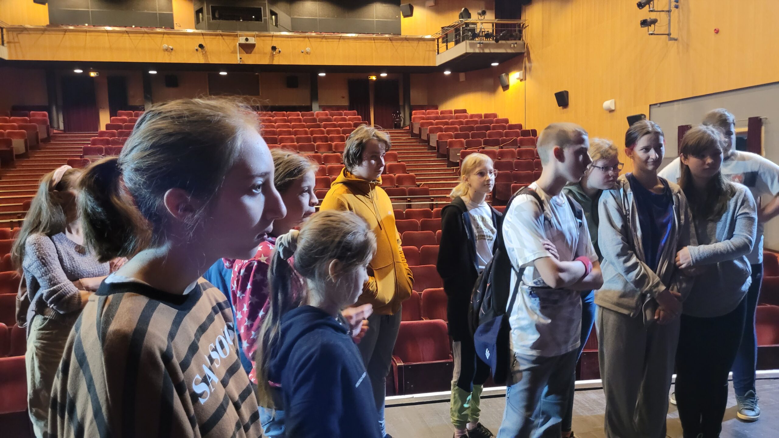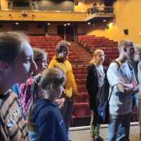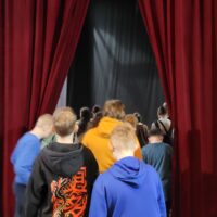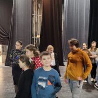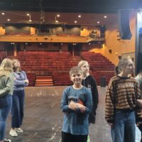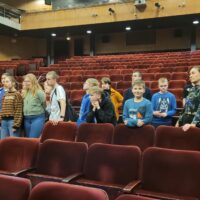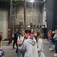 Kontynuując rozpoczętą przed laty przygodę z teatrem – projekt „Teatr bawi, uczy i rozwija”- uczniowie klas: IVc, VIa, VIIb, VIIIc postanowili poznać tajniki pracy ludzi teatru. Aby pozyskać wiedzę u źródeł uczestniczyli w zajęciach teatralno-warsztatowych połączonych ze zwiedzaniem kolejnych pomieszczeń, począwszy od nowo wyremontowanego holu, dużej i małej sceny, widowni, garderoby, charakteryzatorni, rekwizytorni, aż po tzw. „kieszeń”, czyli podręczny magazyn dekoracji.