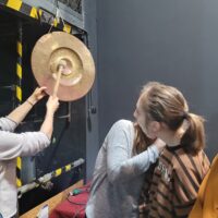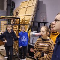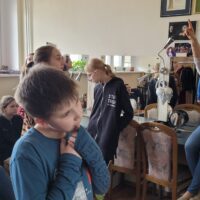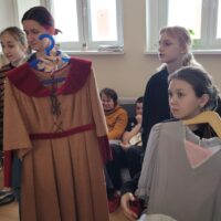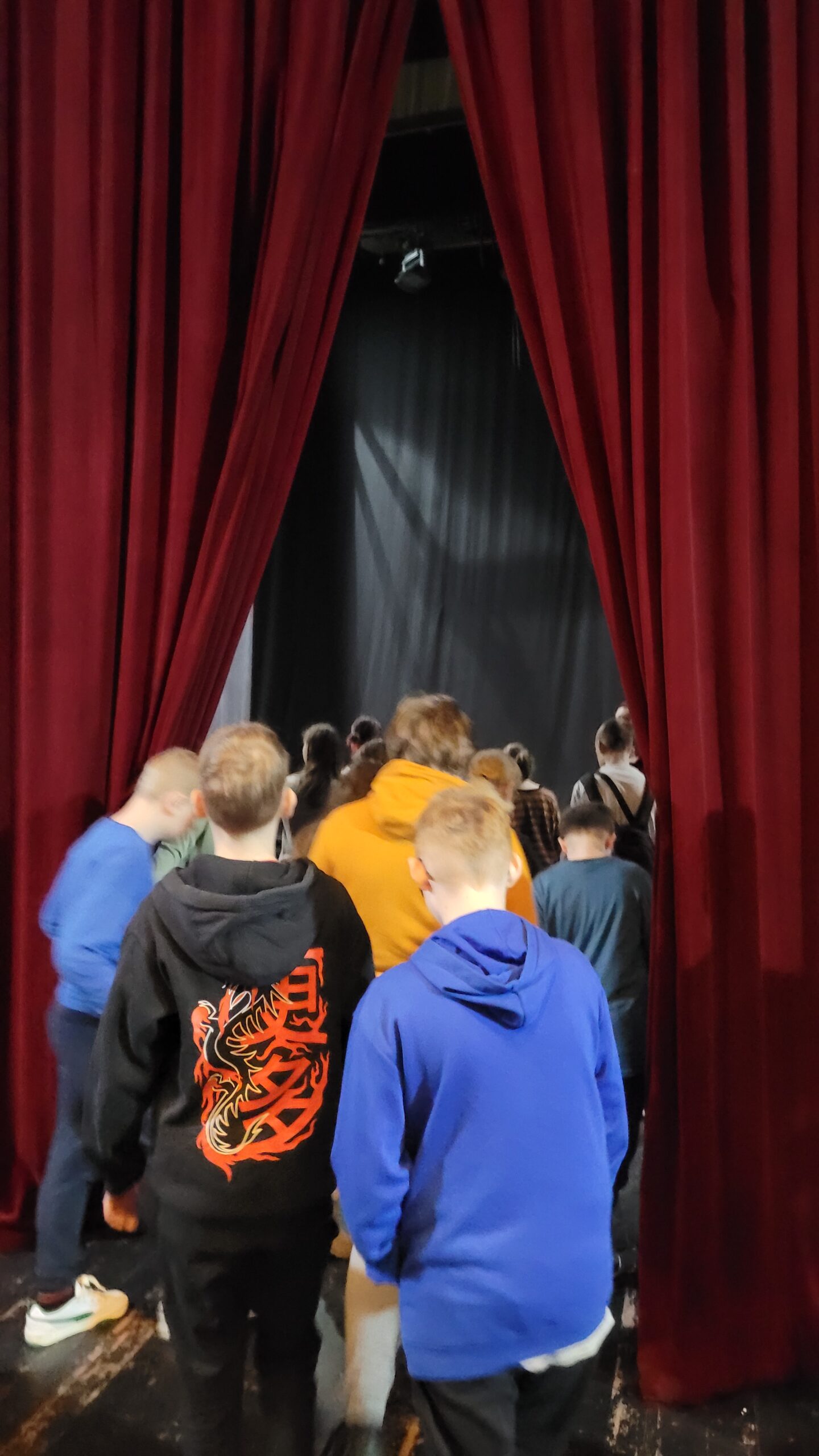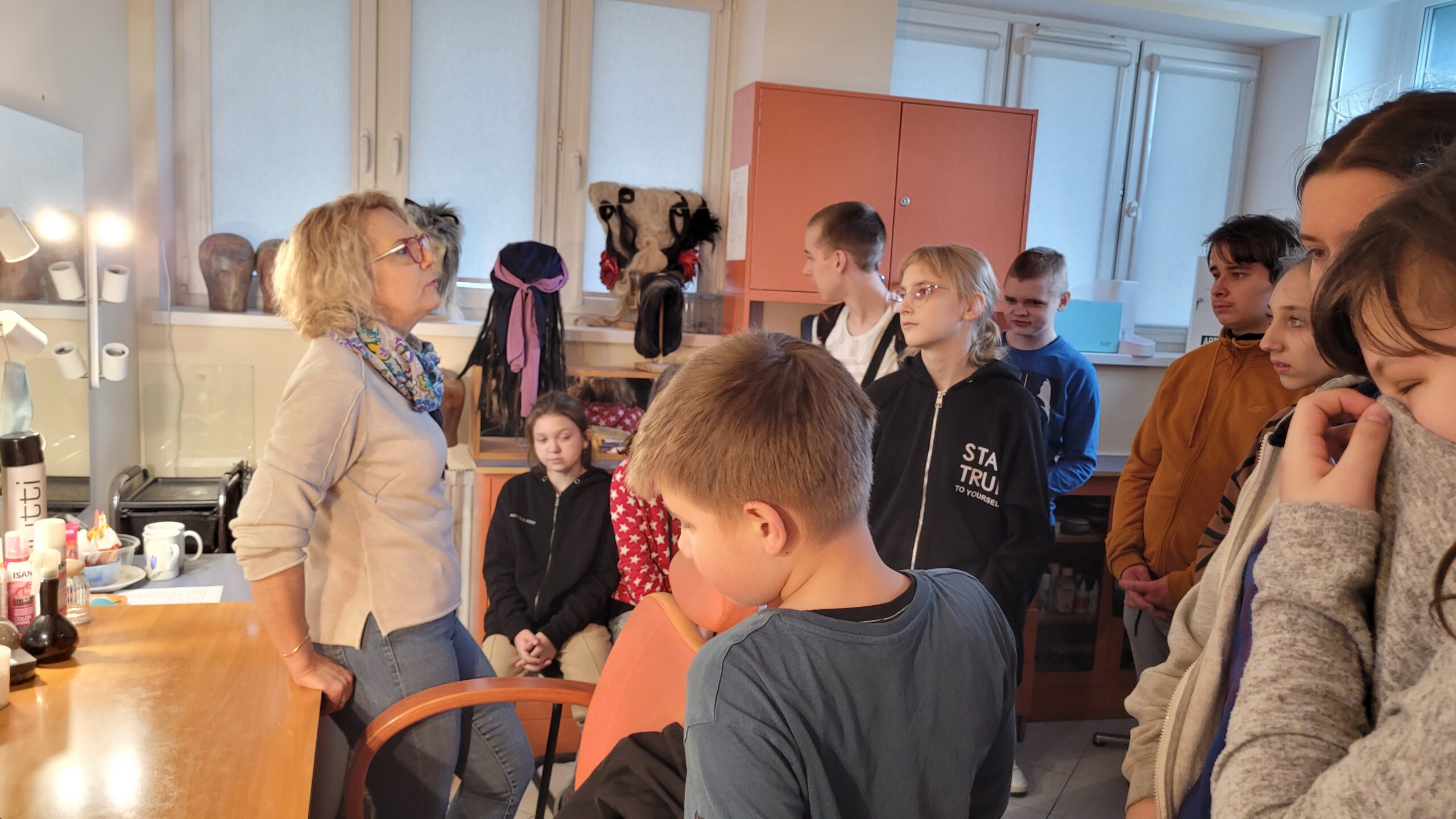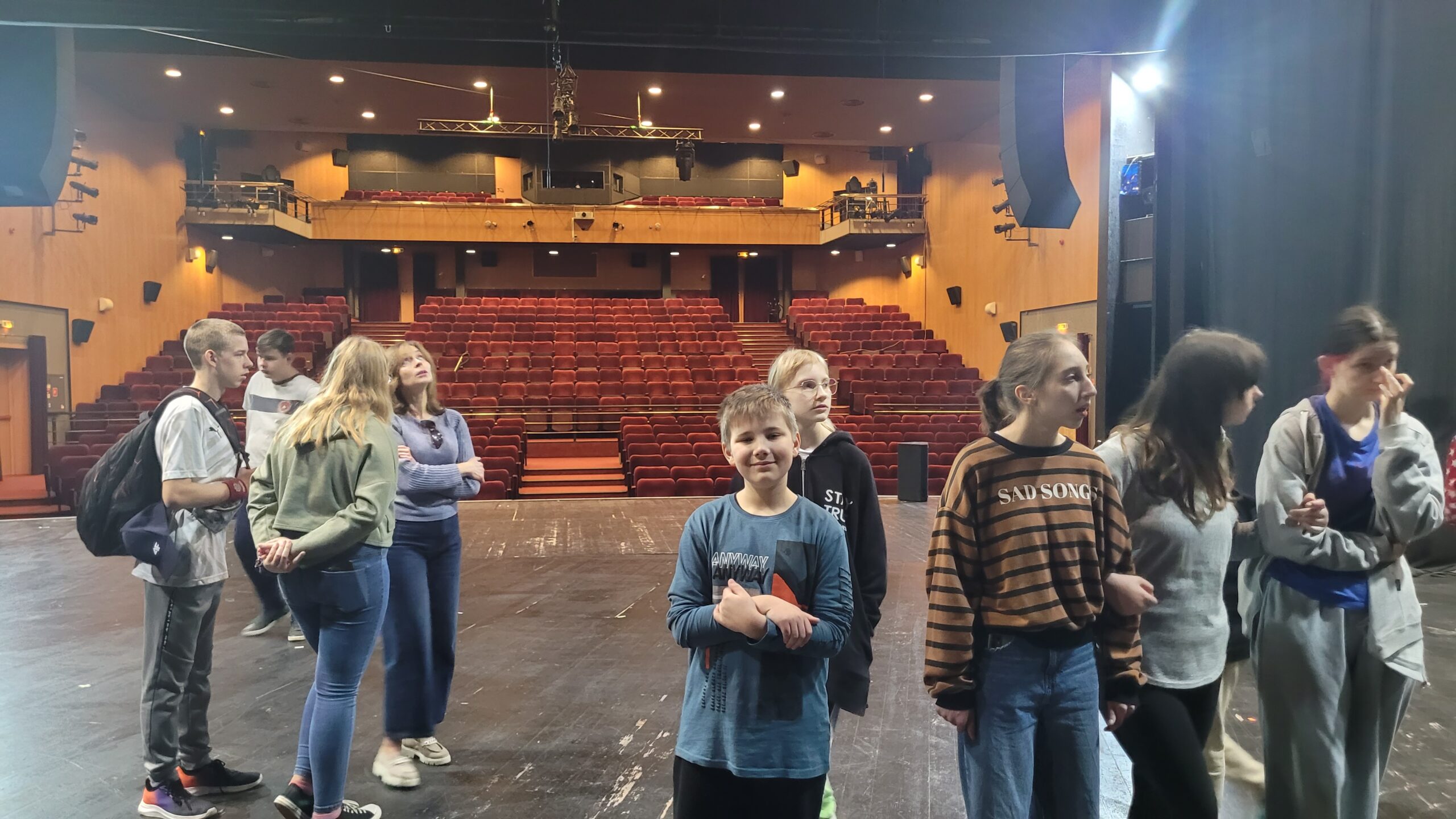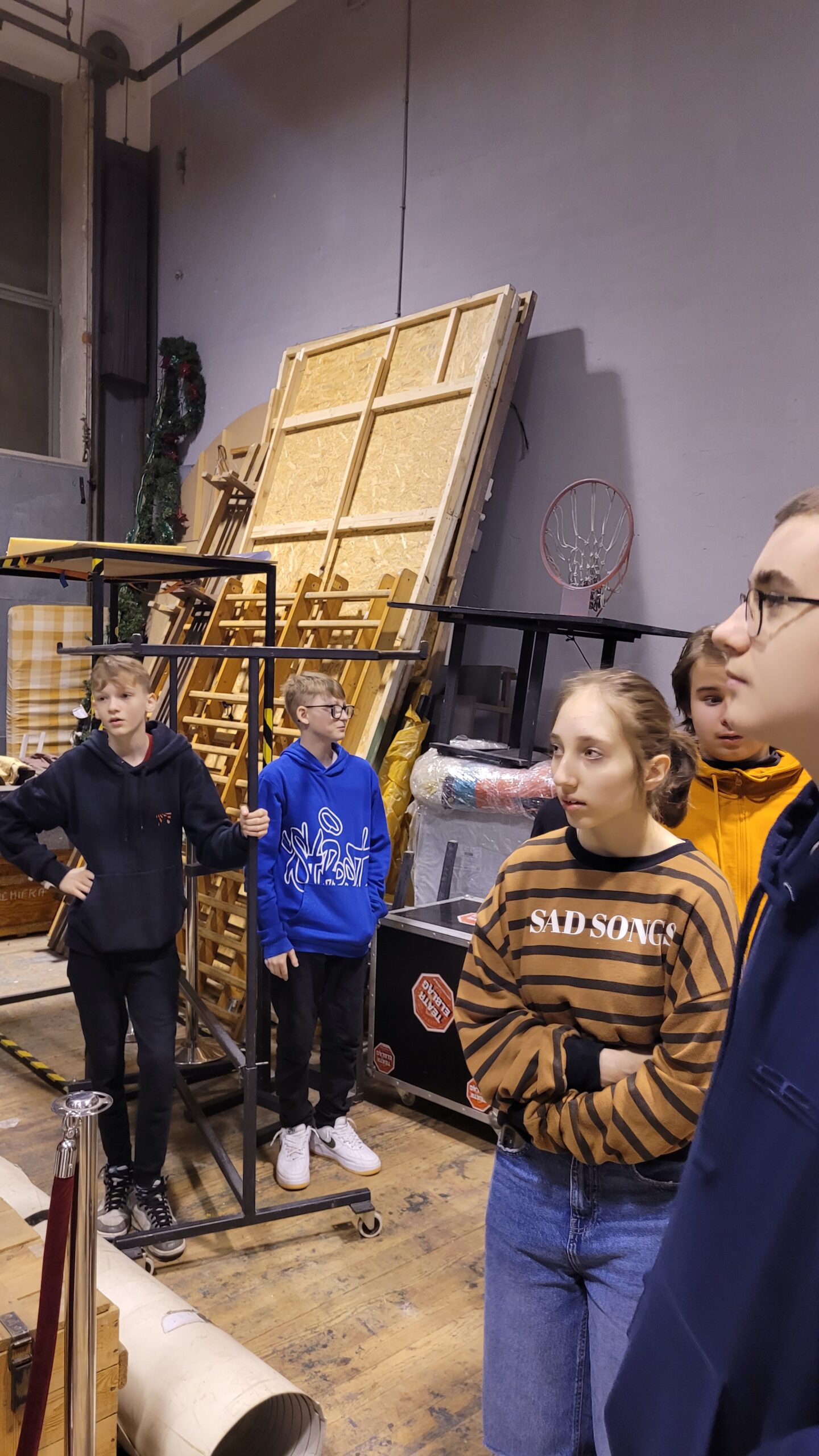 Kontynuując rozpoczętą przed laty przygodę z teatrem – projekt „Teatr bawi, uczy i rozwija”- uczniowie klas: IVc, VIa, VIIb, VIIIc postanowili poznać tajniki pracy ludzi teatru. Aby pozyskać wiedzę u źródeł uczestniczyli w zajęciach teatralno-warsztatowych połączonych ze zwiedzaniem kolejnych pomieszczeń, począwszy od nowo wyremontowanego holu, dużej i małej sceny, widowni, garderoby, charakteryzatorni, rekwizytorni, aż po tzw. „kieszeń”, czyli podręczny magazyn dekoracji.