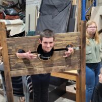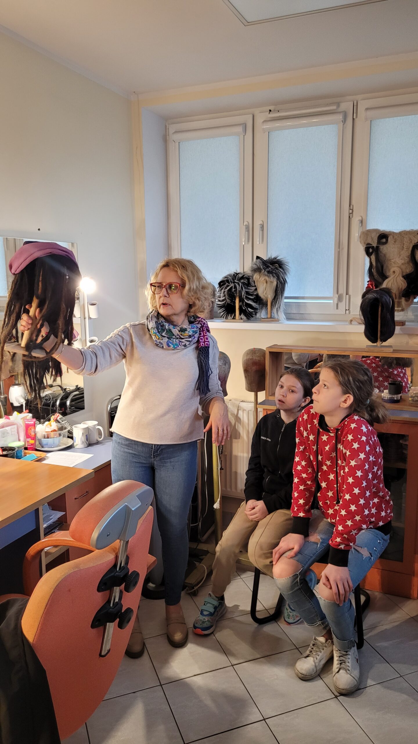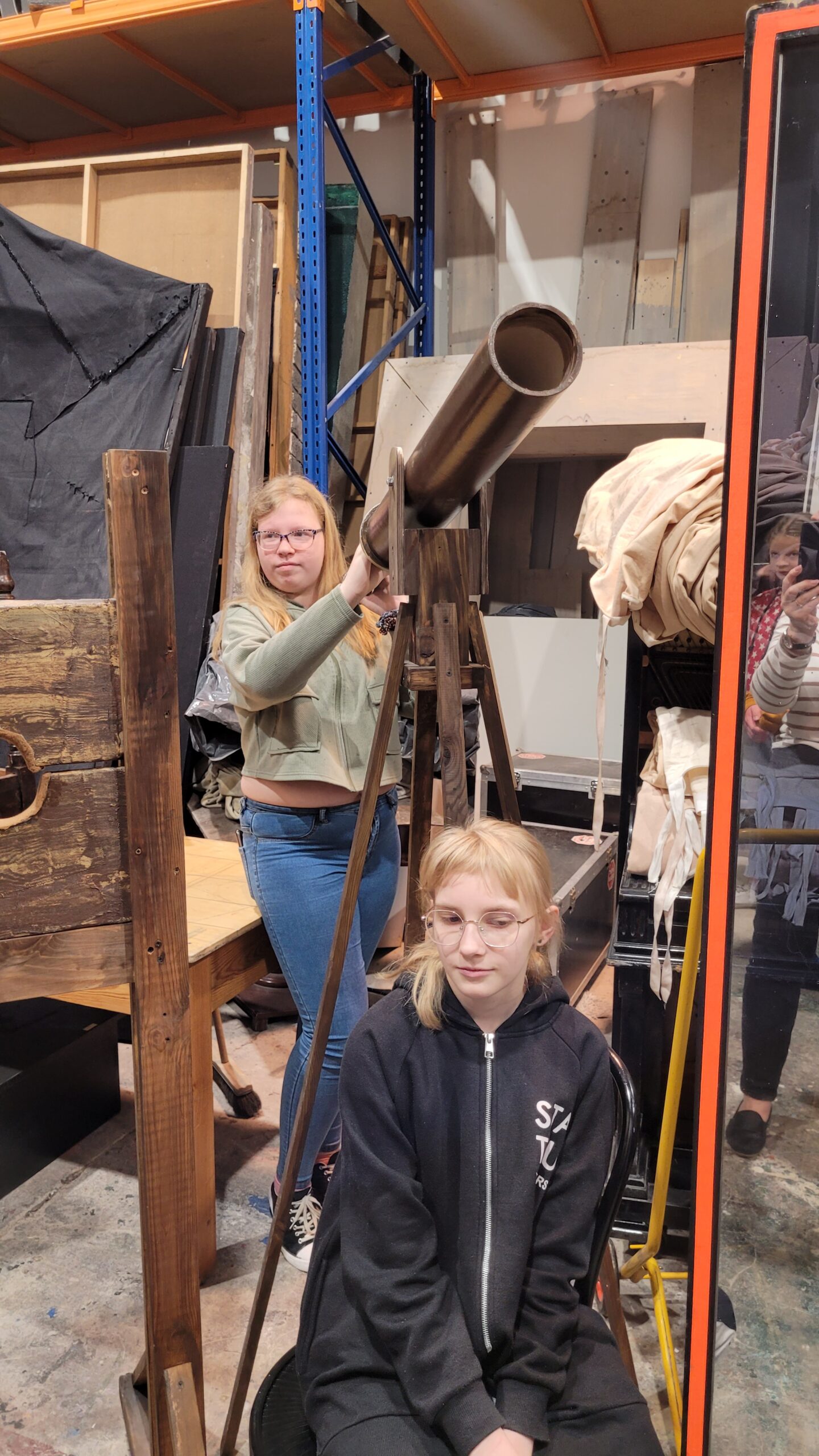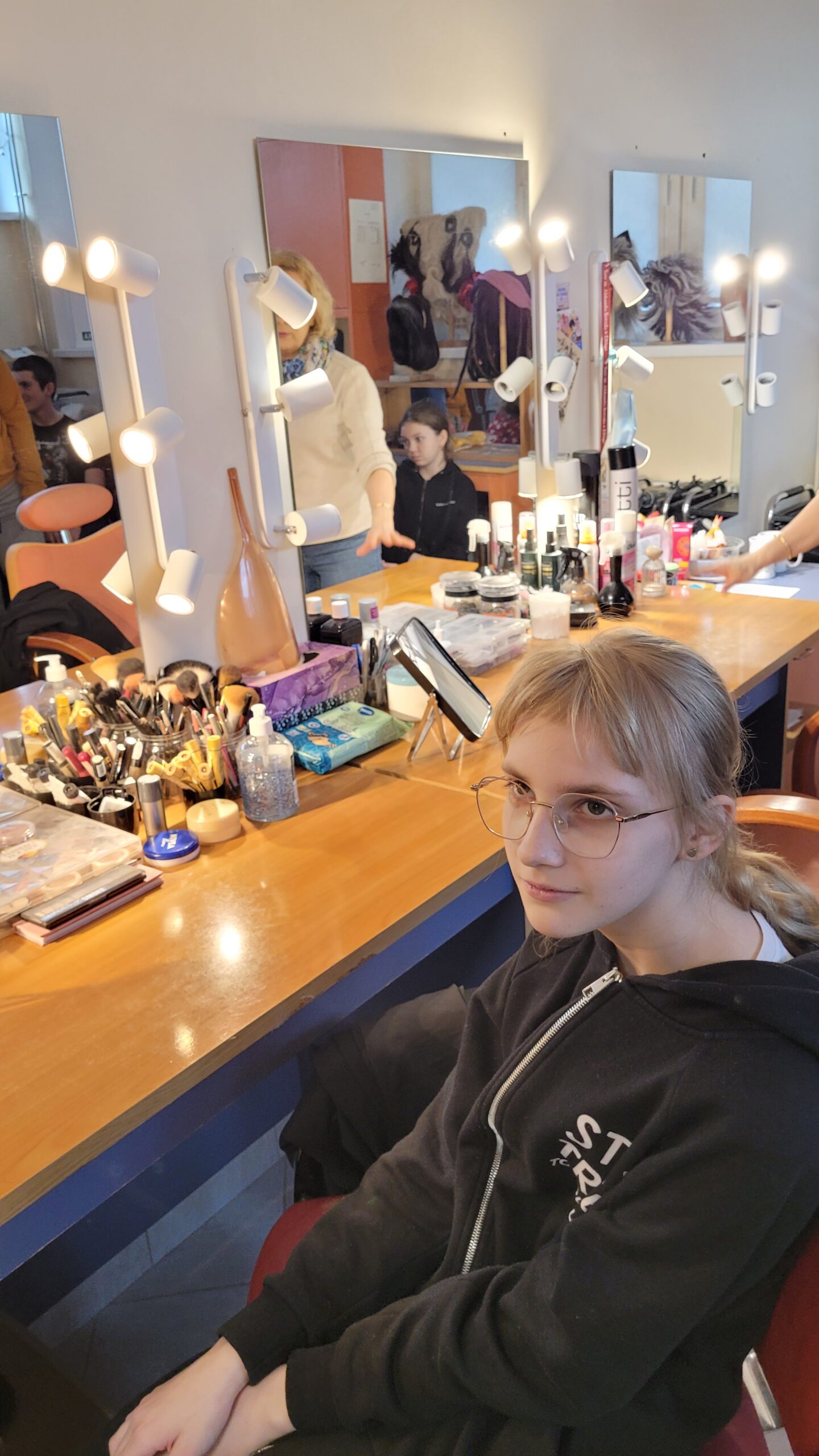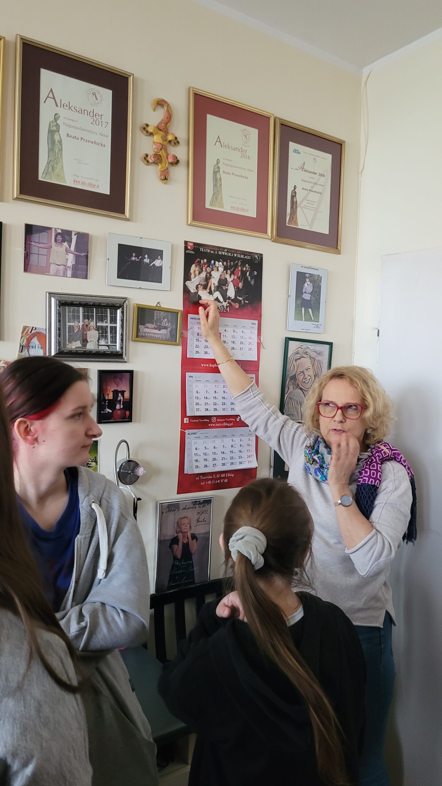 Poznając pozakulisowe pomieszczenia teatru uświadomiliśmy sobie, że teatr to nie jedynie aktor, dźwięk i światło, ale również mozolna praca ludzi innych profesji, np. krawca, stolarza, kosmetyczki, fryzjera, elektryka czy konserwatora sprzętu. Najlepszym tego potwierdzeniem jest fakt, że elbląski teatr zatrudnia 75 pracowników, w tym tylko 22 aktorów. Bywa, że w role tych ostatnich wcielają się, młodsi albo zbliżeni do nas wiekiem, szczęśliwi zwycięzcy teatralnych castingów. Tak więc, kto śmielszy, niech próbuje własnych sił w teatralnej odsłonie….