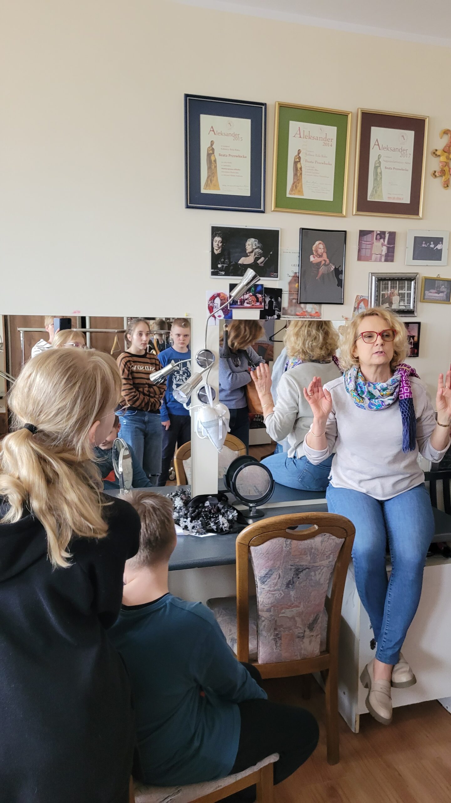 O specyfice pracy w teatrze ciekawie opowiedziała nam aktorka- Pani Beata Przewłocka, którą mieliśmy zaszczyt gościć w szkole w ubiegłym roku w czasie obchodów Dni Teatru. Spotkanie z „żywym aktorem” okazało się źródłem cennych informacji, które dotychczas były nam obce. Dzisiaj już wiemy, co to jest proscenium, orkiestron, jaką rolę pełni operator dźwięku, świateł czy reżyser, od którego przebieg spektaklu zależy. Wśród ludzi teatru najwięcej zaciekawienia wzbudziła rola inspicjenta i suflera, co zrozumiałe, bo ich umiejętności są w szkole w pełni przydatne zwłaszcza, gdy liczymy na pomoc kolegi podczas sprawdzianów i klasówek…