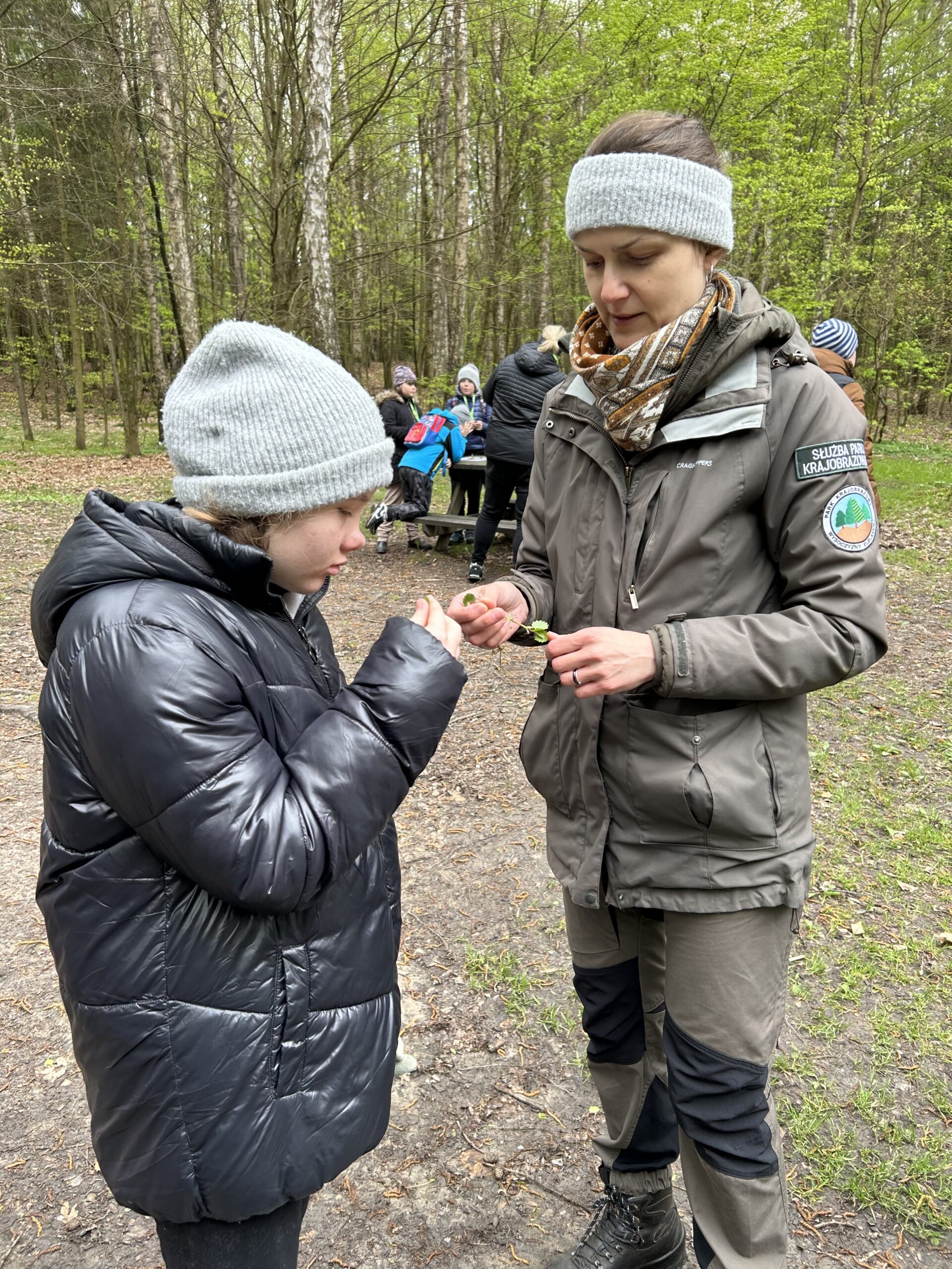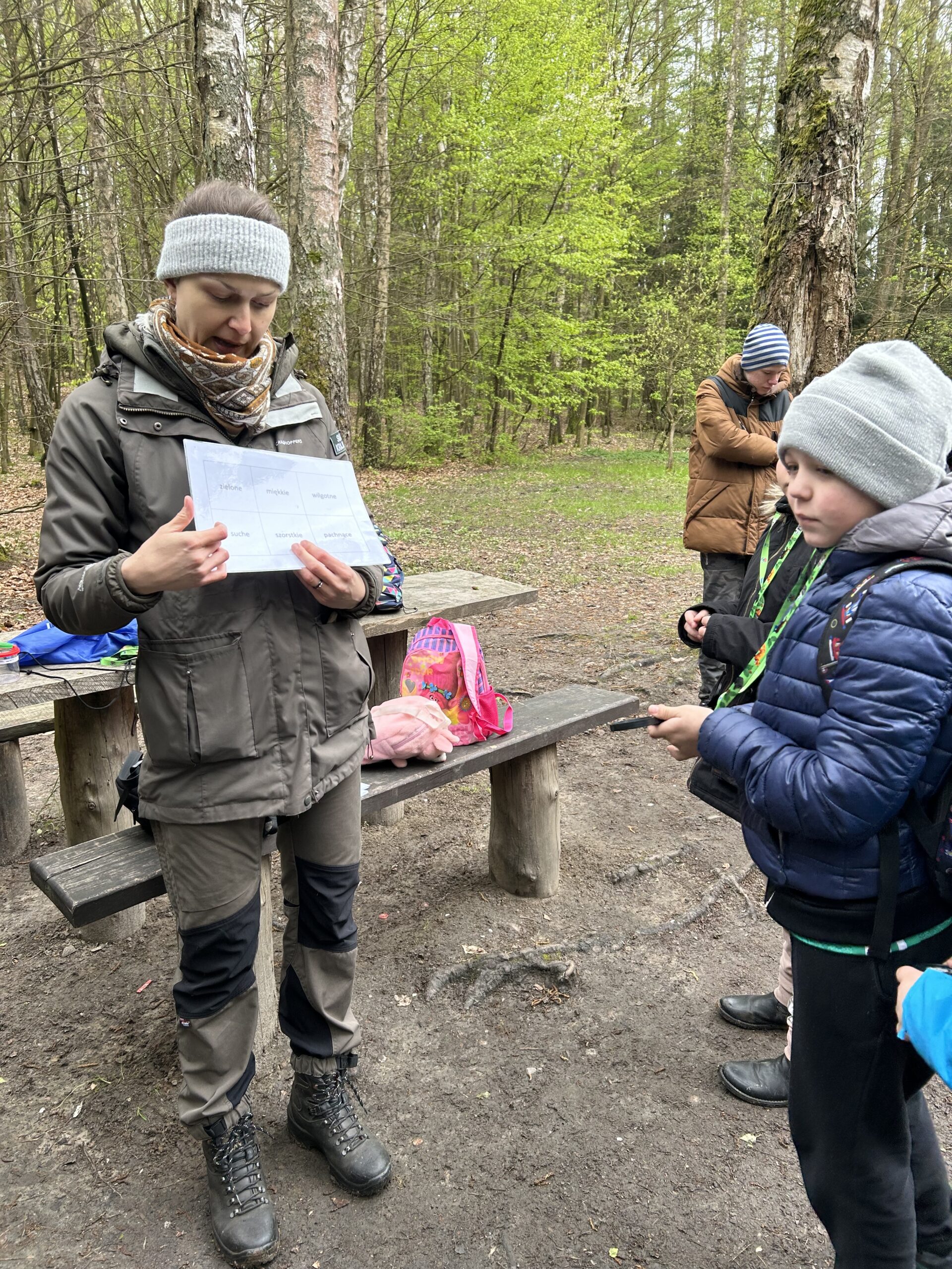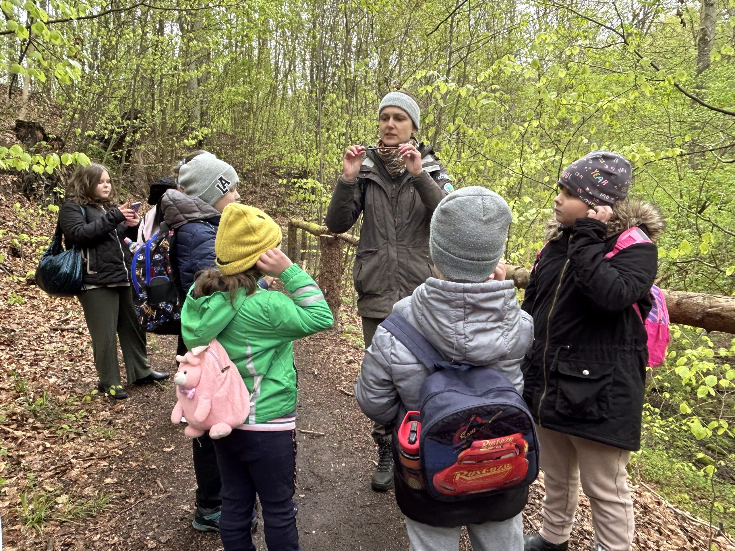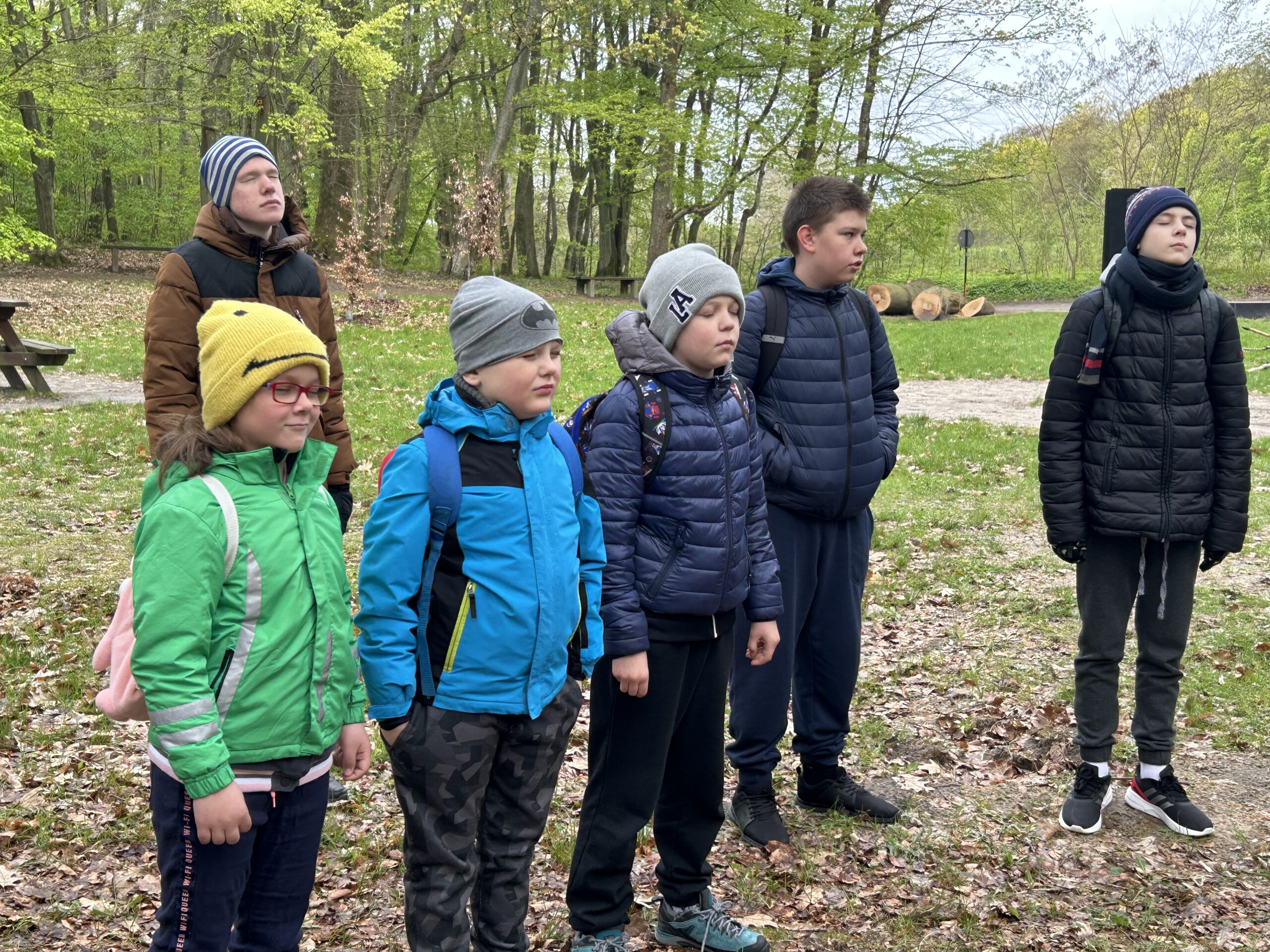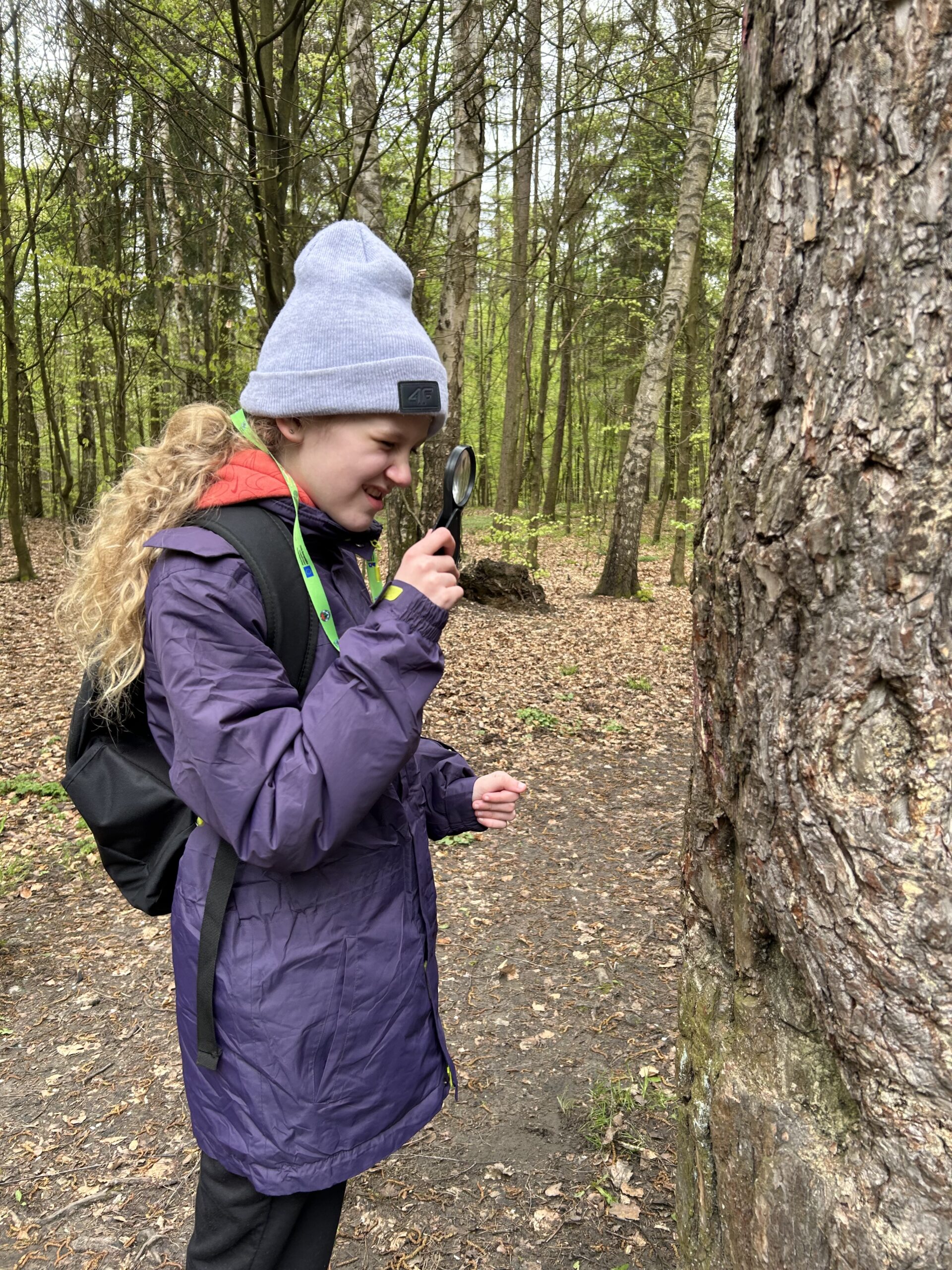 Pani Marta, znawczyni terenu i pasjonatka ochrony przyrody, poprowadziła uczniów przez gąszcz lasu, zwracając uwagę na jego różnorodność. Podczas tej niezwykłej wędrówki, uczniowie mieli okazję doświadczyć lasu we wszystkich możliwych wymiarach, korzystając ze swoich zmysłów. Słuchając śpiewu ptaków, dotykając korzeni drzew, prowadząc uważne obserwacje – każde zmysłowe doświadczenie wprowadzało ich coraz głębiej w świat otaczającej przyrody.