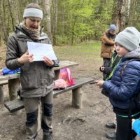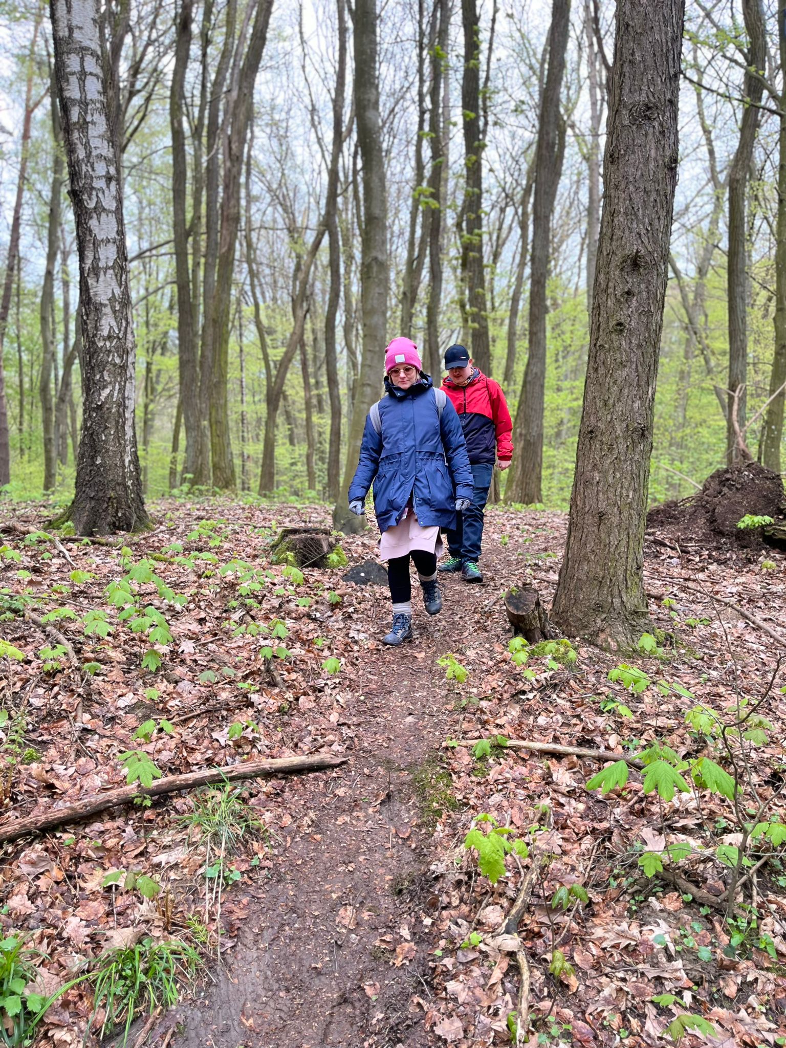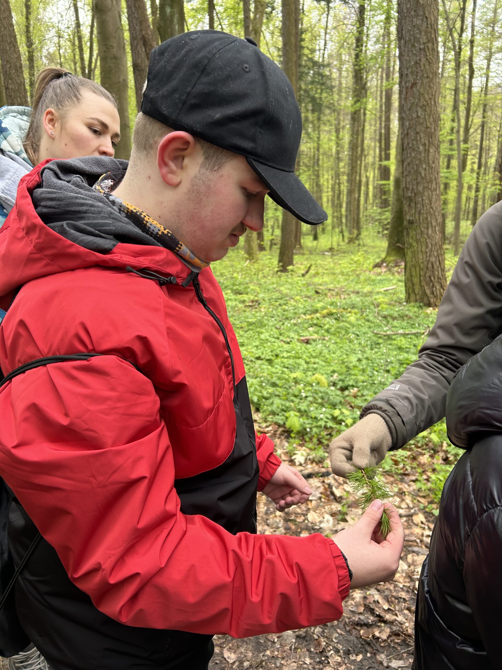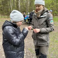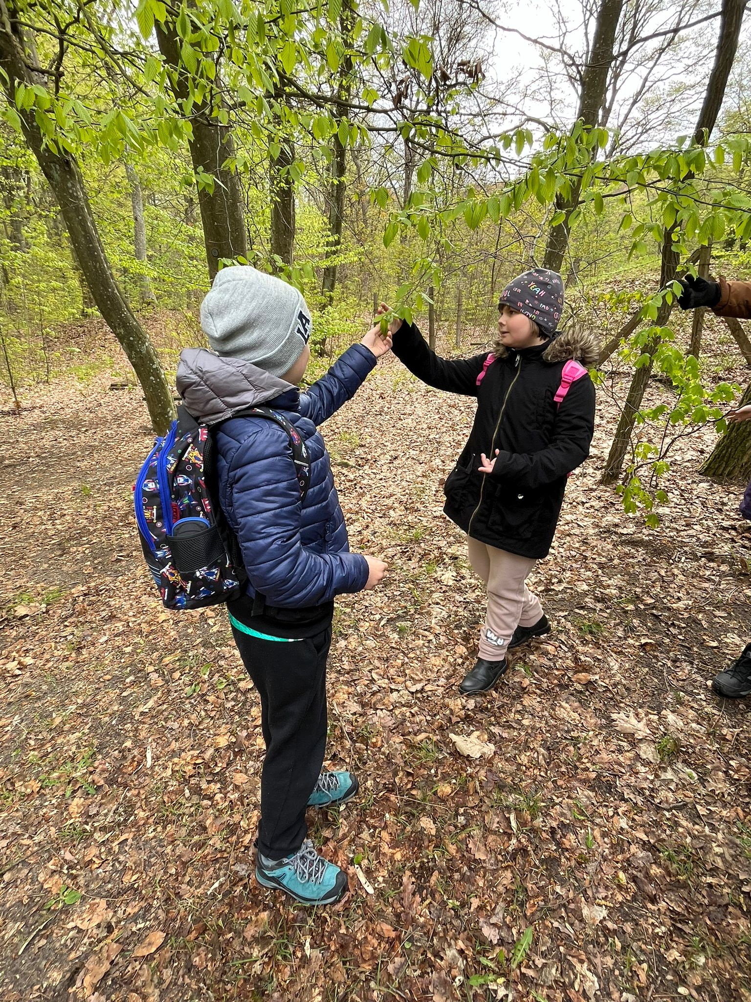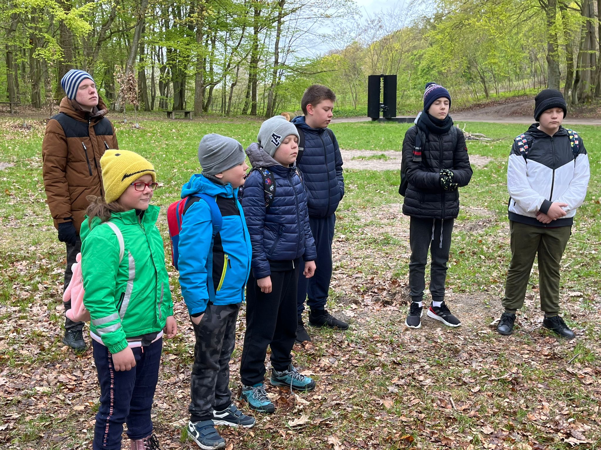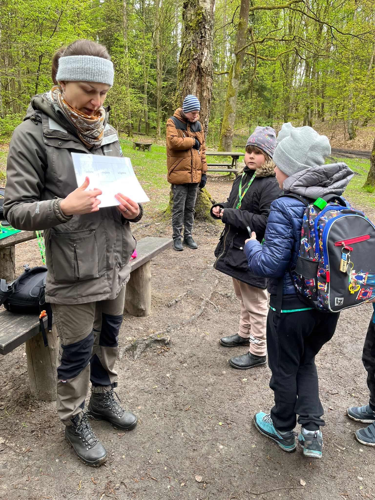 Pani Marta, znawczyni terenu i pasjonatka ochrony przyrody, poprowadziła uczniów przez gąszcz lasu, zwracając uwagę na jego różnorodność. Podczas tej niezwykłej wędrówki, uczniowie mieli okazję doświadczyć lasu we wszystkich możliwych wymiarach, korzystając ze swoich zmysłów. Słuchając śpiewu ptaków, dotykając korzeni drzew, prowadząc uważne obserwacje – każde zmysłowe doświadczenie wprowadzało ich coraz głębiej w świat otaczającej przyrody.