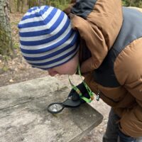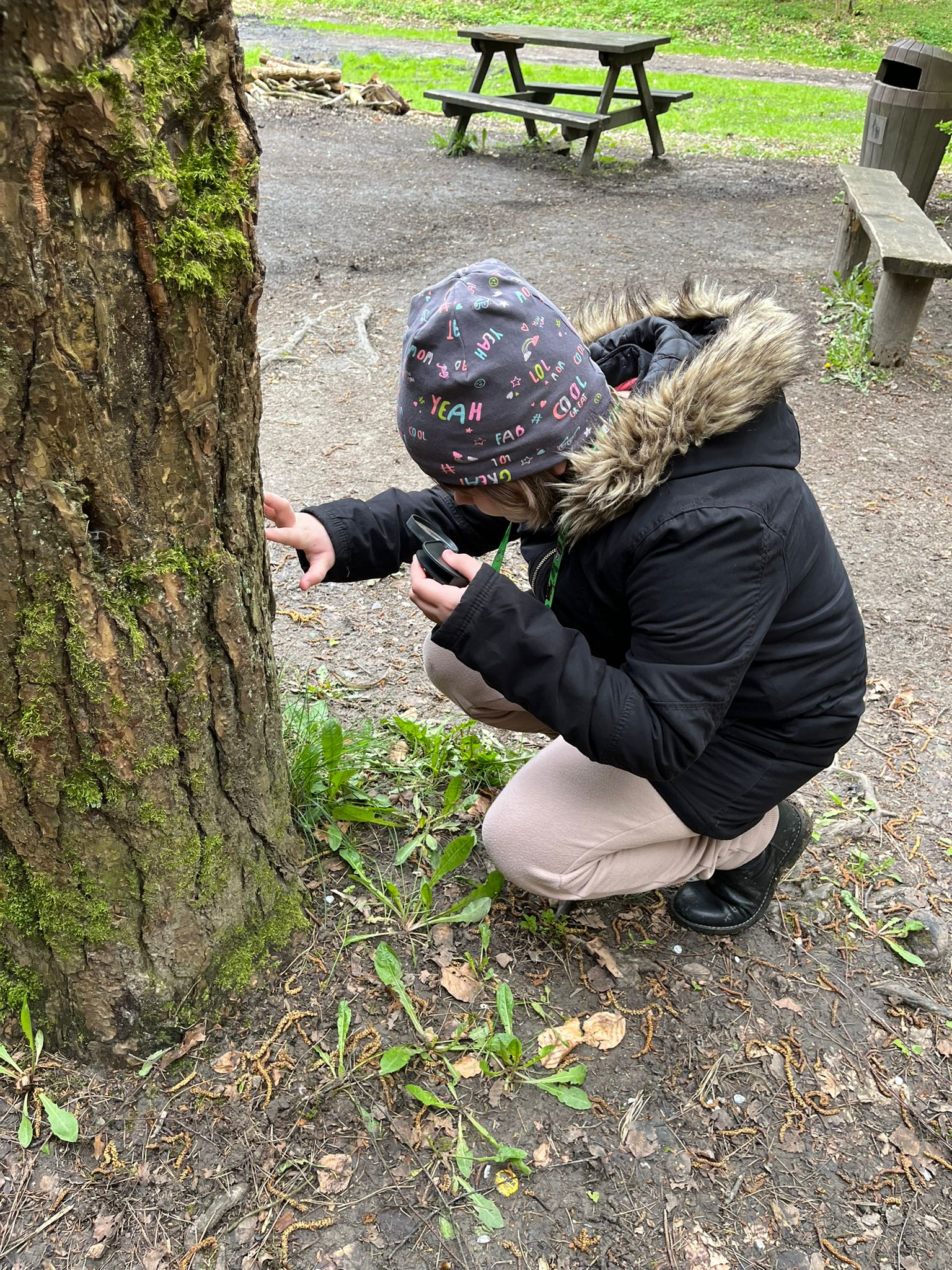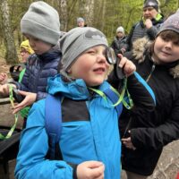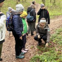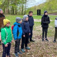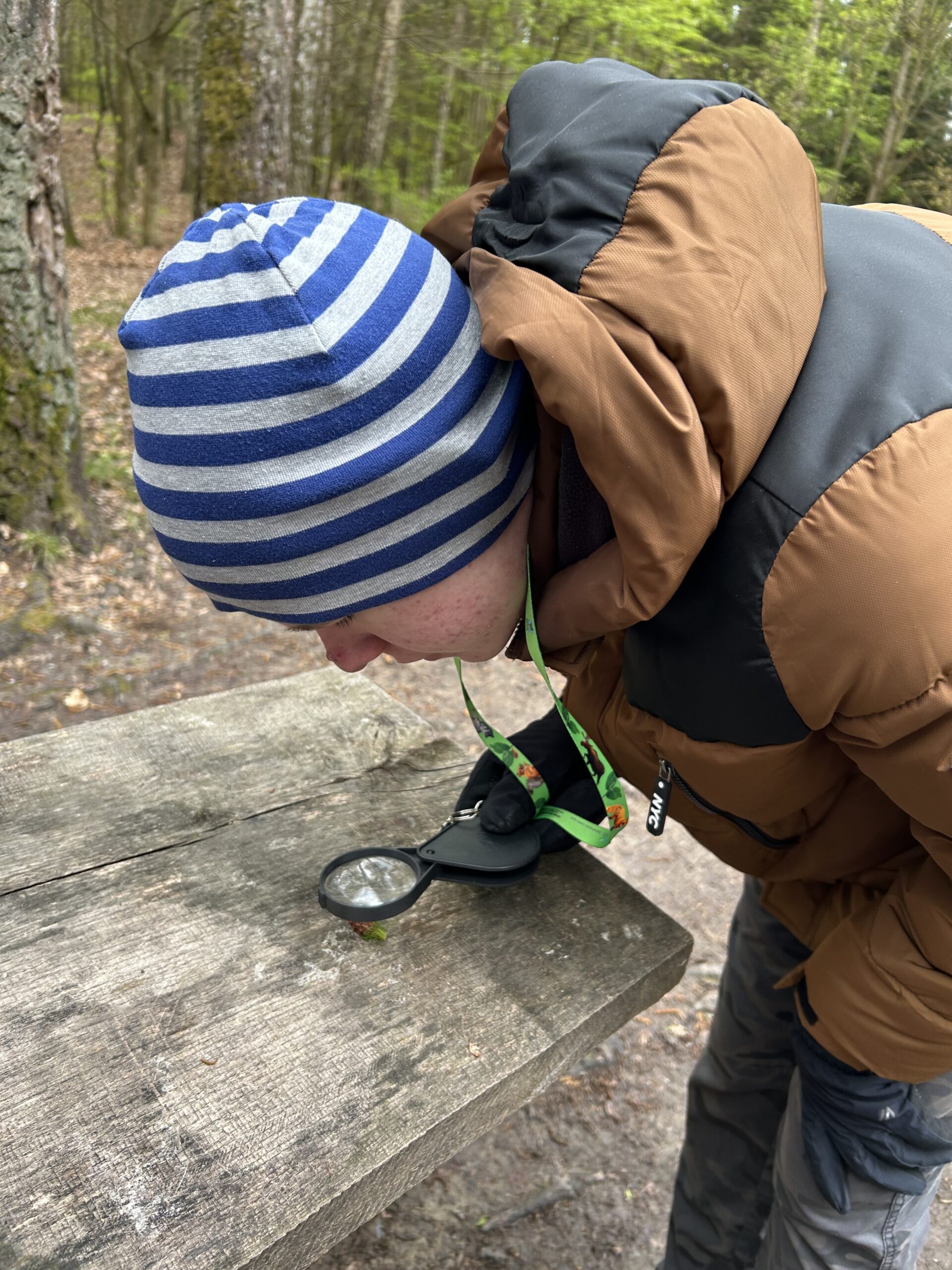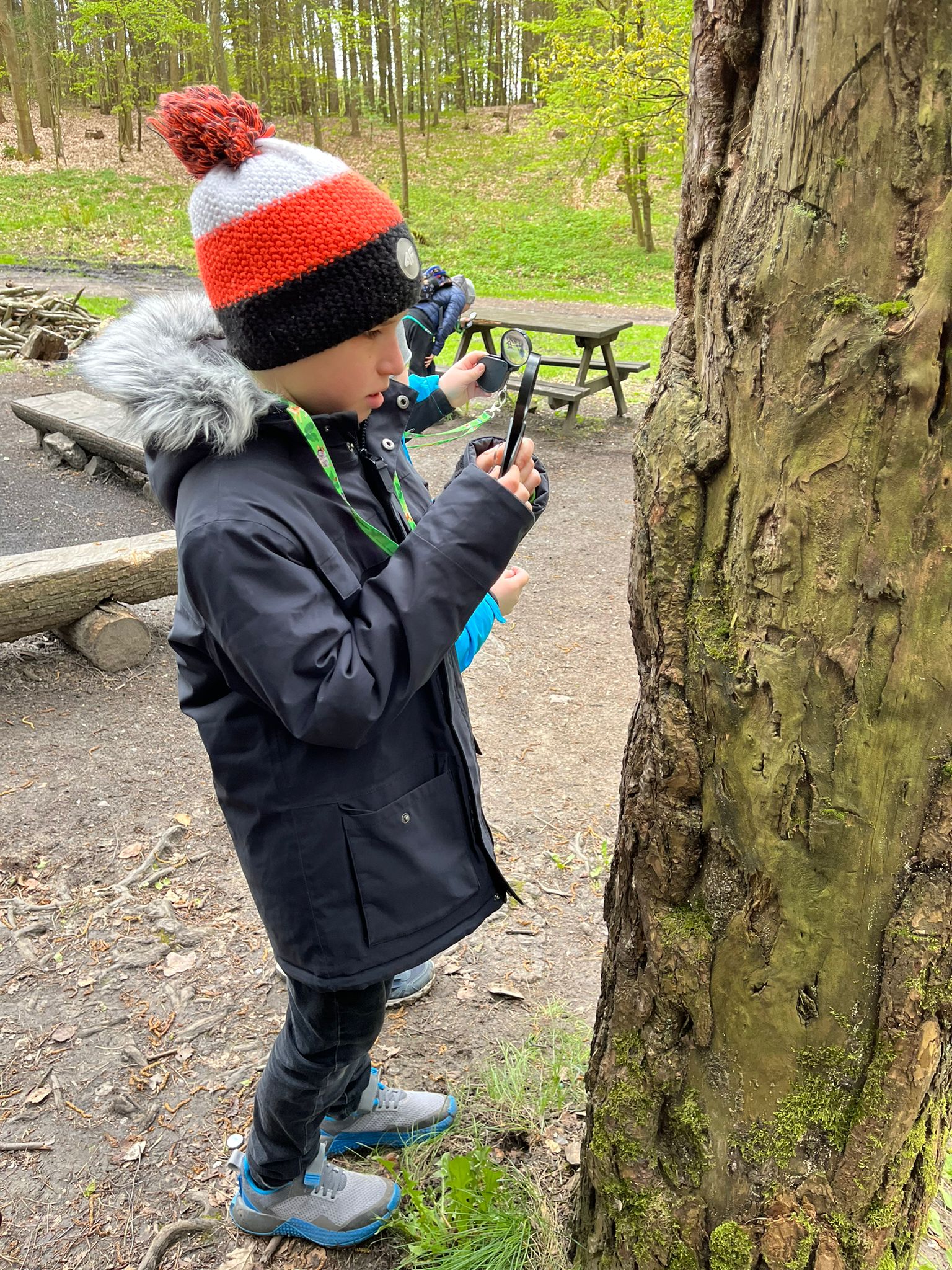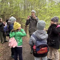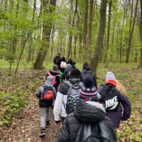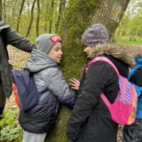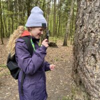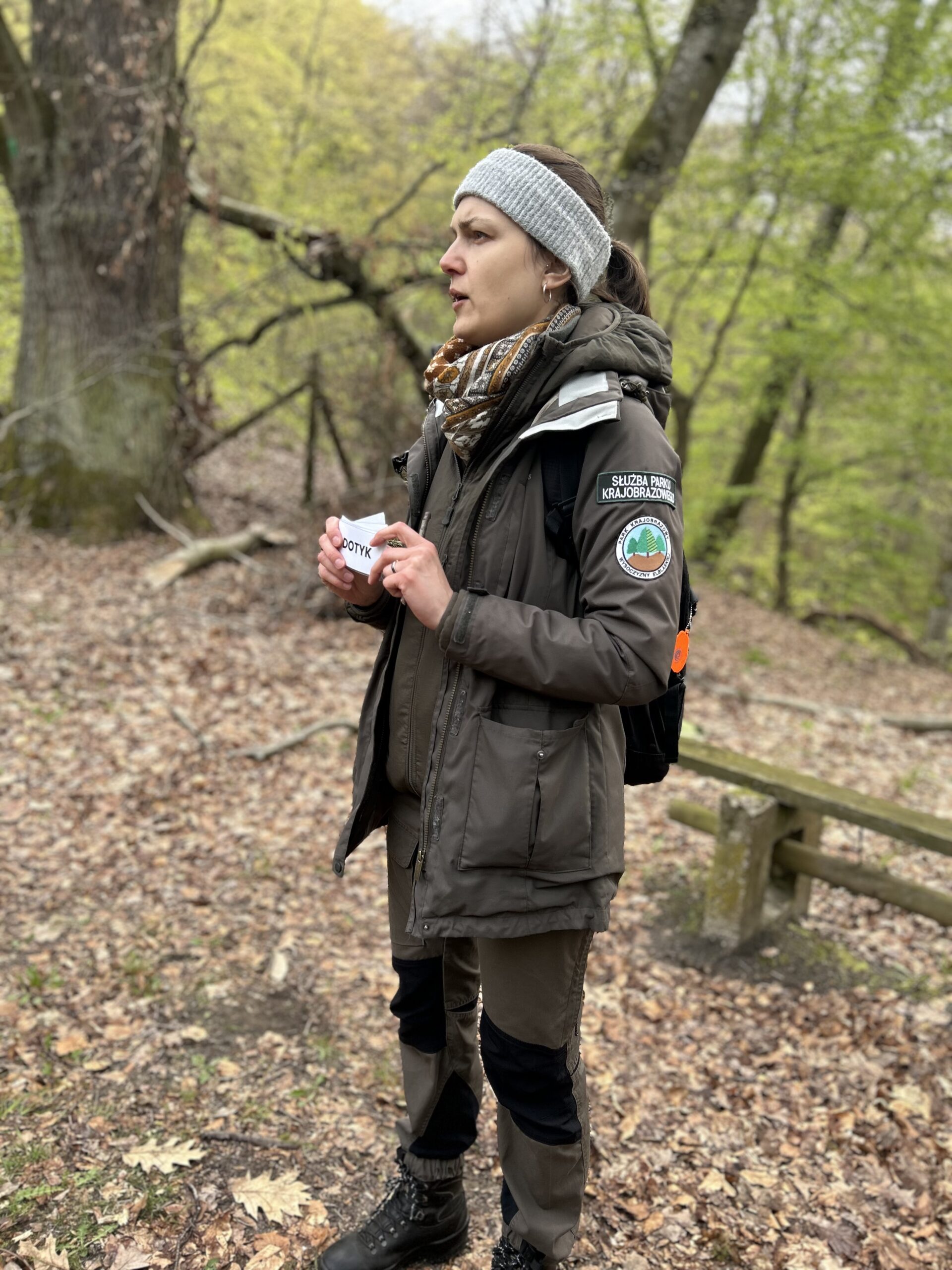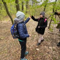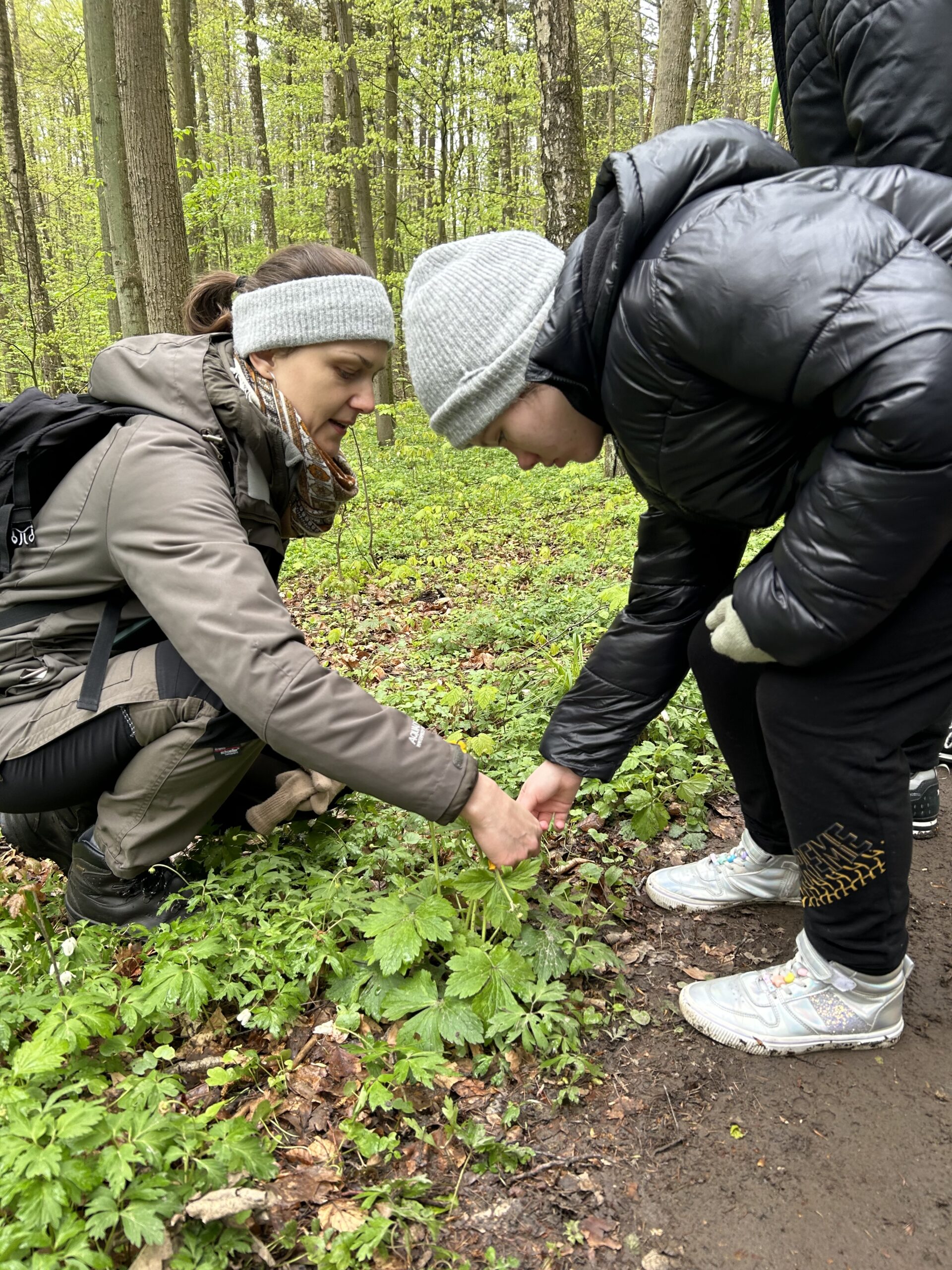 Pani Marta, znawczyni terenu i pasjonatka ochrony przyrody, poprowadziła uczniów przez gąszcz lasu, zwracając uwagę na jego różnorodność. Podczas tej niezwykłej wędrówki, uczniowie mieli okazję doświadczyć lasu we wszystkich możliwych wymiarach, korzystając ze swoich zmysłów. Słuchając śpiewu ptaków, dotykając korzeni drzew, prowadząc uważne obserwacje – każde zmysłowe doświadczenie wprowadzało ich coraz głębiej w świat otaczającej przyrody.