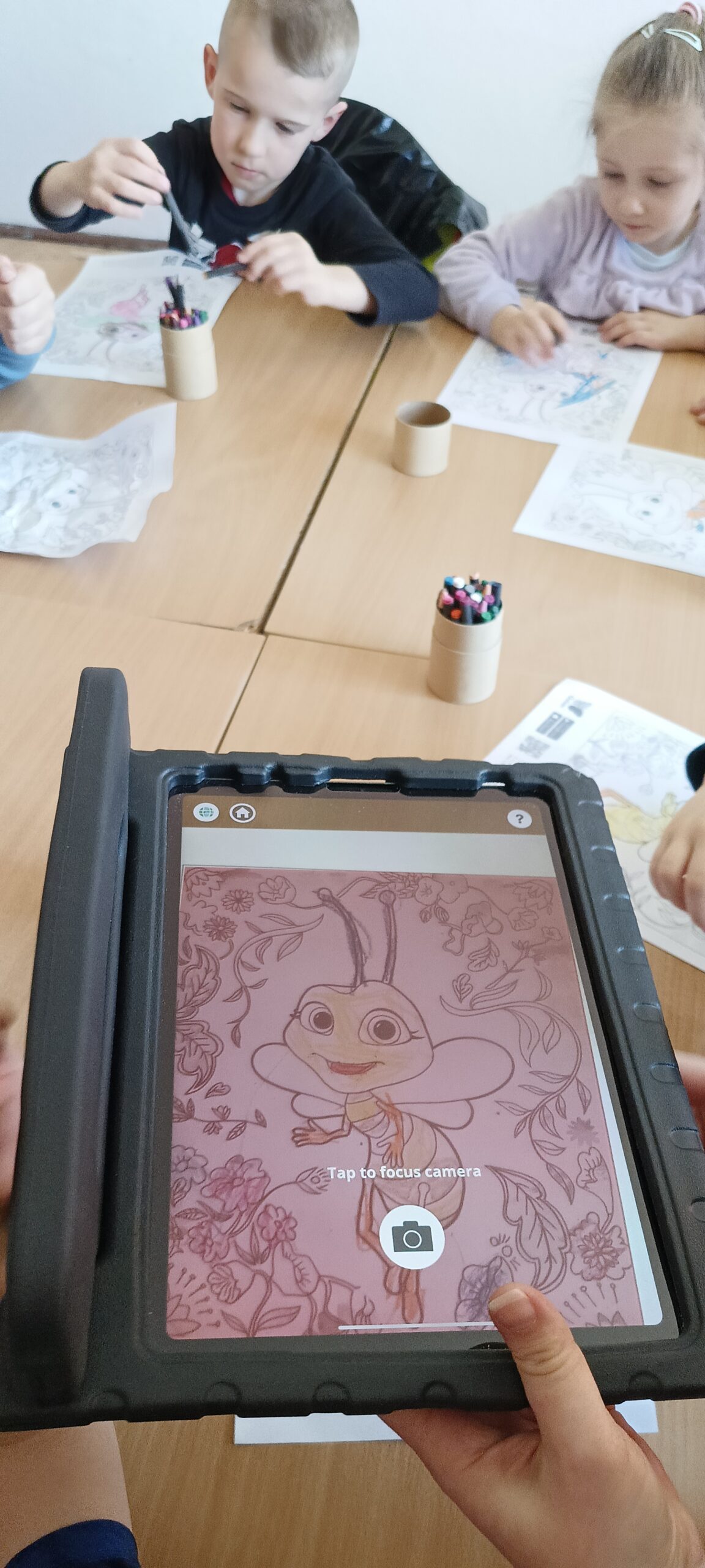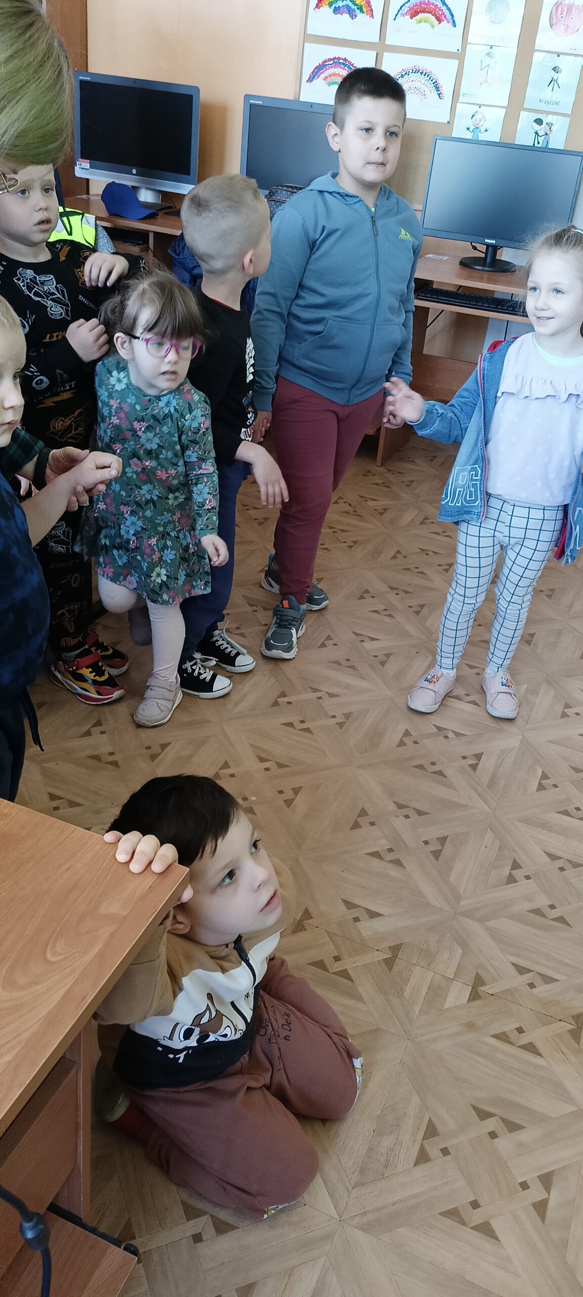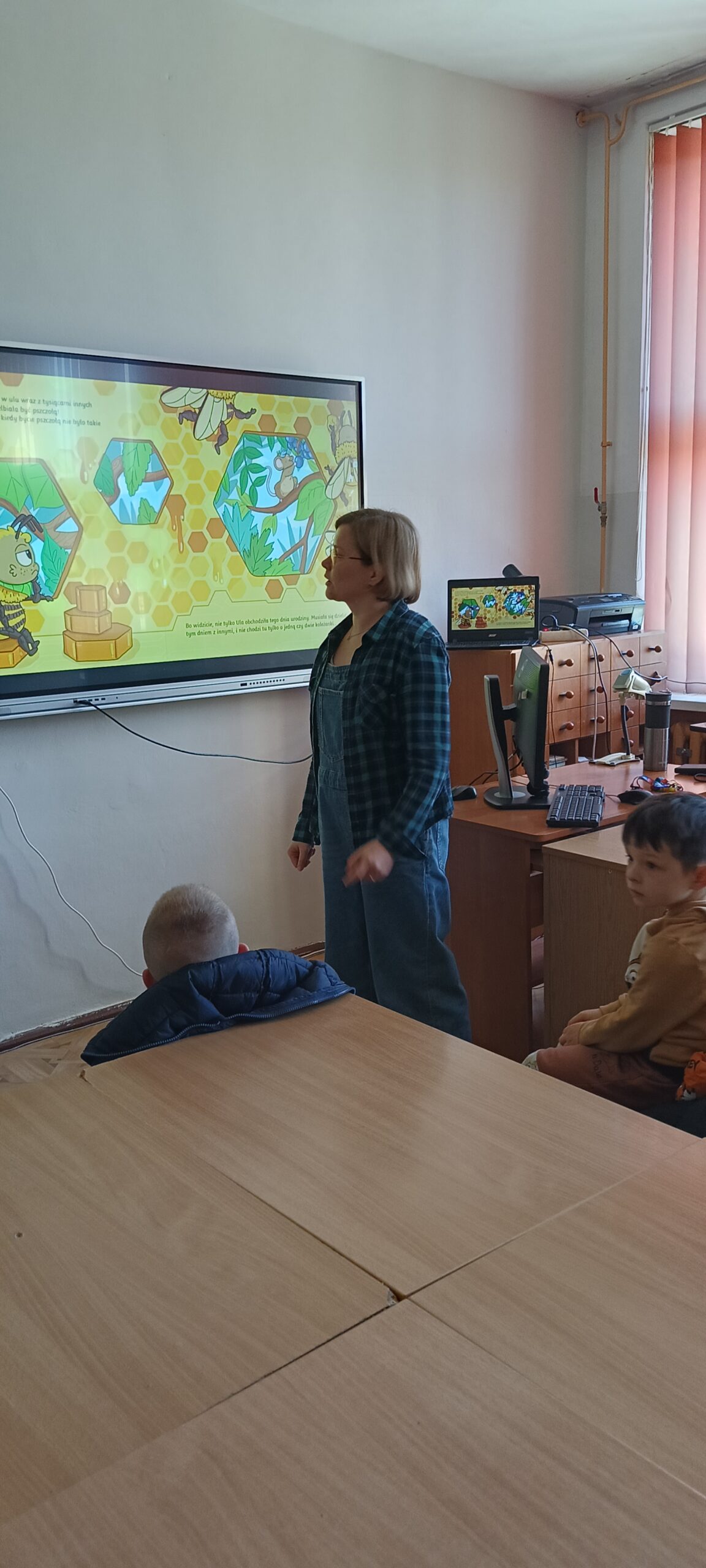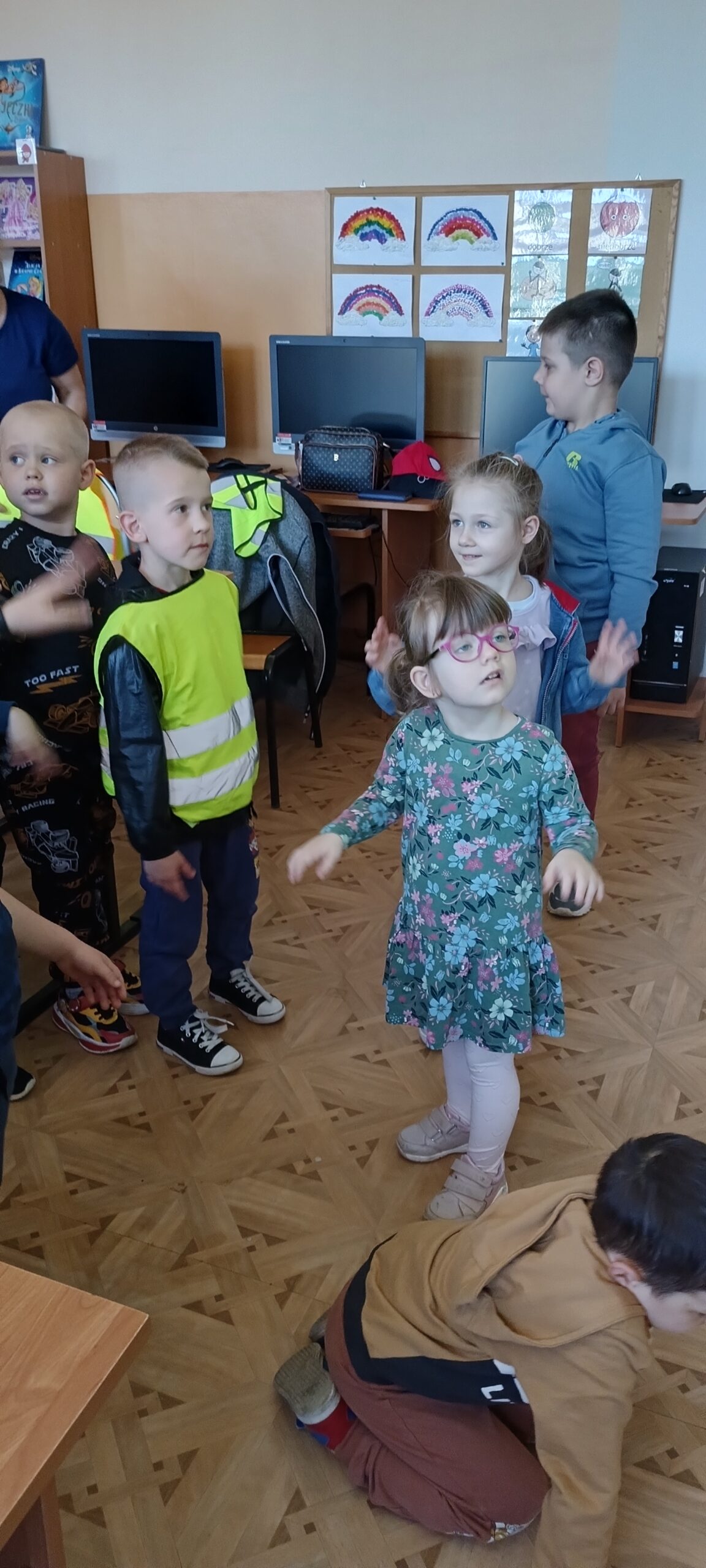 Przedszkolaki z grupy Waleczne pszczółki odwiedziły we wtorek bibliotekę szkolną. Podczas spotkania Pani Magda pokazała książki, opowiedziała jak należy o nie dbać, po co służą zakładki do książek. Przedszkolaki wysłuchały opowiadania „Urodziny pszczółki” oraz wykonały ilustracje oraz zatańczyły taniec pszczółki.
