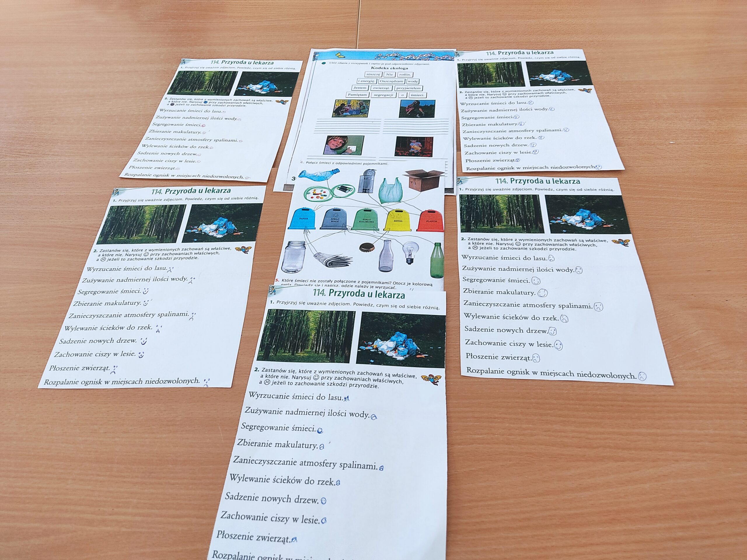 Już sama przewaga złych nawyków ludzi względem świata przyrody zmusza do przysłowiowego bicia na alarm, a czynić to trzeba jak najwcześniej w myśl przysłowia: „Czym skorupka za młodu nasiąknie, tym na starość trąca”. Stąd też w dalszej części zajęć z ekologią w tle, uczniowie odpowiadali na pytanie: „Co lekarz zalecił przyrodzie?” W ramach odpowiedzi uczniowie kolorowali ramki z cennymi radami.