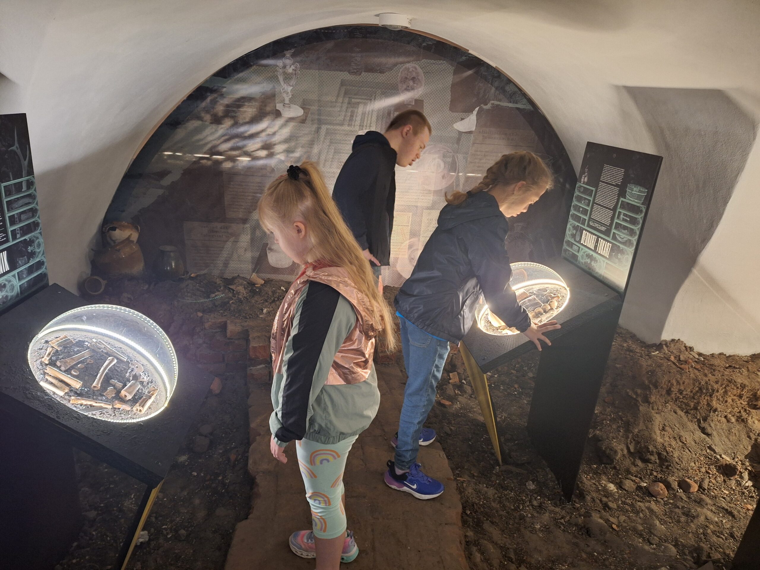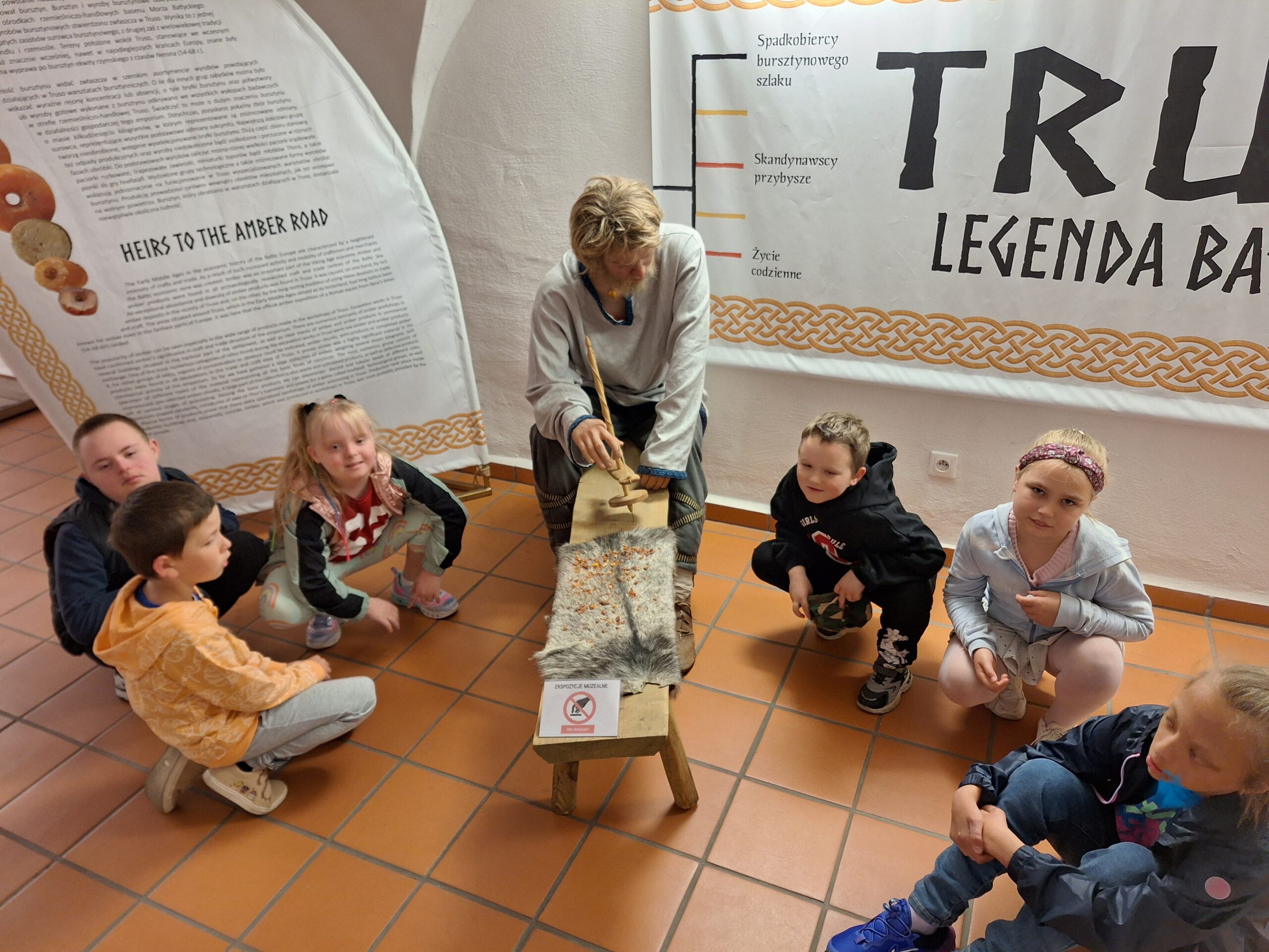 W przeddzień „Nocy muzeów” uczniowie klasy I a i III e SP odwiedzili Muzeum Archeologiczno – Historyczne w Elblągu. Podczas wizyty dzieci dowiedziały się, co to jest muzeum, eksponat, zabytek, wystawa, oraz czym zajmują się pracownicy instytucji. W trakcie żywej lekcji historii uczniowie odkrywali, jak Elbląg wyglądał w czasach pierwszego osadnictwa TRUSO, poznali wyjątkowe bogactwo tamtej epoki- bursztyn oraz sposoby ówczesnego budowania prostych, drewnianych domów i dróg.