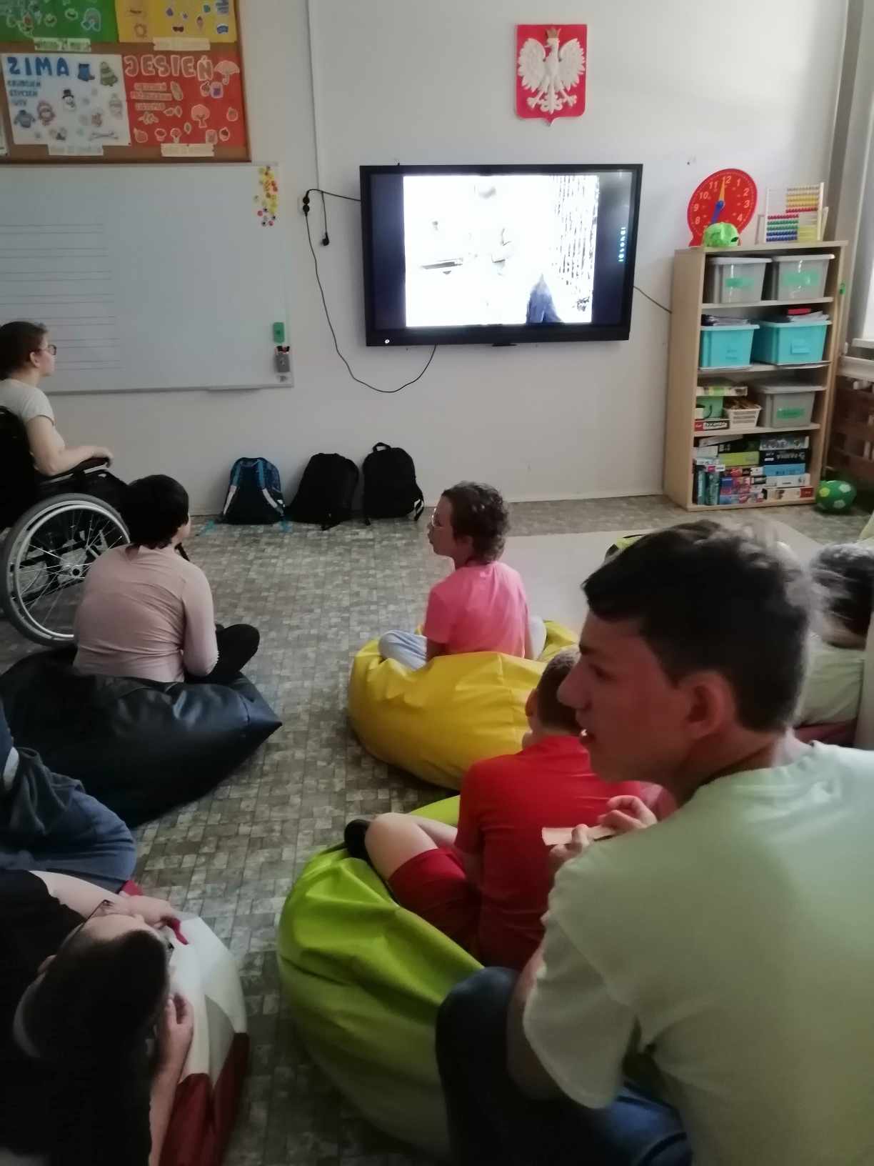 Powoli międzynarodowy projekt „Z kulturą mi do twarzy” edycja IV- dobiega końca. Uczniowie klas 3 g l, 7/8 d i 8 e zrealizowali kolejne zadanie – „W niemym kinie”, połączone z „Filmowym południem”. Zapoznali się ze starym kinem- obejrzeli film, między innymi, z Charlie Chaplinem. Próbowali zrozumieć, na czym polegała rozrywka telewizyjna pradziadków, prapradziadków, kiedy film nie posiadał jeszcze ścieżki dźwiękowej. Porównywali czasy obecne z dawnymi, wyciągali wnioski. Odbyła się także zabawa pantomimiczna według różnych pomysłów dziecięcych, która wcale nie była dla nich prosta. Podsumowaniem działań było „Południe filmowe” w gabinecie szkolnym, który na ten czas przeobraził się w salę kinową. Mieliśmy bilety wstępu i biletera, który je sprawdzał. Zachwycał dźwięk czarodziejskich słów: dzień dobry, proszę dziękuję. Nie zabrakło oczywiście wygodnych siedzisk i popcornu w roli głównej.