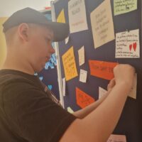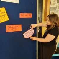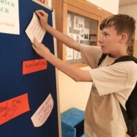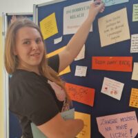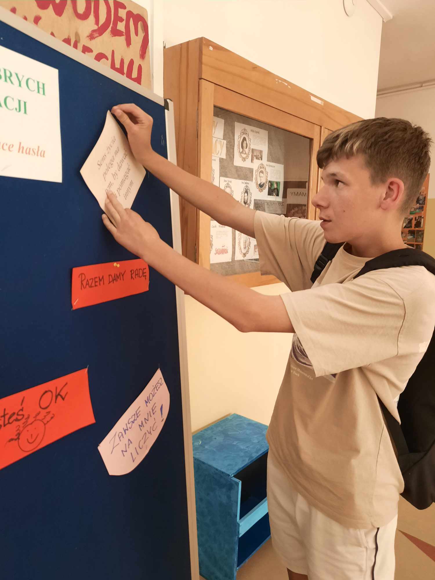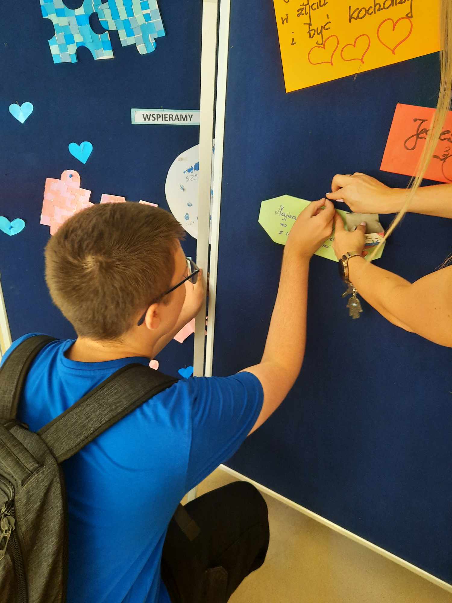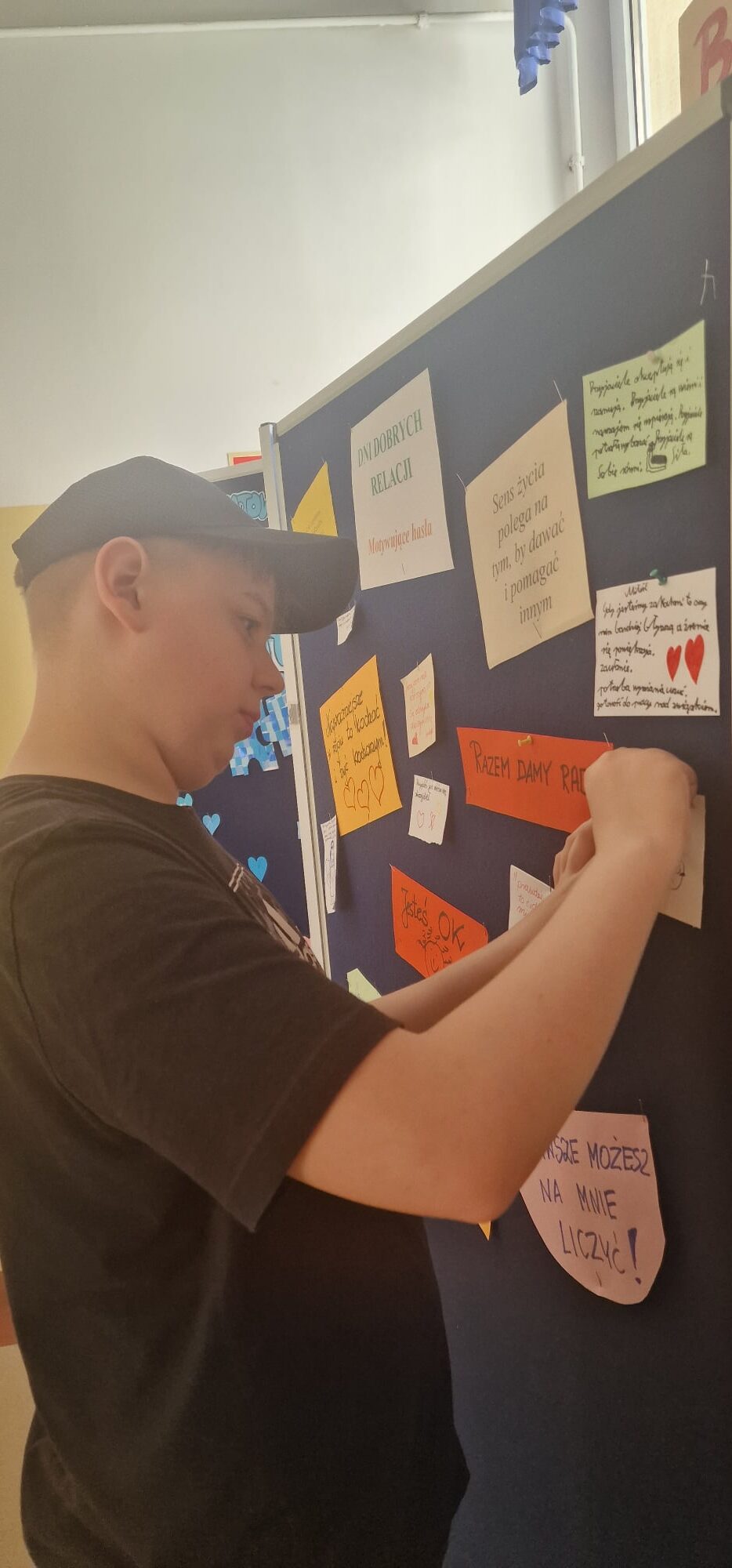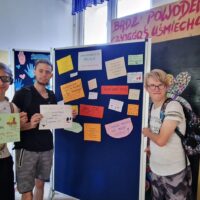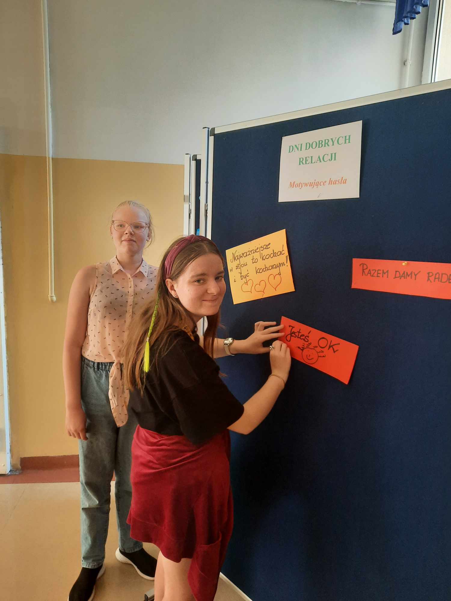 Na pierwszym piętrze ustawiona była tablica, na której każdy mógł zawiesić miłe, motywujące hasła dla innych. Ta inicjatywa okazała się wspaniałą okazją do dzielenia się dobrymi myślami i pozytywnymi życzeniami, co stworzyło atmosferę wzajemnego wsparcia i życzliwości.