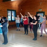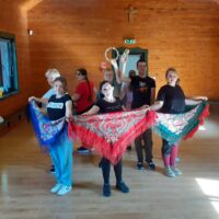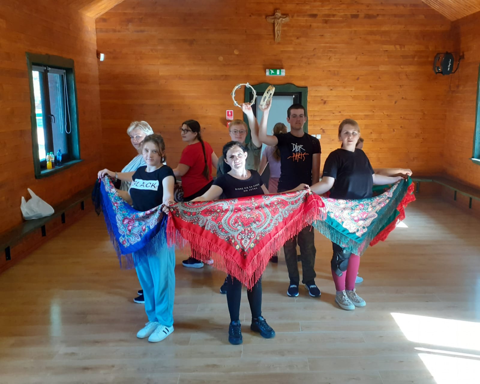 Ćwiczymy choreografie do tańców na koncert finałowy. Najwięcej trudności sprawia nam opanowanie kroków tanecznych  do muzyki cygańskiej