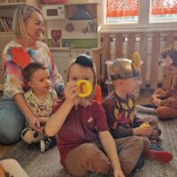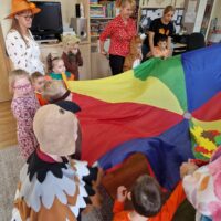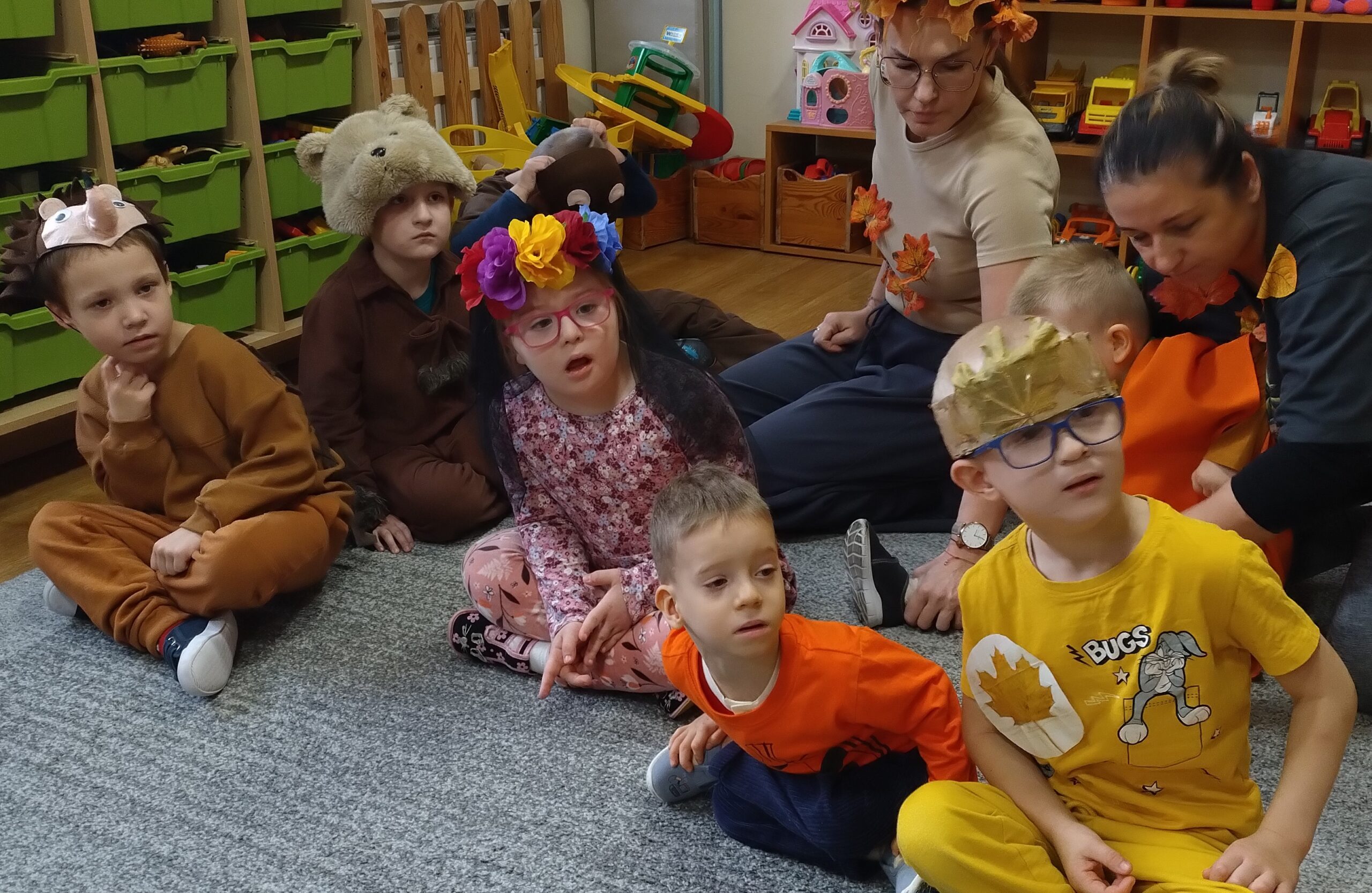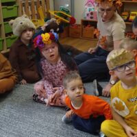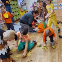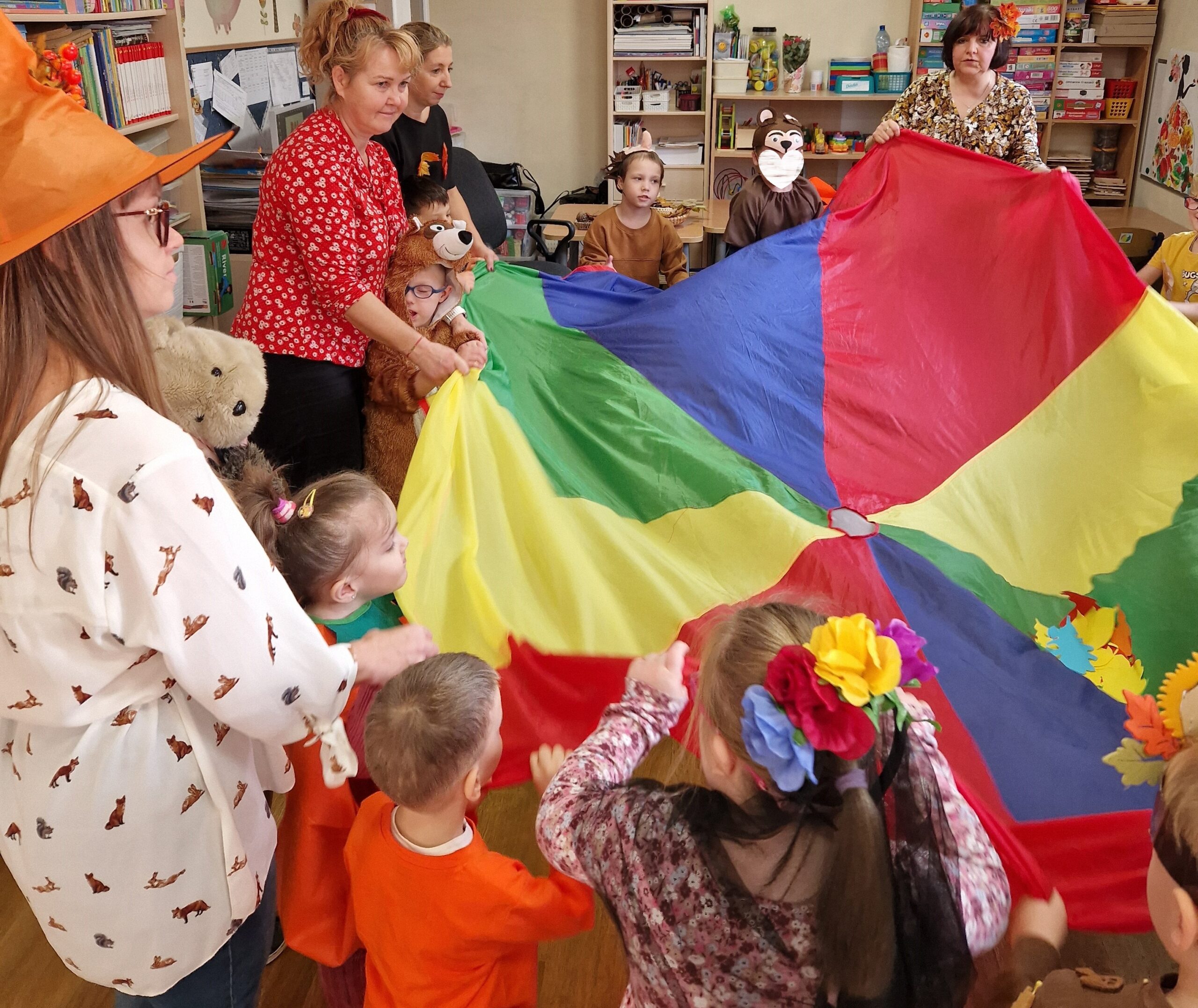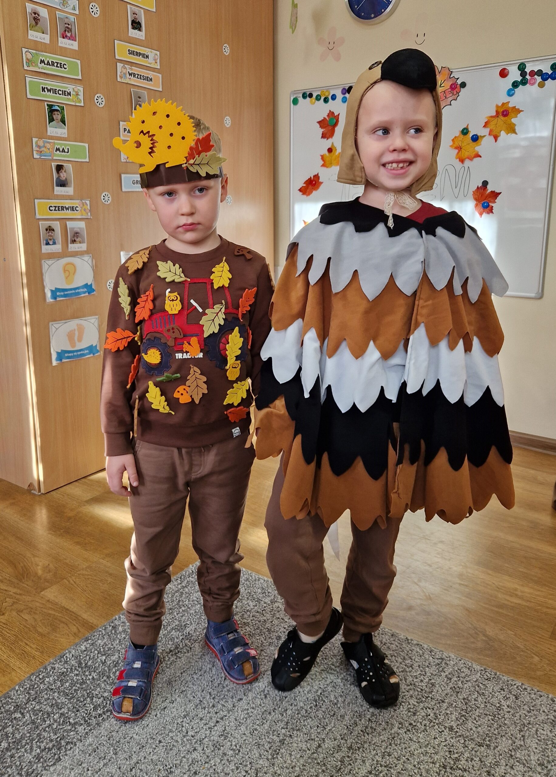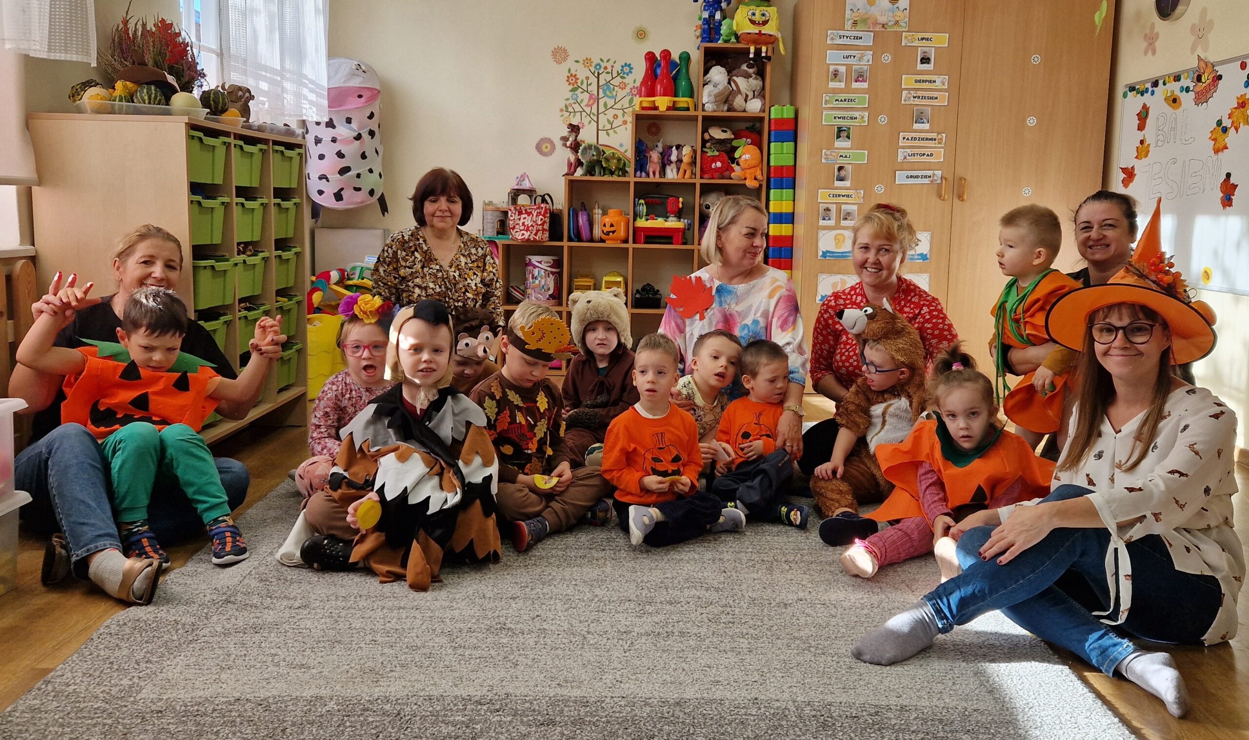 15 października 2024 roku u naszych przedszkolaków było bardzo wesoło i radośnie. Wszystkie dzieci bawiły się podczas Balu Jesieni. Przedszkolaki chętnie tańczyły przy jesiennych piosenkach, zbierały i oglądały dary jesieni: liście, kasztany, żołędzie i szyszki. Dużo radości sprawiła dzieciom zabawa chustą animacyjną. Dzieci miały na sobie piękne jesienne stroje, za przygotowanie których dziękujemy wszystkim Rodzicom.