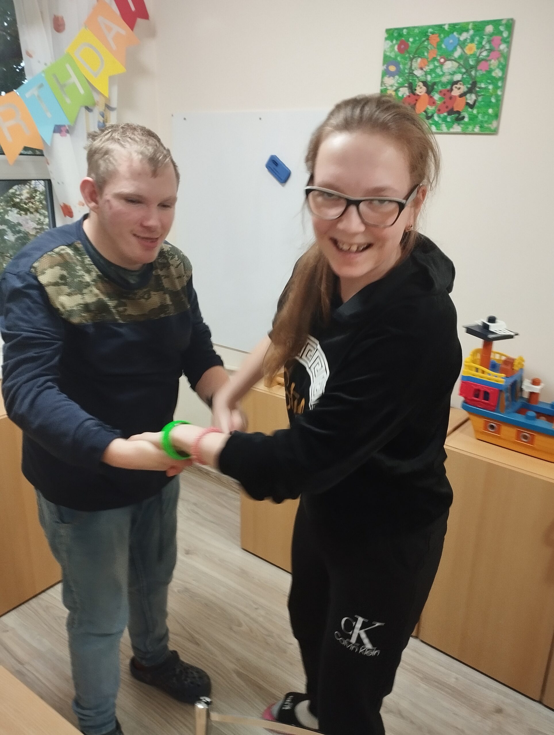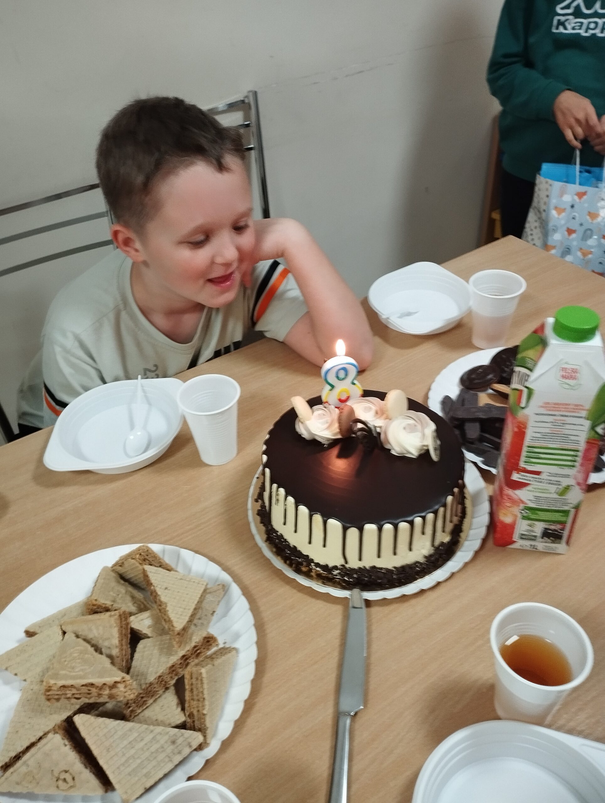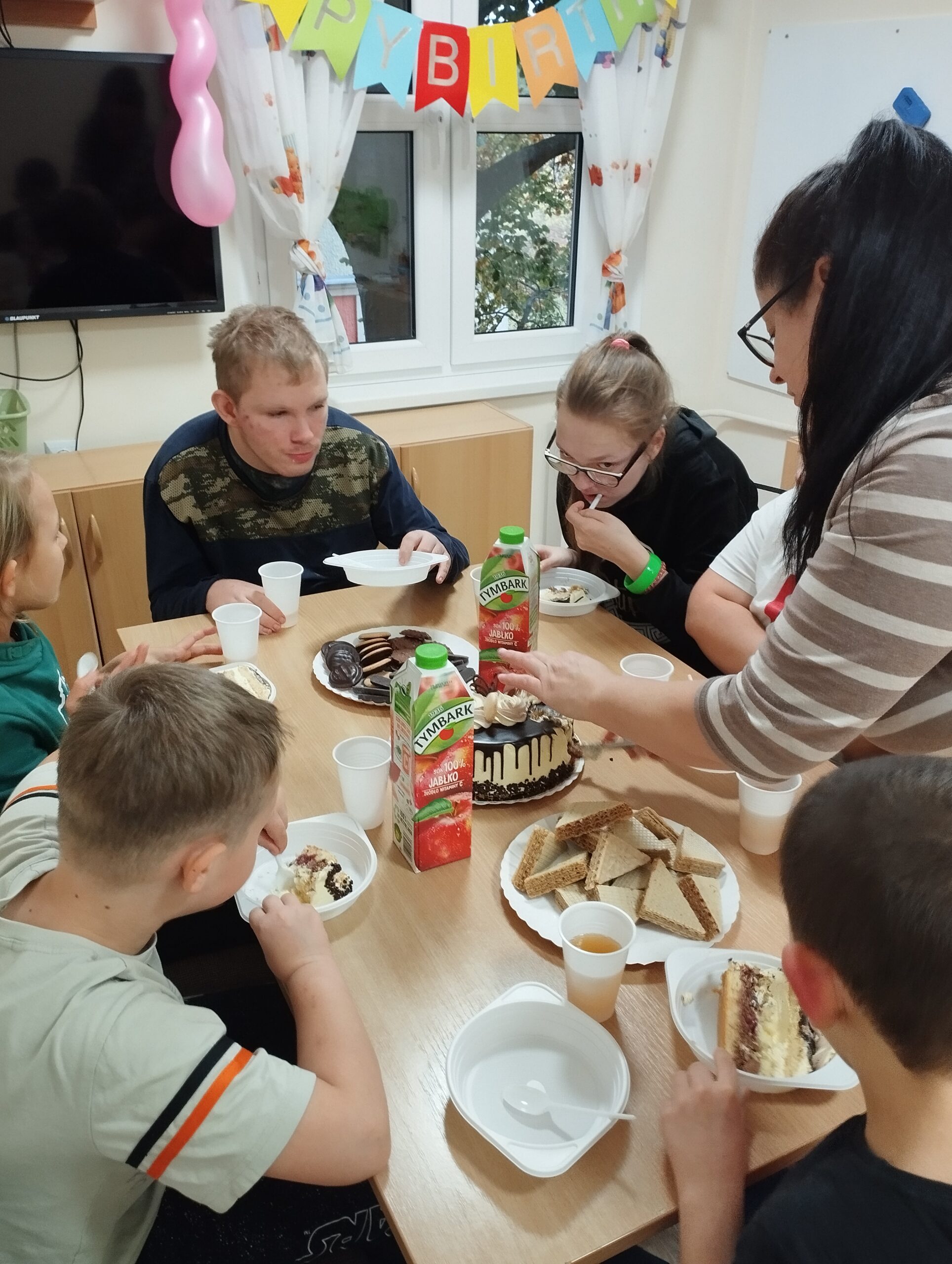 Wczoraj obchodziliśmy w internacie ósme urodziny Alana. Wychowankowie najpierw zaśpiewali solenizantowi tradycyjne sto lat a później złożyli życzenia wręczając drobny upominek. Po zjedzeniu pysznego tortu był czas na brokatowe tatuaże, rozmowy oraz tańce. Urodziny były świetną okazją do integracji grupy i spędzania wspólnie wolnego czasu.