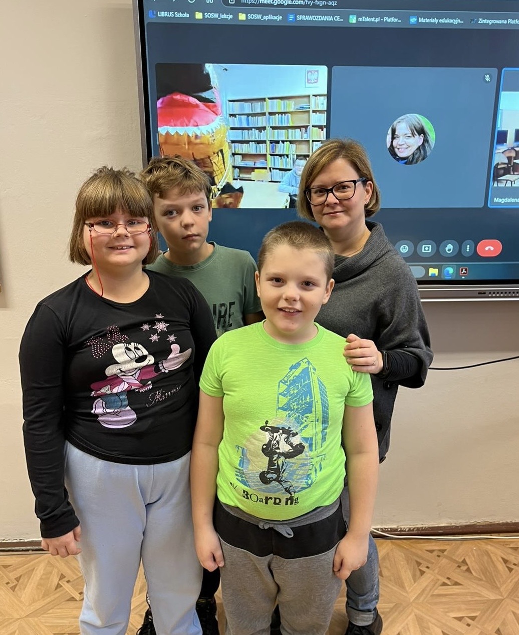 Uczniowie klasy 3a uczestniczyli w lekcji bibliotecznej w ramach projektu „Biblioteka – dobre miejsce dla człowieka”, który ma na celu rozwijanie kompetencji społecznych i emocjonalnych młodych ludzi poprzez zachęcanie do czytelnictwa. Tym razem uczniowie wzięli udział w zajęciach on-line wraz z rówieśnikami ze Specjalnej Ośrodka Szkolno-Wychowawczego nr 2 w Elblągu. Dzieci z obu placówek – pod opieką pani Magdy Janiak w SOSW nr 1 oraz pani Natalii Boettcher w SOSW nr 2 – spotkały się w szkolnych bibliotekach, aby wspólnie zgłębić temat przyjaźni.