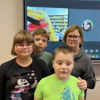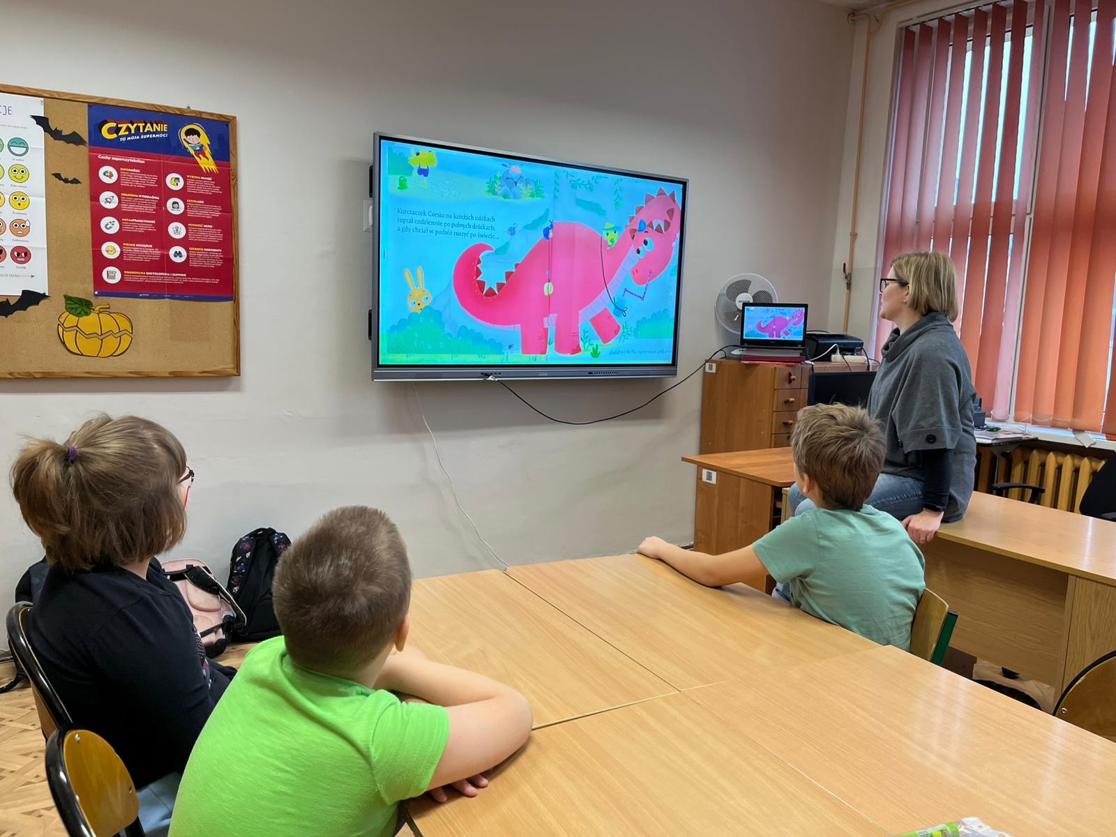 Podczas lekcji o przyjaźni uczniów czekała niespodzianka – w bibliotece zjawił się dinozaur Stefan! W rolę tej sympatycznej postaci wcieliła się jedna z nauczycielek z SOSW nr 2, która przygotowała specjalny strój dinozaura. Dzieci były zachwycone wizytą Stefana, a możliwość spotkania „na żywo” bohatera książki Agaty Widzowskiej dodała spotkaniu wyjątkowej atmosfery.