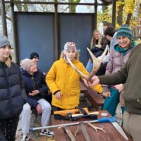 Pan Jan Pluto Prondzyński nie tylko dzielił się wiedzą o przyrodzie, ale także zapoznał uczniów z tajnikami pracy leśniczego. Dzieci miały okazję zobaczyć narzędzia i przybory, z których leśniczy korzystają na co dzień, aby dbać o lasy i ich mieszkańców. Z wielką uwagą przyglądali się m.in. narzędziom do pomiaru wielkości drzew i innym instrumentom, które pomagają w ocenie kondycji lasu i jego zasobów.