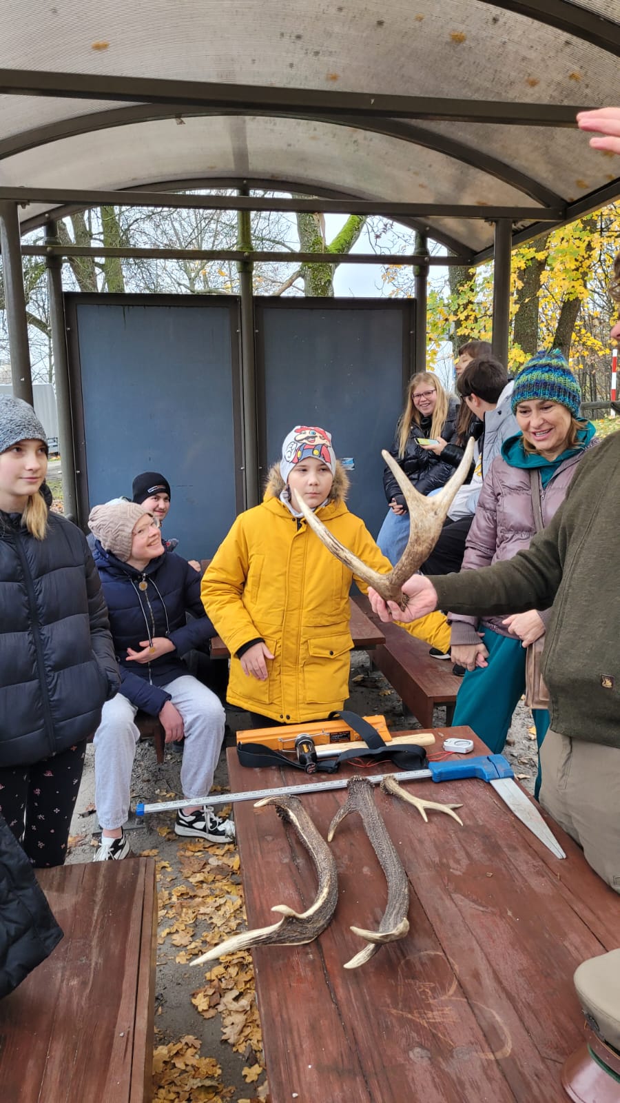 Dzieci miały również okazję zobaczyć poroże zwierząt zamieszkujących Bażantarnię i okoliczne tereny leśne. Poroże jeleni, saren i innych leśnych mieszkańców stanowiło pomoc w  nauce o cyklu życia zwierząt, ich zachowaniach w czasie jesieni oraz o roli, jaką odgrywają w ekosystemie leśnym.