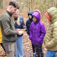 Podleśniczy Leśnictwa Dębica pan Jan Pluto Prondzyński w przystępny i interesujący sposób opowiadał o jesiennych zjawiskach przyrodniczych. Uczniowie dowiedzieli się, w jaki sposób zmienia się środowisko leśne wraz z nadejściem chłodniejszych dni. Jakie gatunki drzew przygotowują się na zimę? Kiedy i dlaczego liście zmieniają kolor? To tylko niektóre z pytań, na które odpowiedzi znaleźli uczestnicy zajęć.