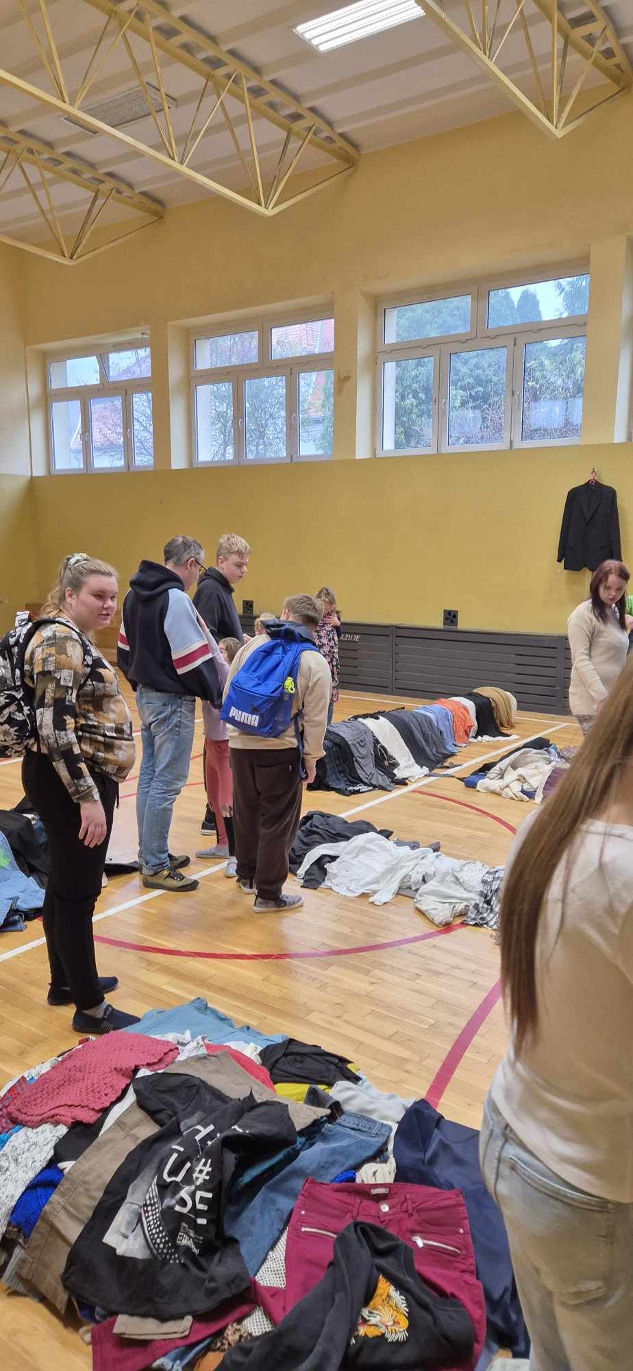 Podczas kolejnej już akcji „BĄDŹMY EKO-DZIELMY SIĘ” uczniowie mieli okazję wybrać sobie ubrania zebrane przez organizatorki, promując tym samym ideę dbania o środowisko i nadawania drugiego życia odzieży. W szkolnej sali pełnej różnorodnych ubrań, każdy mógł znaleźć coś dla siebie. Wszyscy chętnie przeglądali i wybierali ubrania wspierając ideę zrównoważonej mody i świadomej konsumpcji. To wydarzenie cieszyło nie tylko uczestników, ale przypomniało również, jak ważna jest troska o naszą planetę.