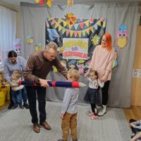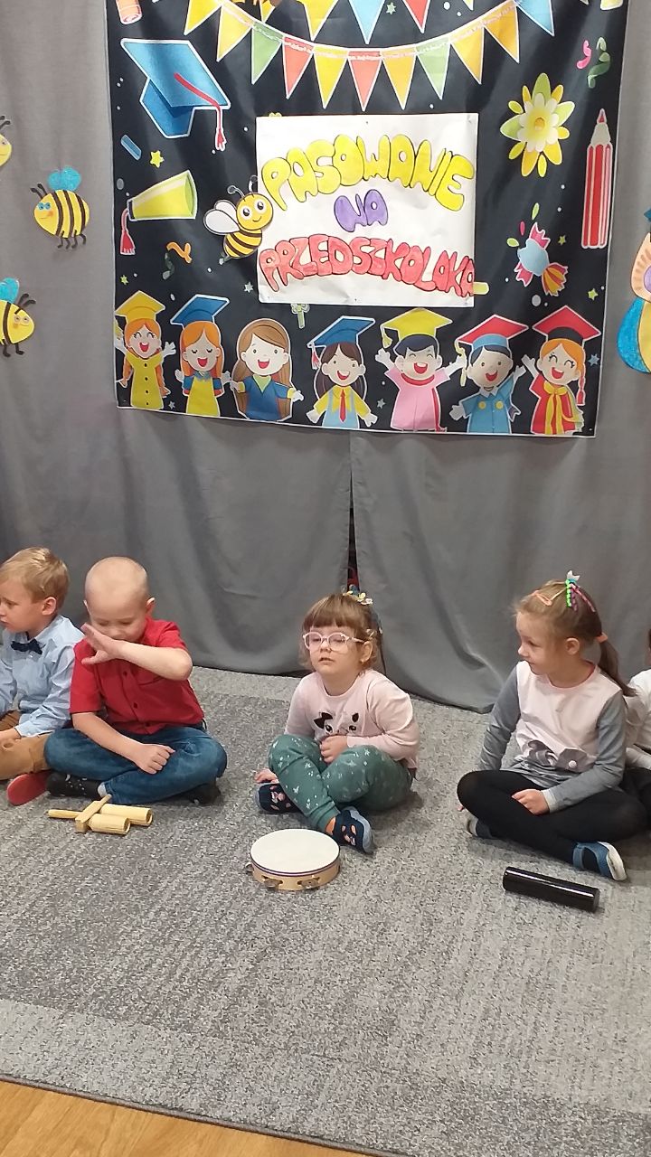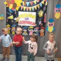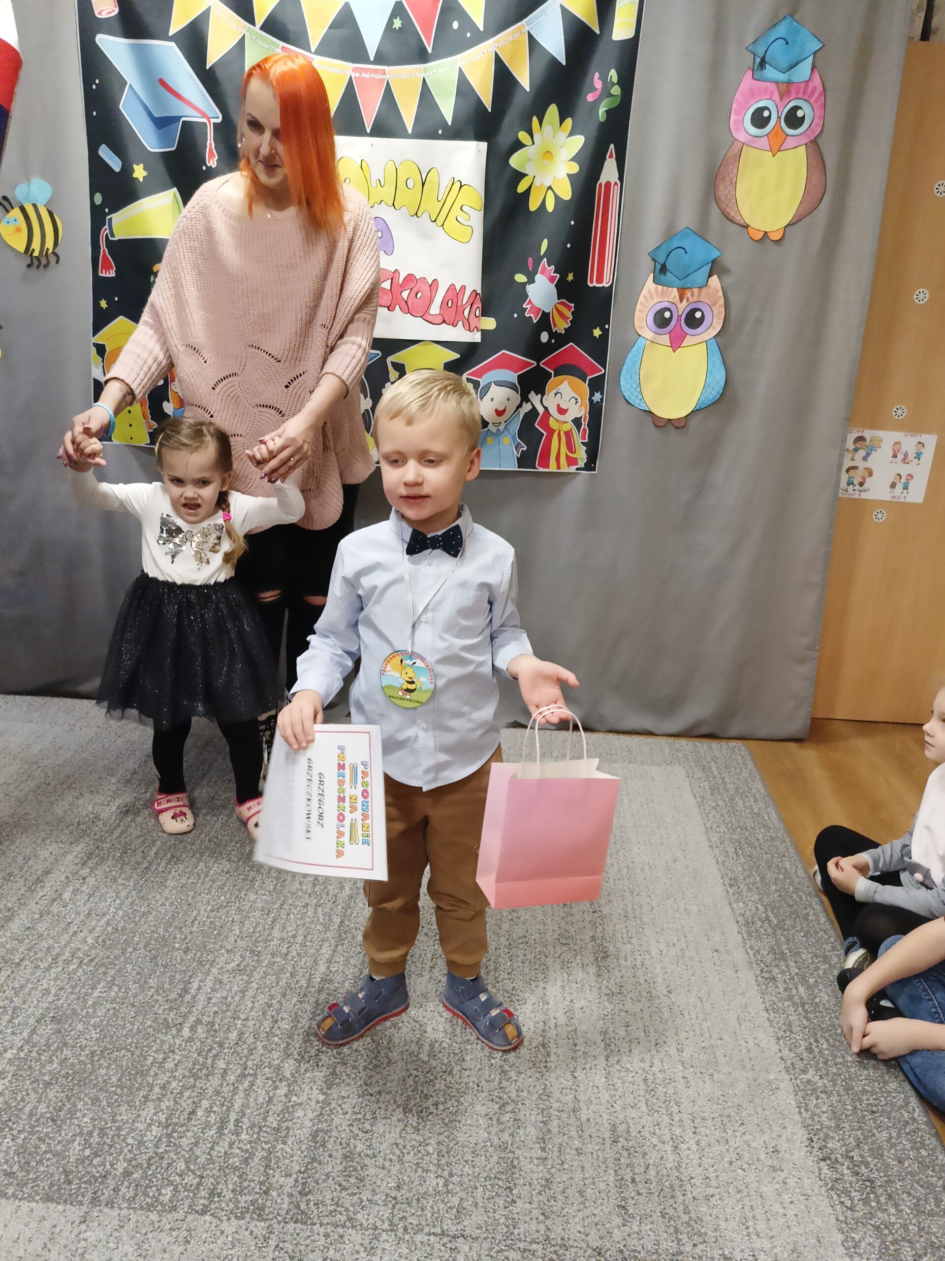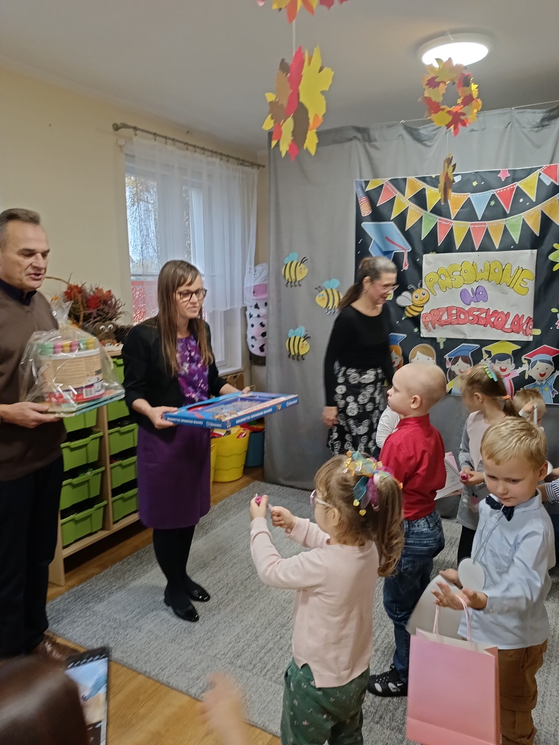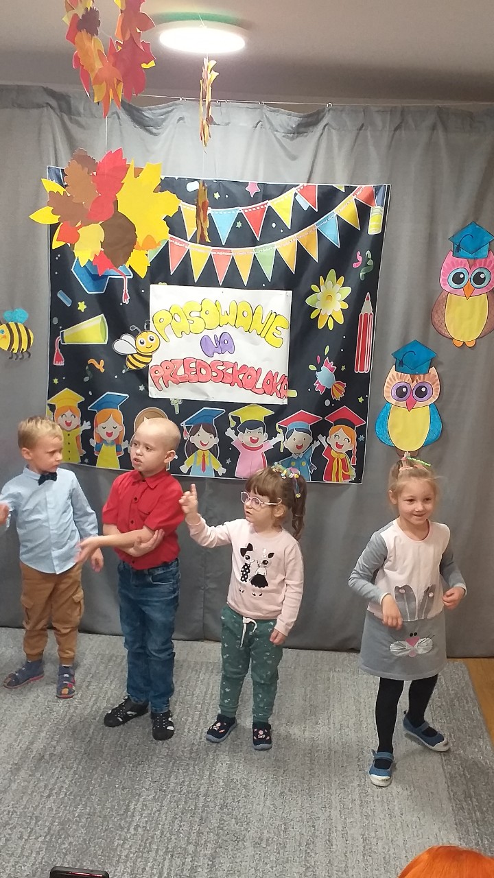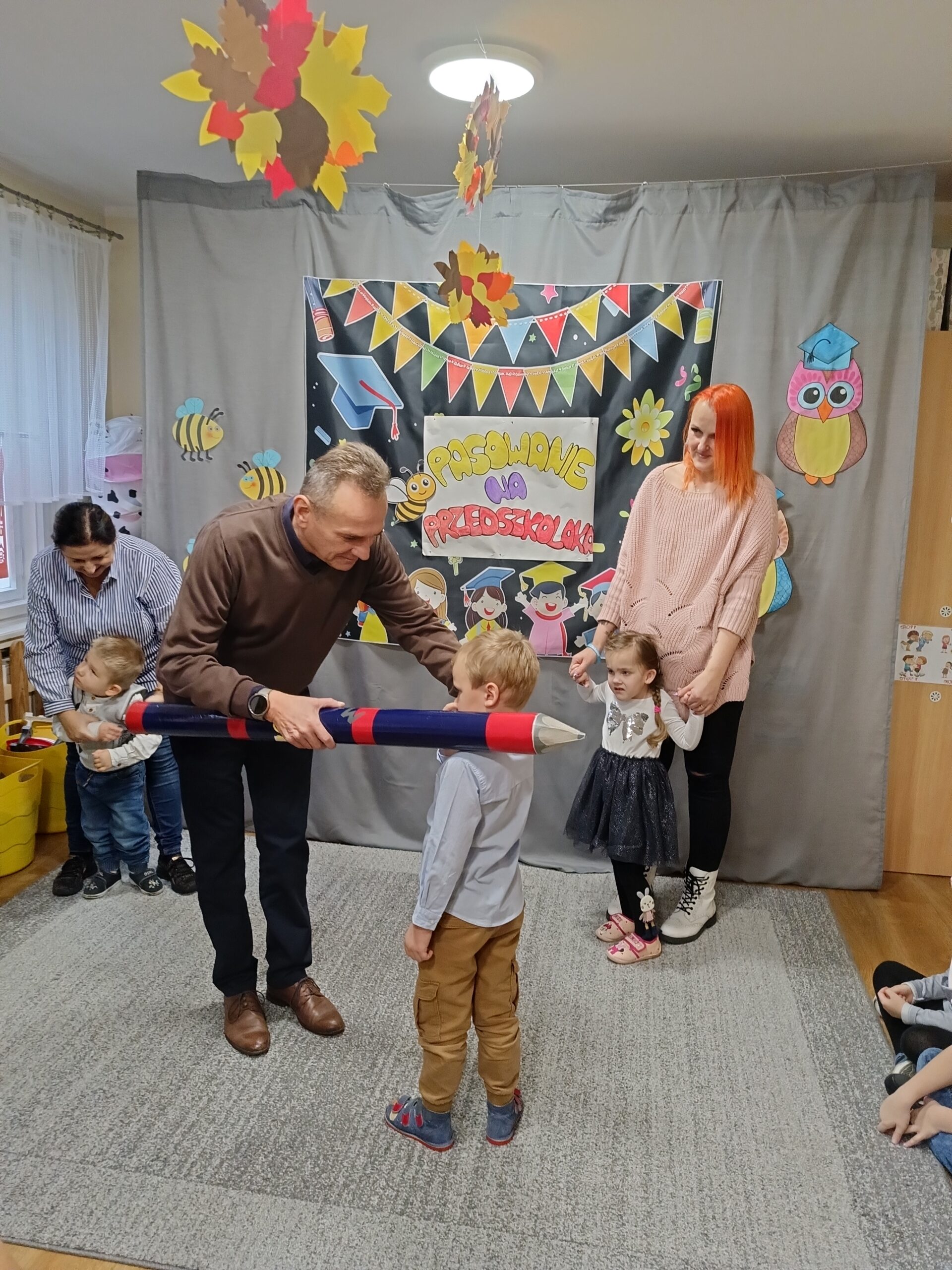 14.11 w grupie Waleczne pszczółki odbyło się uroczyste pasowanie na przedszkolaka: Karola, Mii i Grzesia. Dzieci zaprezentowały swoje umiejętności wokalne, taneczne oraz gry na instrumentach. Następnie złożyły uroczyste ślubowanie. Pan Dyrektor dokonał uroczystego pasowania. Na pamiątkę tak ważnego wydarzenia każde dziecko otrzymało upominek.