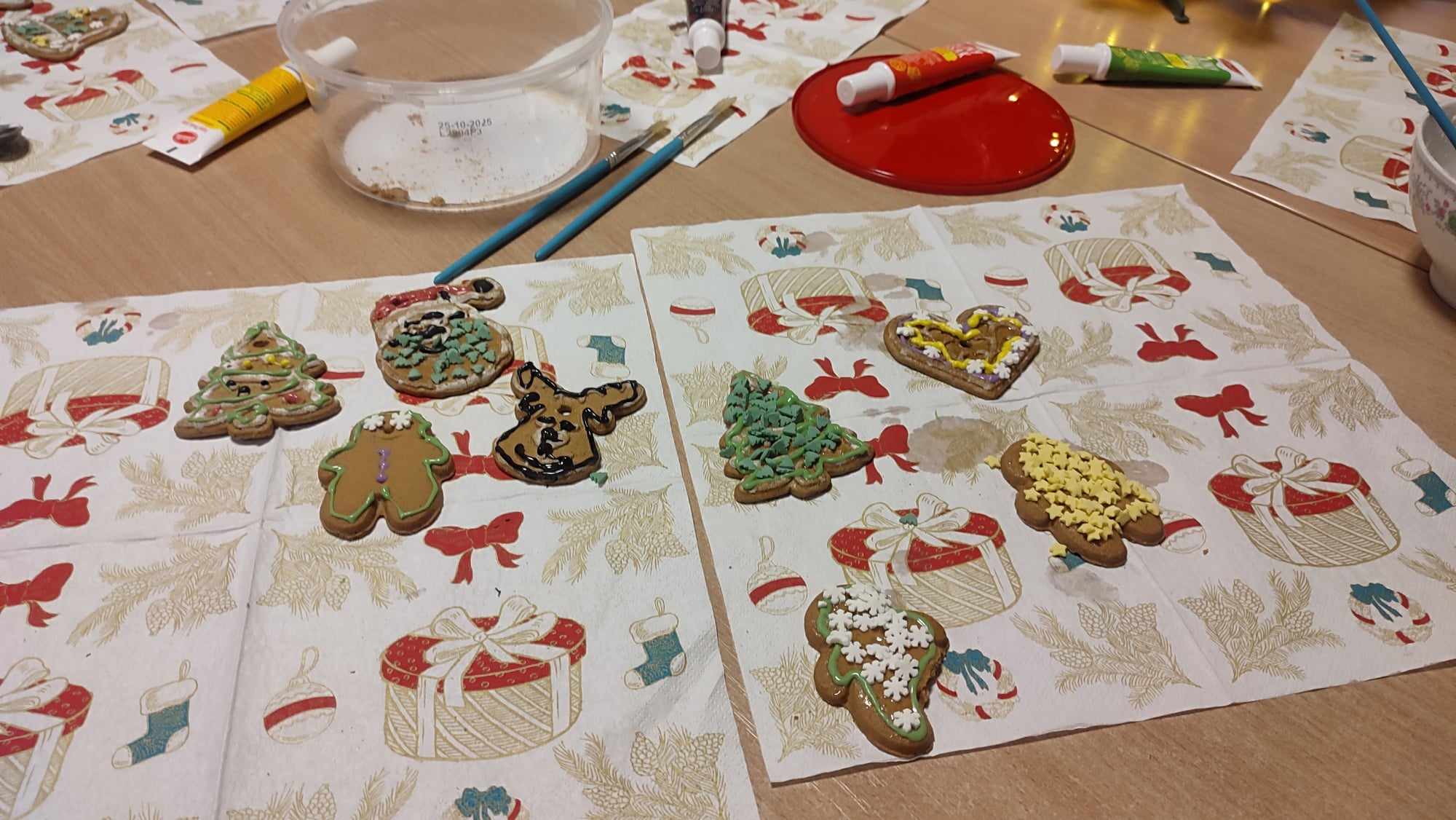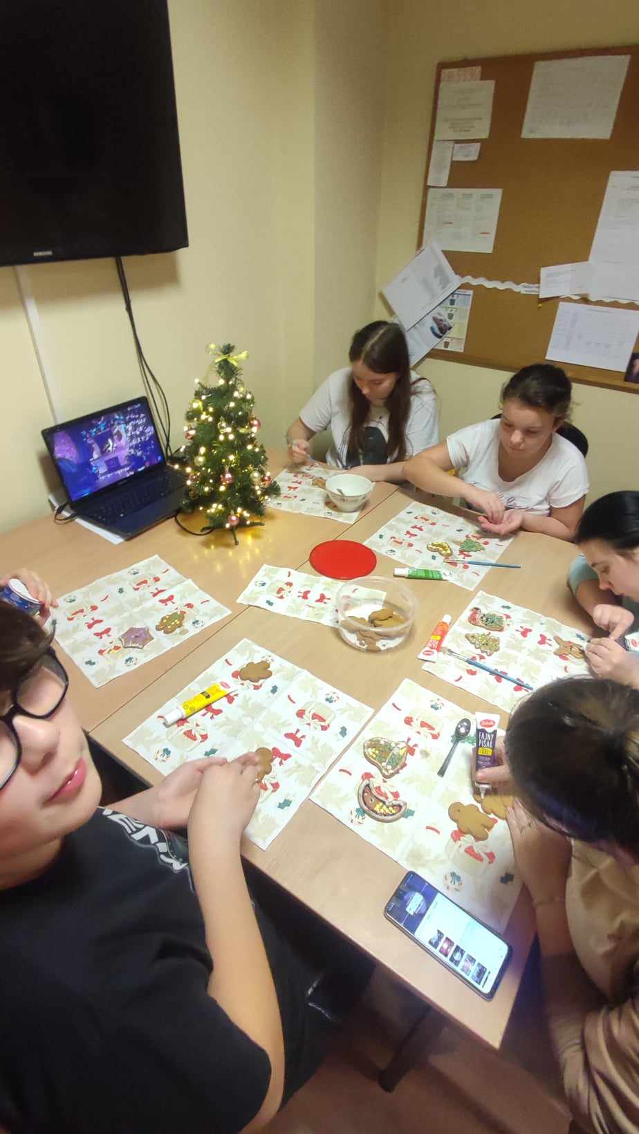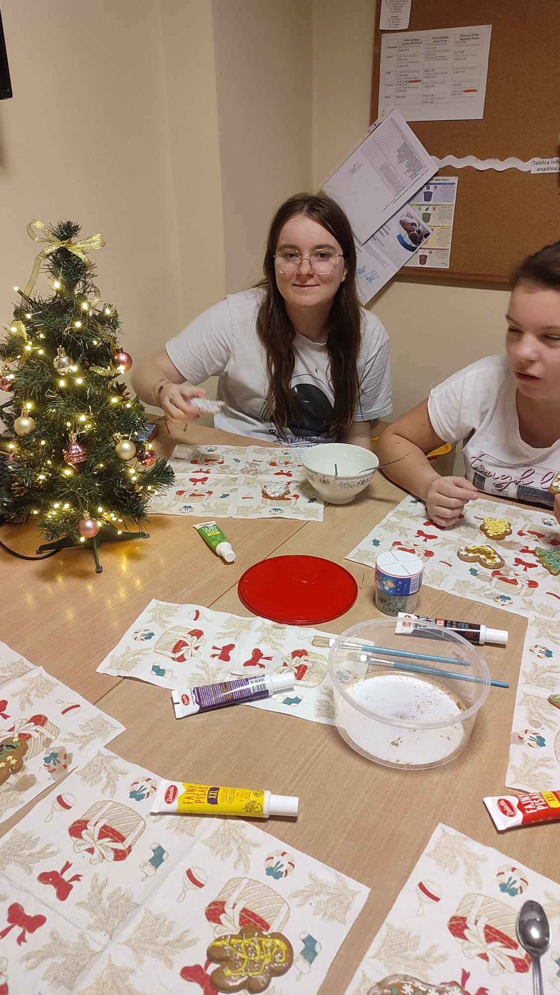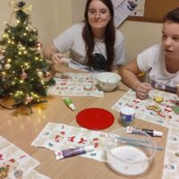 Jak co roku w tym czasie podczas zajęć popołudniowych wspólnie z wychowankami gr. 3 i 4 ozdabialiśmy pomieszczenia internatu na okres świąteczny. Ubieraliśmy wspólnie choinki. Przy świątecznej muzyce dekorowaliśmy pierniczki. Jak zwykle przy takiej okazji było mnóstwo radości i zabawy.
