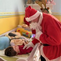 Dnia 6 grudnia DPS zamienił się w prawdziwą krainę świątecznych przygód. Tego dnia naszych uczniów i personel odwiedził św. Mikołaj z pomocnikami. Wszystkie sale dzieci wypełniała wesoła świąteczna muzyka, kolorowe światełka i dźwięki dzwoneczków, tamburin i grzechotek. Był to czas pełen radości i wspólnego świętowania.