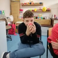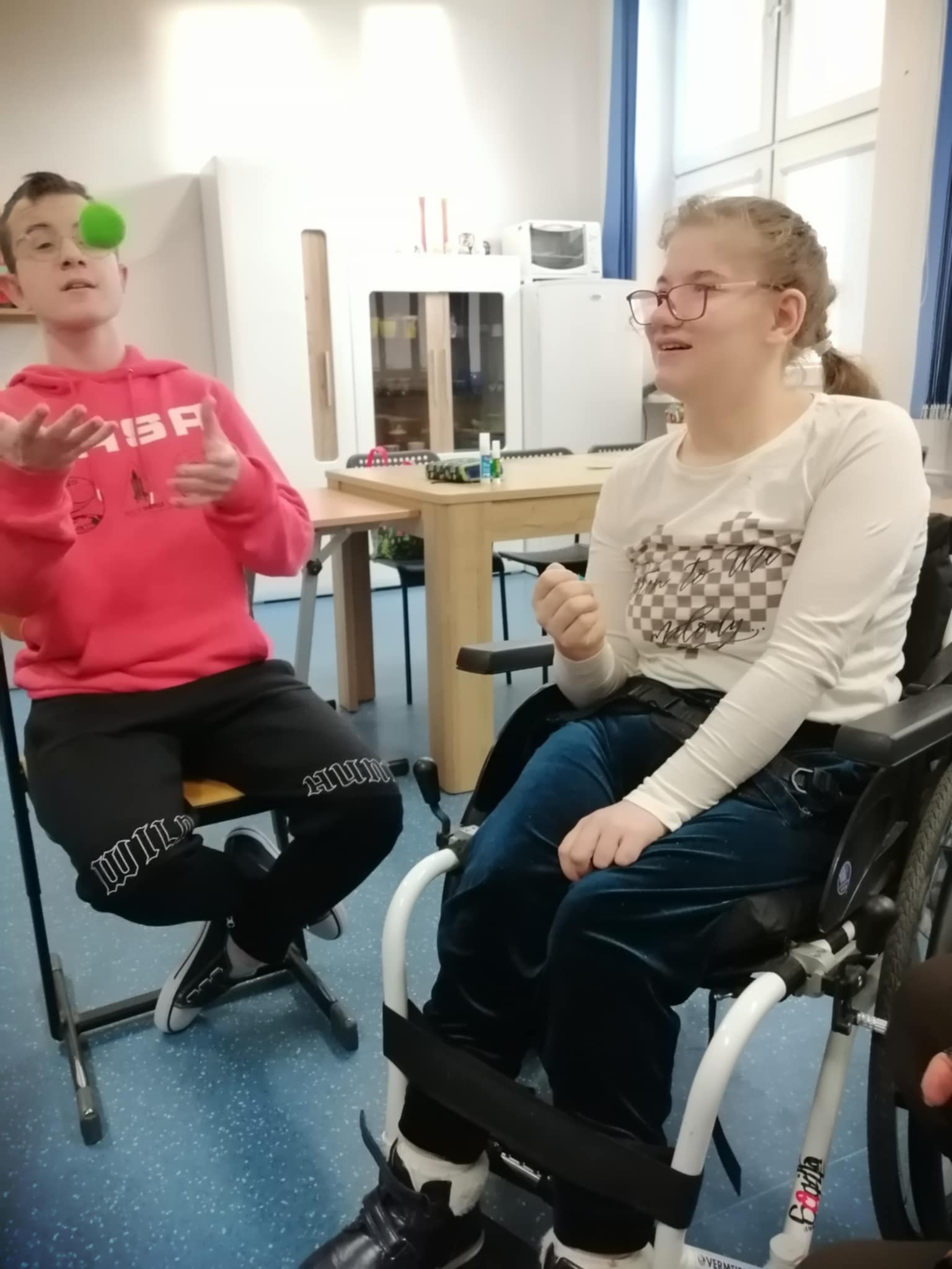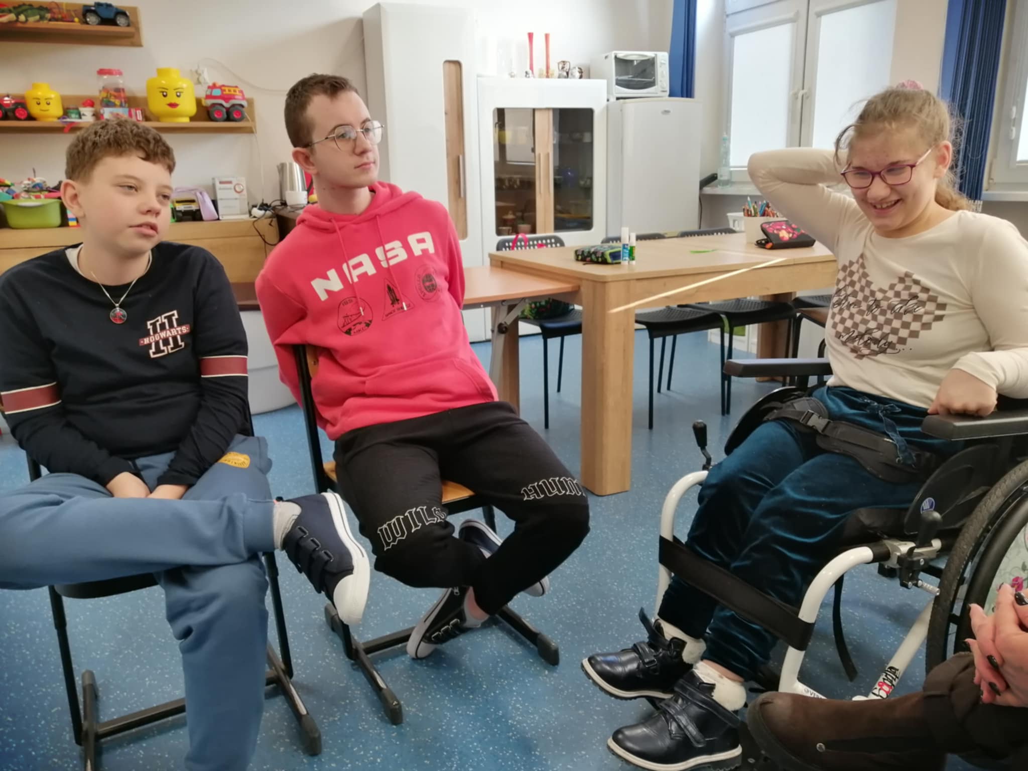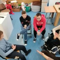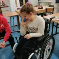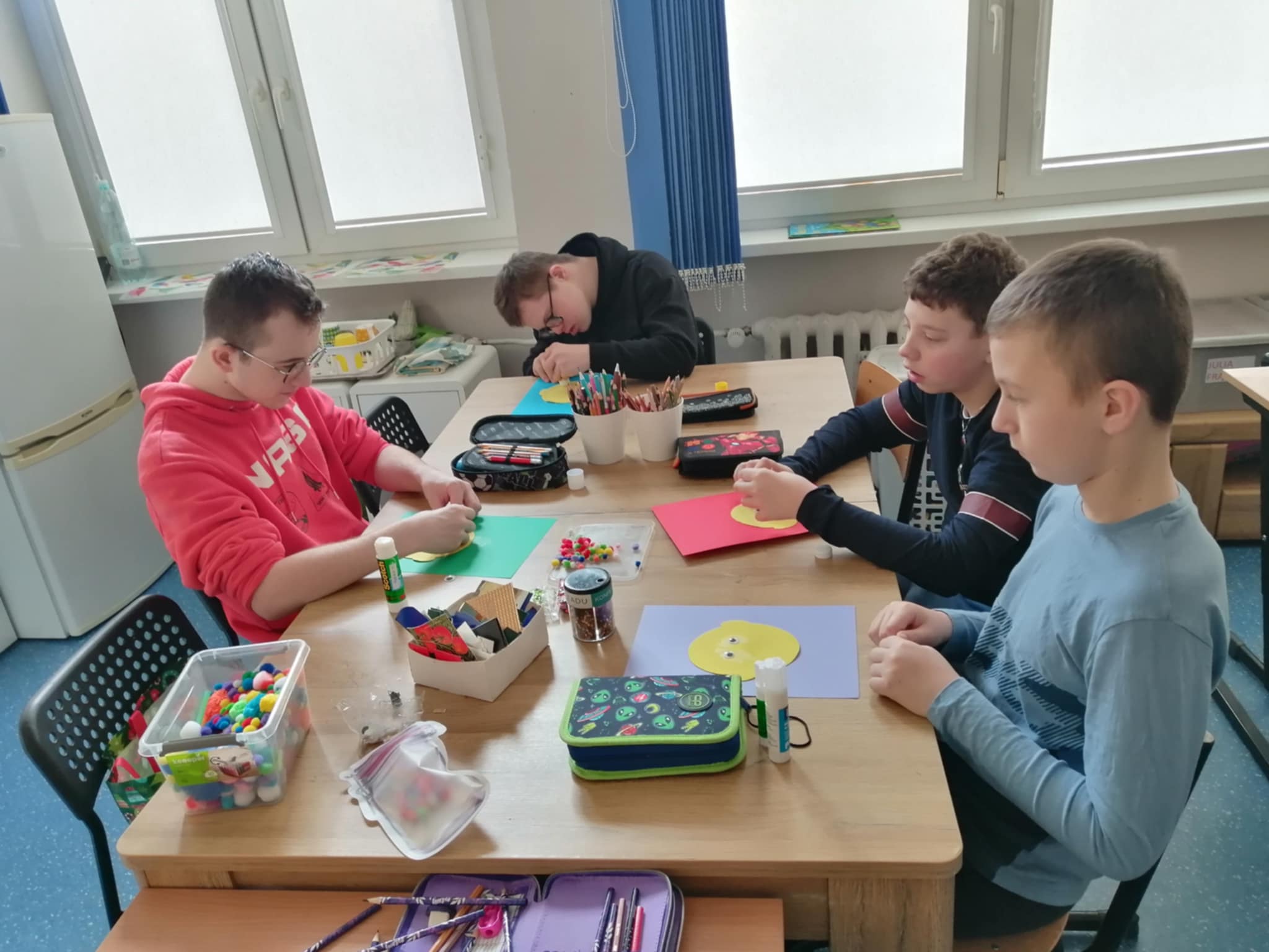 Podczas kolejnego spotkania, będącego realizacją zamierzeń innowacji pedagogicznej „Dajemy dzieciom siłę- zrozum emocje, zrelaksuj głowę” uczniowie klasy 8d zet oraz 4d zet nabywali umiejętność wyrażania wdzięczności i komplementowania innych. Na początku śmiechoterapią sprawiliśmy, że każdy z nas miał dobry humor. Tworząc portrety, z takim samopoczuciem, młodzież mogła spojrzeć na siebie i innych w radośniejszych barwach, wyrażając komplement w sposób kreatywny. Uczniowie uczyli się komplementowania siebie wzajemnie, określali również za co lubią samego siebie. Dzięki dzisiejszym zajęciom uczniowie zrozumieli wartość i potrzebę mówienia innym miłych słów. Jest to ważne w naszym życiu, ponieważ ma ogromny wpływ na samoocenę.