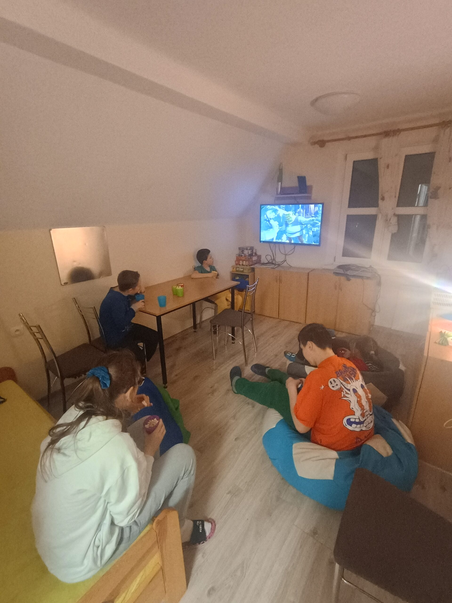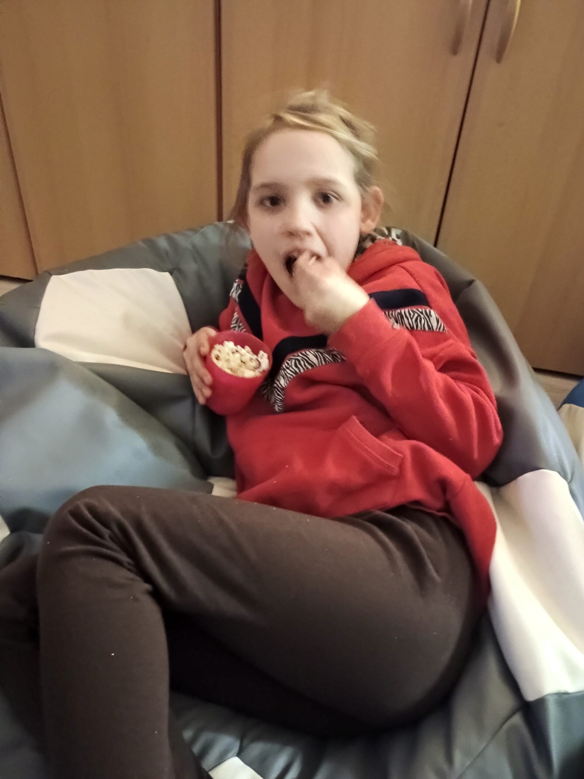 We wtorek w Internacie zrobiliśmy sobie wieczór filmowy, zrelaksowaliśmy się przy popcornie  na wygodnych poduszkach i oglądaliśmy komediowy film familijny.