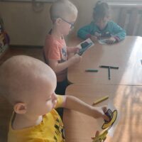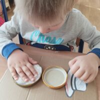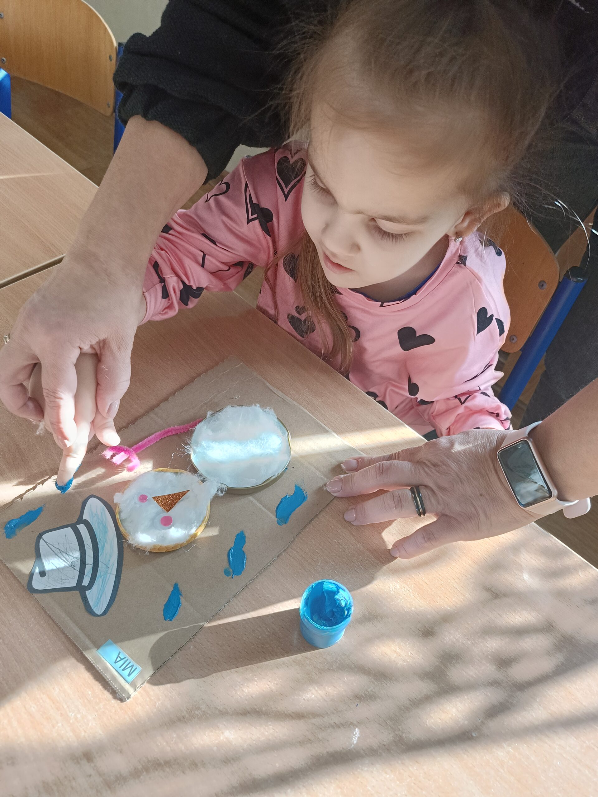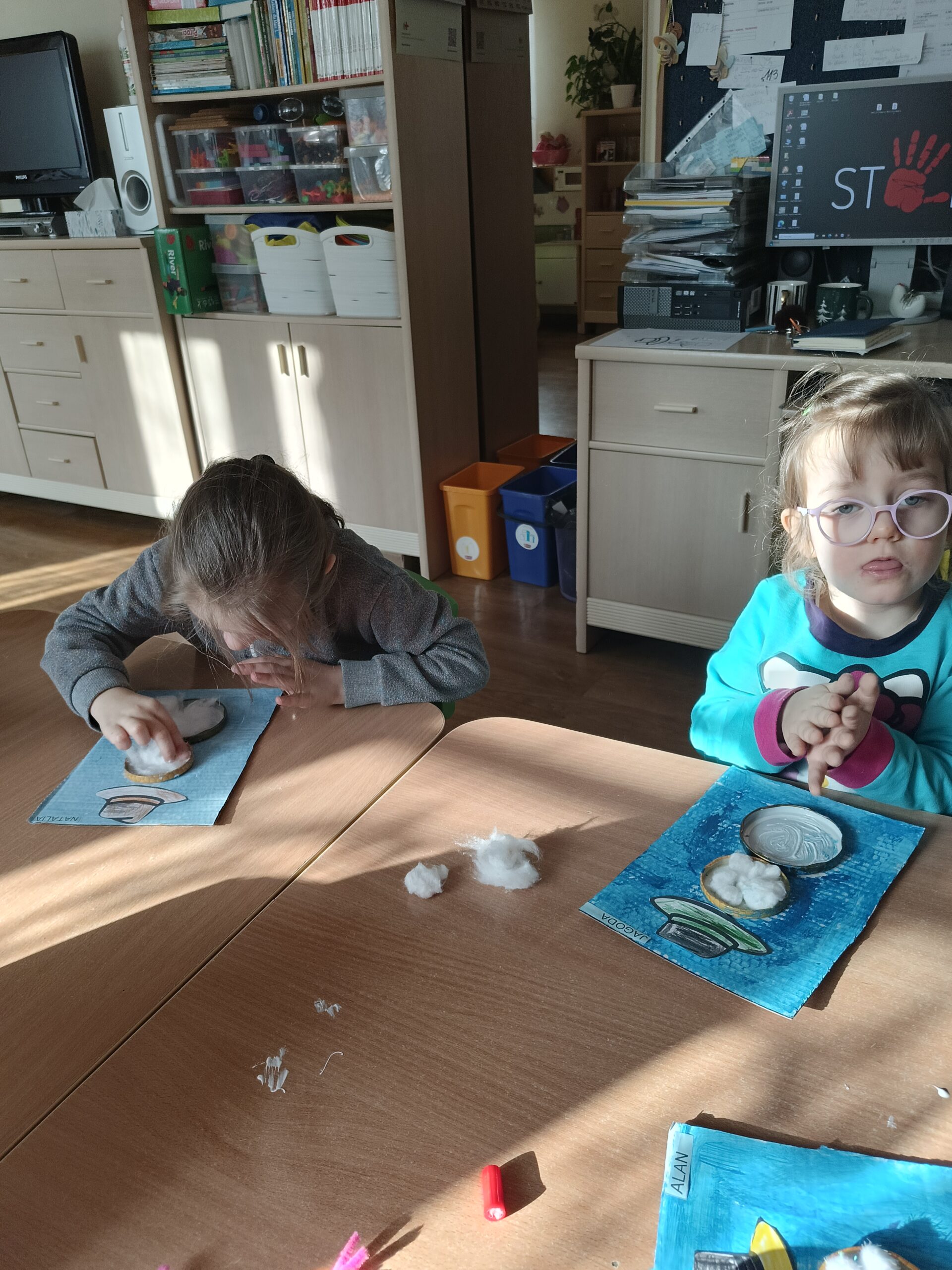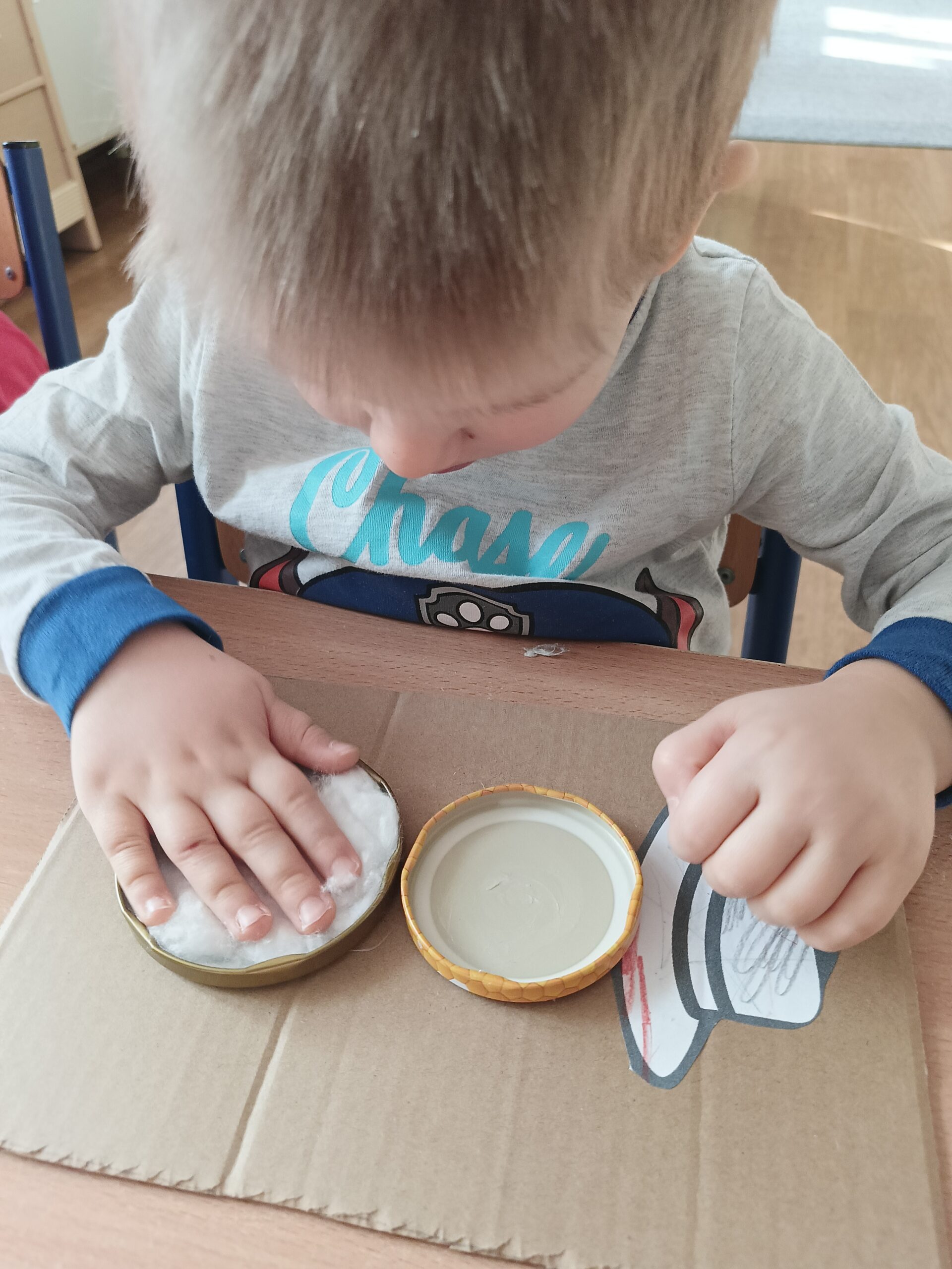 Przedszkolaki z grupy Waleczne Pszczółki wykonały sensorycznego bałwana.