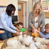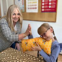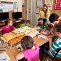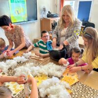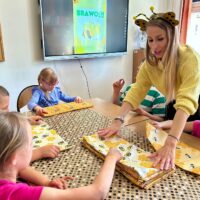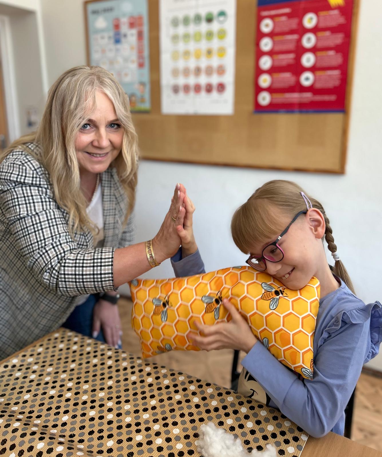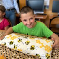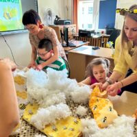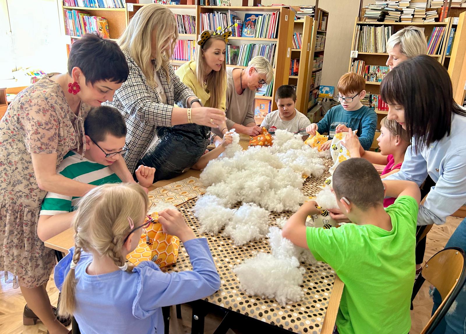 W części warsztatowej uczestnicy wykonali mięciutkie poduszki z motywem pszczół. Każda z nich została wykonana z dużym zaangażowaniem i sercem. Gotowe poduszki zostaną przekazane na cele dobroczynne. Nie zabrakło również wspólnej zabawy – dzieci śpiewały piosenkę o pszczółkach i zatańczyły wesoły taniec, wcielając się w role małych, pracowitych owadów.